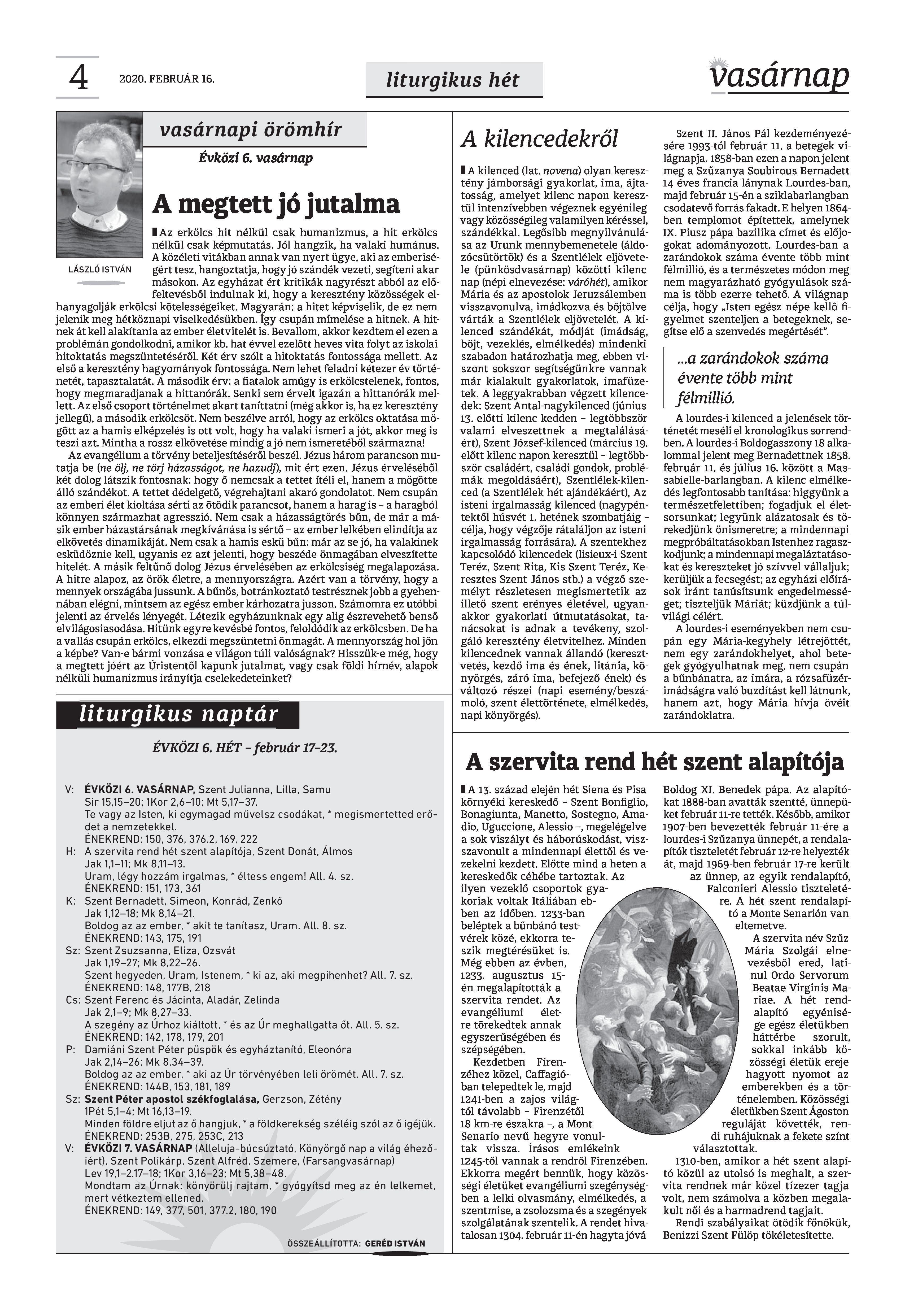 VASÁRNAP - 2020. FEBRUÁR 16. A Vasárnap Katolikus Hetilap 2020. február 16. / XXX évf. / 7. számának digitális változata. 1 / 12 2 & 3 / 12 4 & 5 / 12 6 & 7 / 12 8 & 9 / 12 10 & 11 / 12 12 / 12