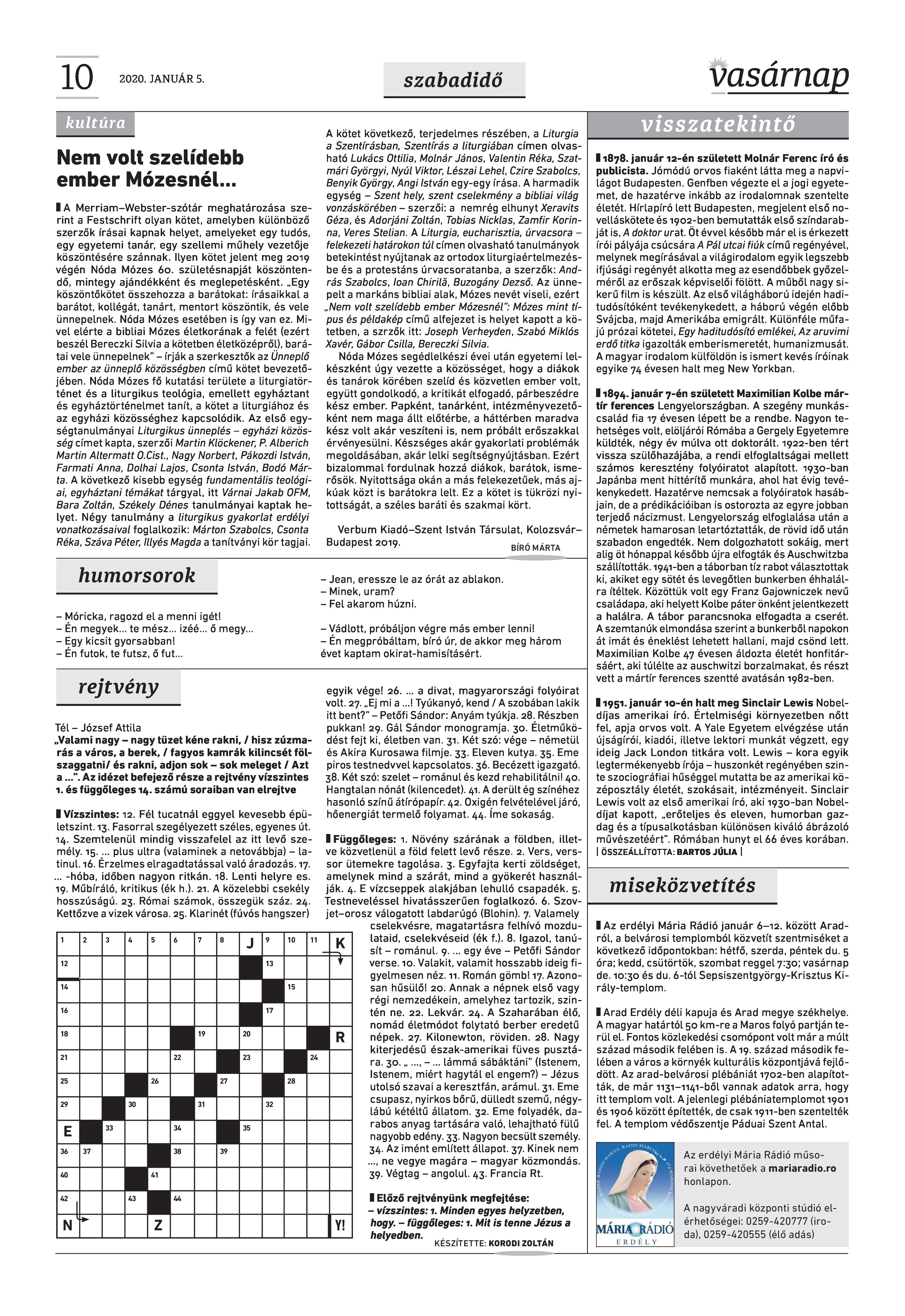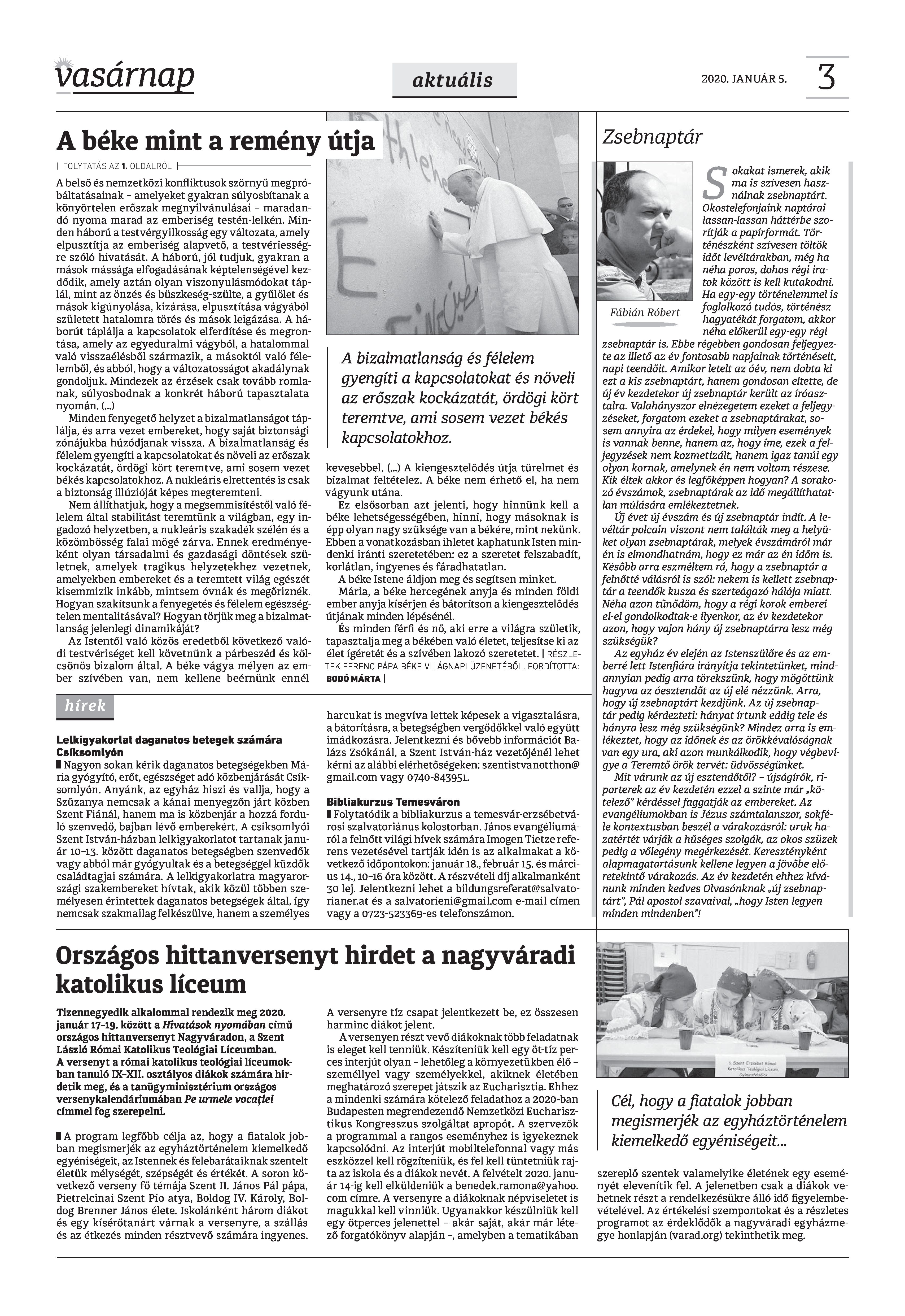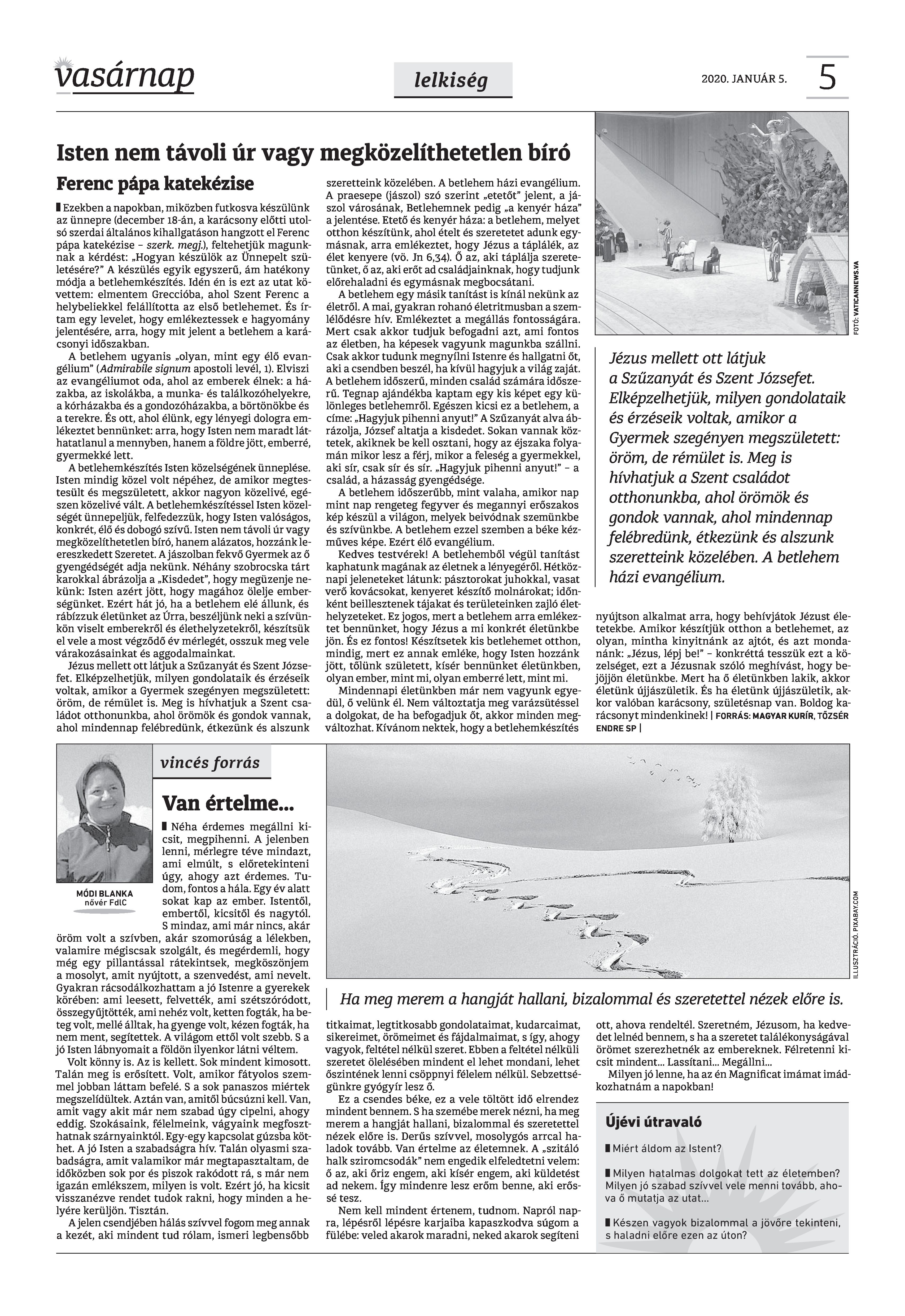 VASÁRNAP - 2020. JANUÁR 5. A Vasárnap Katolikus Hetilap 2020 január 5. / XXX évf. / 1. számának digitális változata. 1 / 12 2 & 3 / 12 4 & 5 / 12 6 & 7 / 12 8 & 9 / 12 10 & 11 / 12 12 / 12