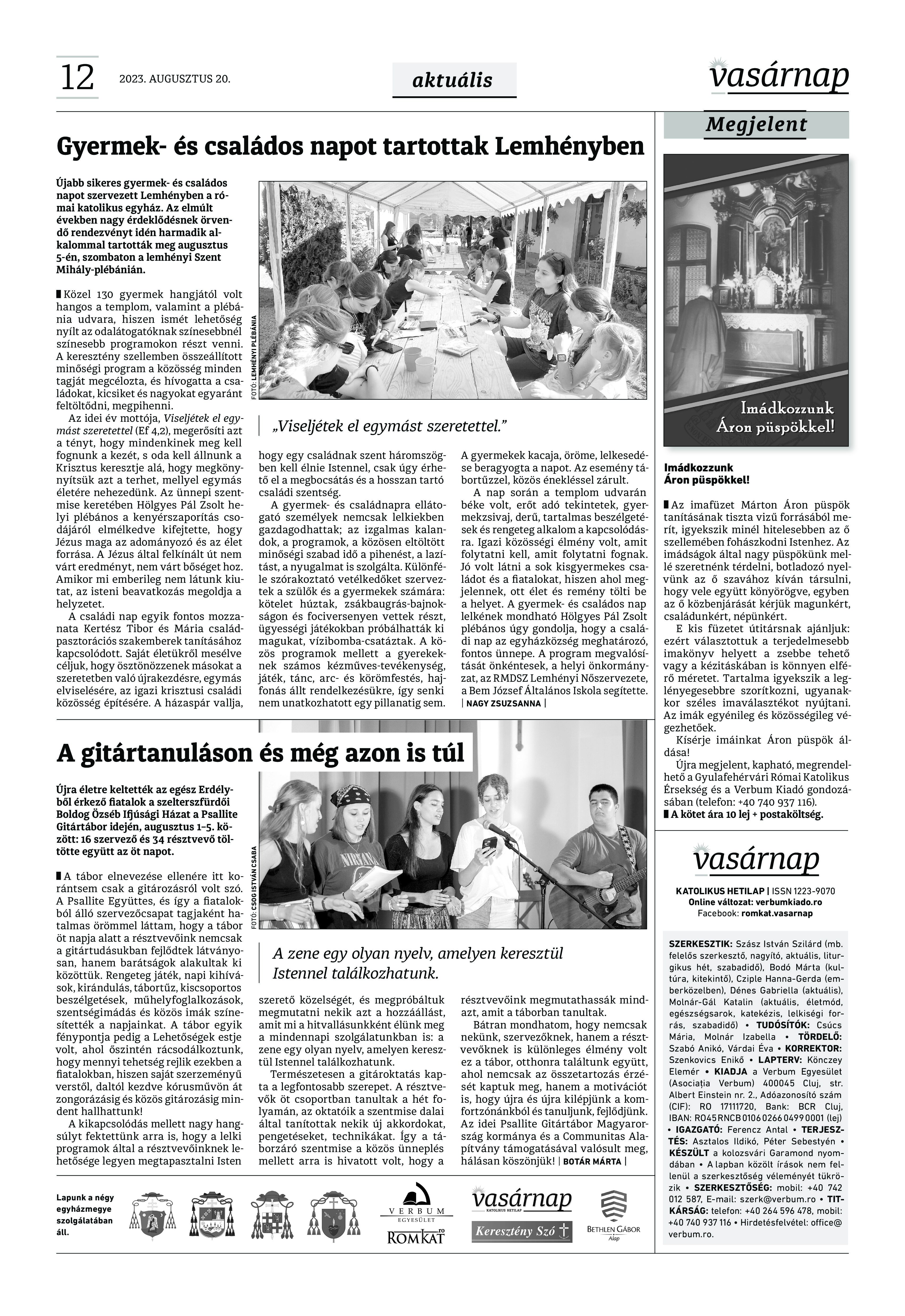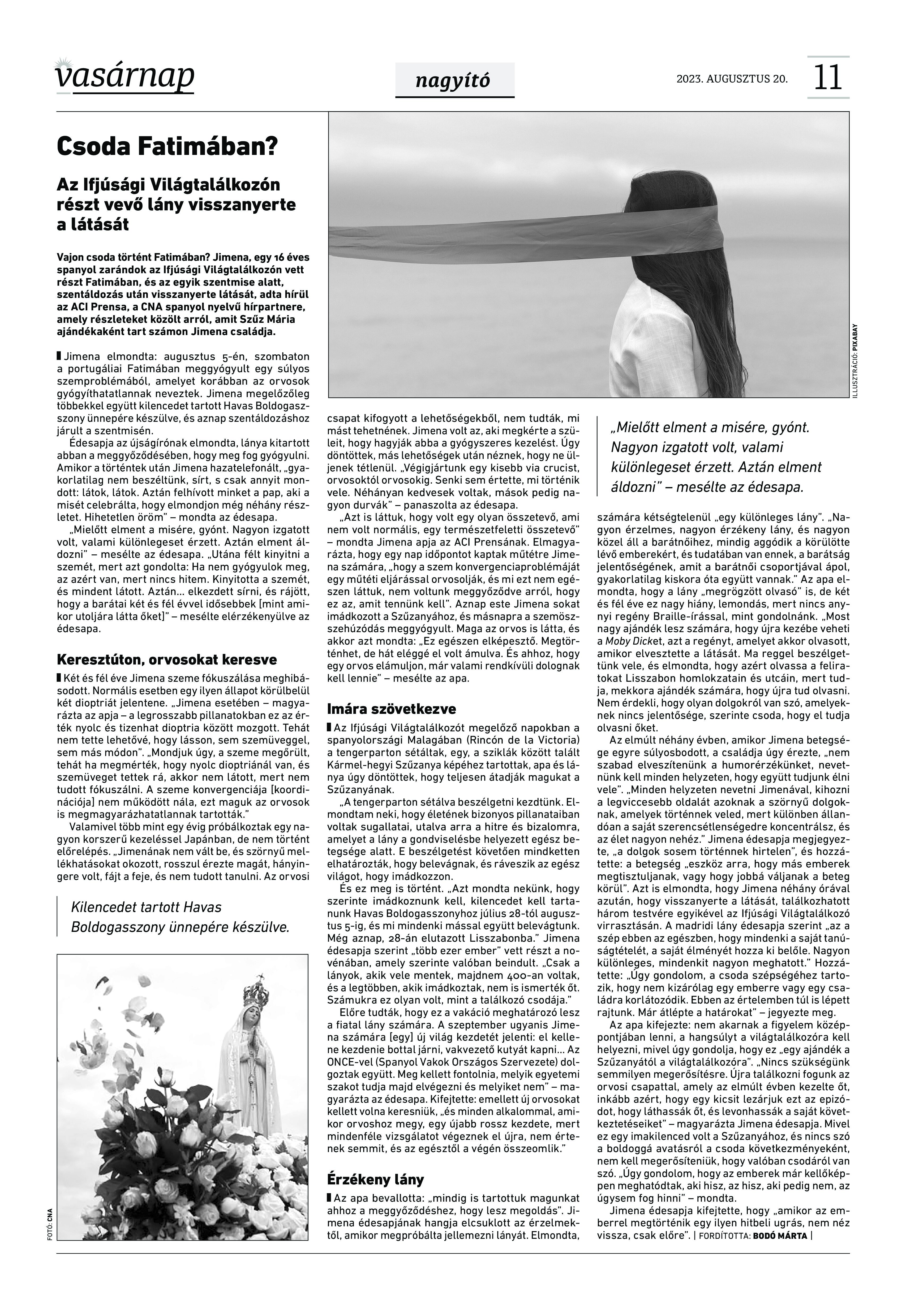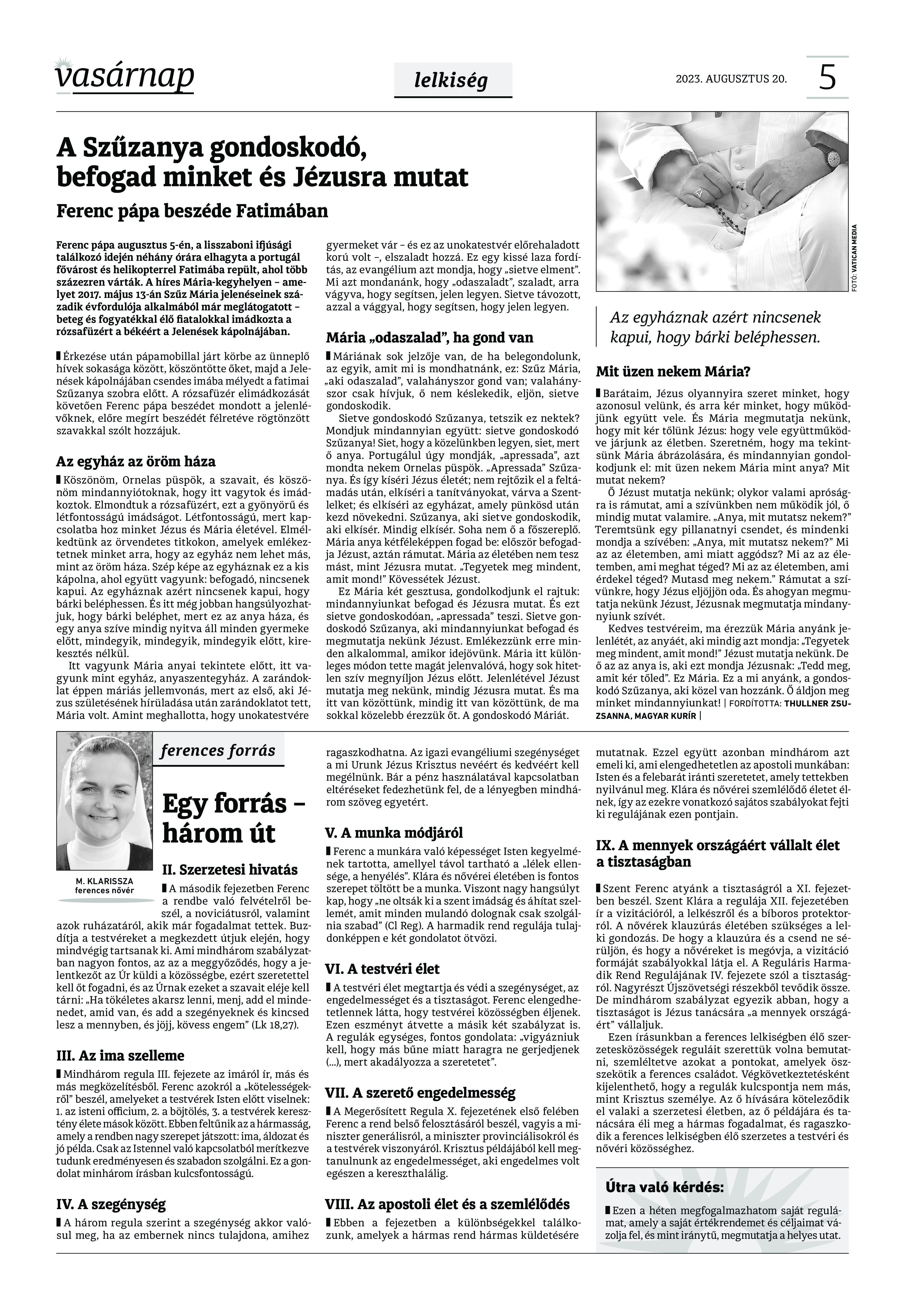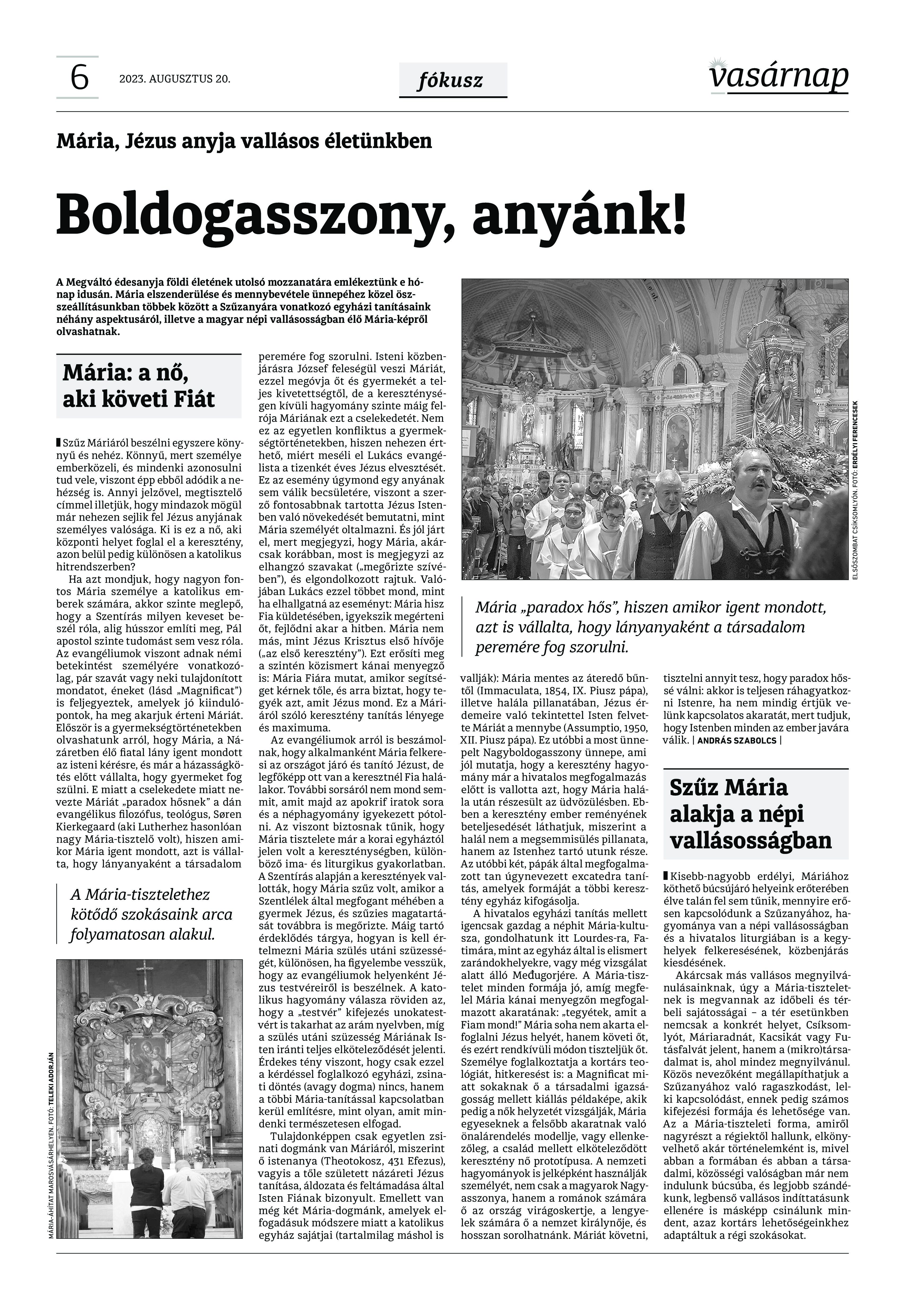 A Vasárnap Katolikus Hetilap 2023. augusztus 20. / XXXIII évf. / 34. számának digitális változata