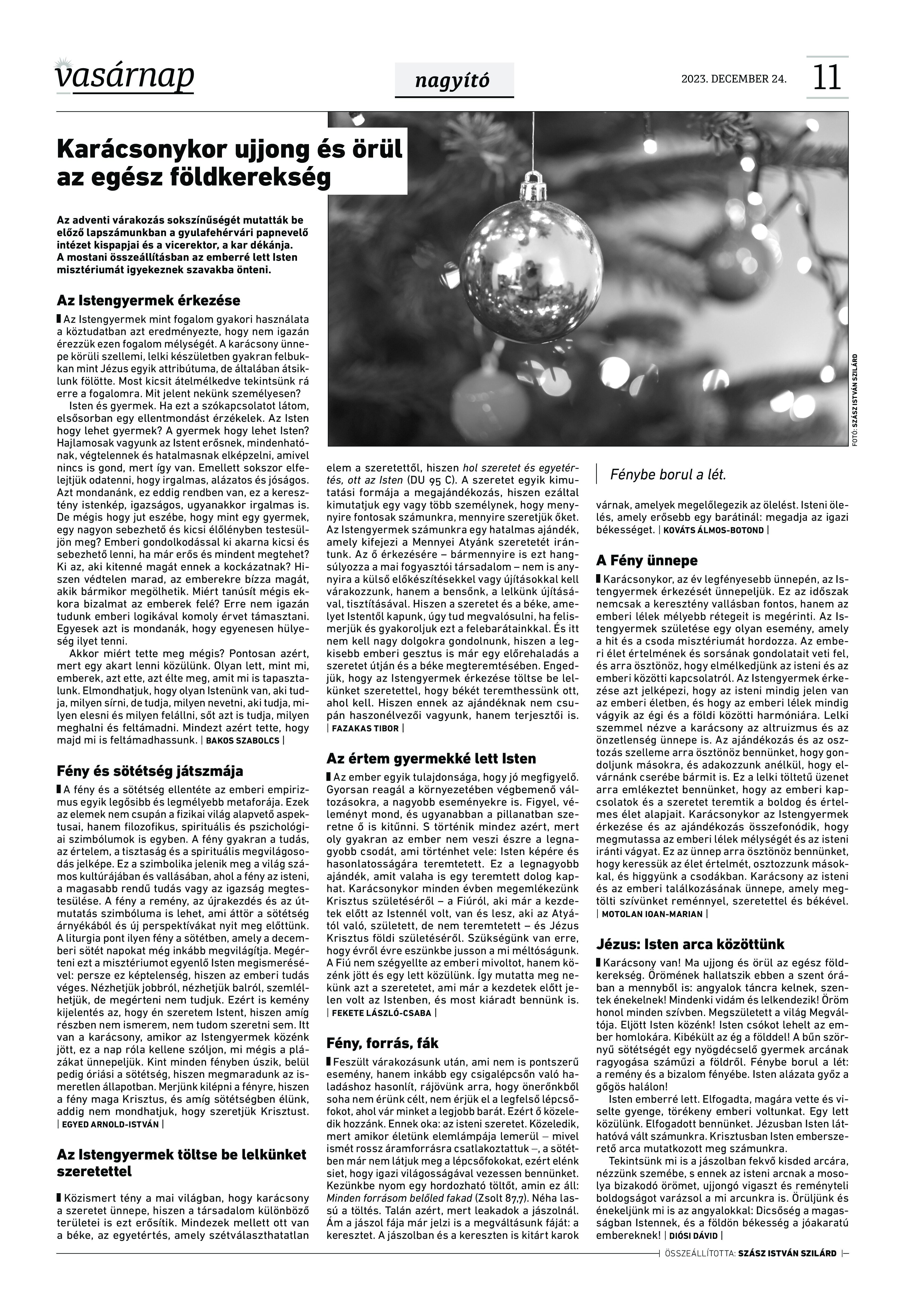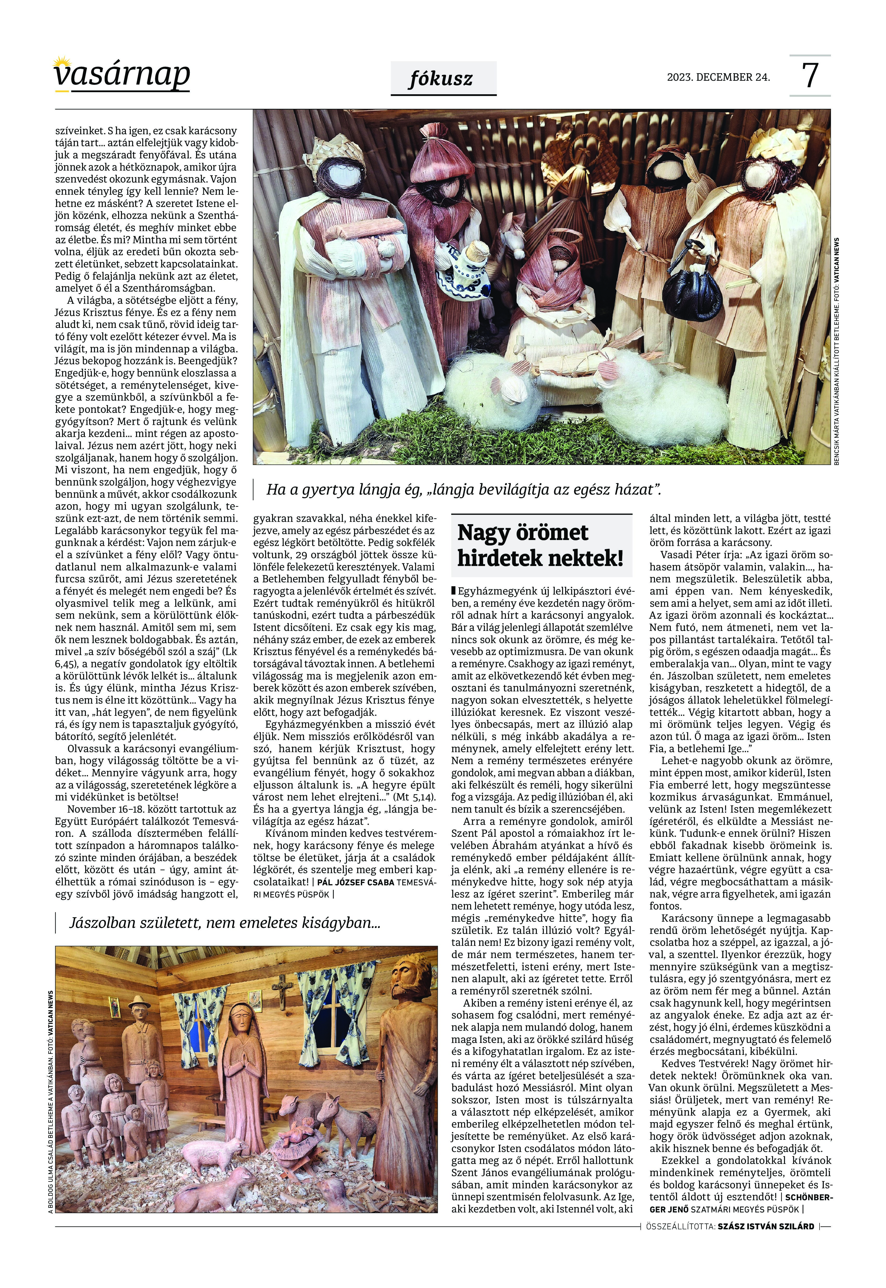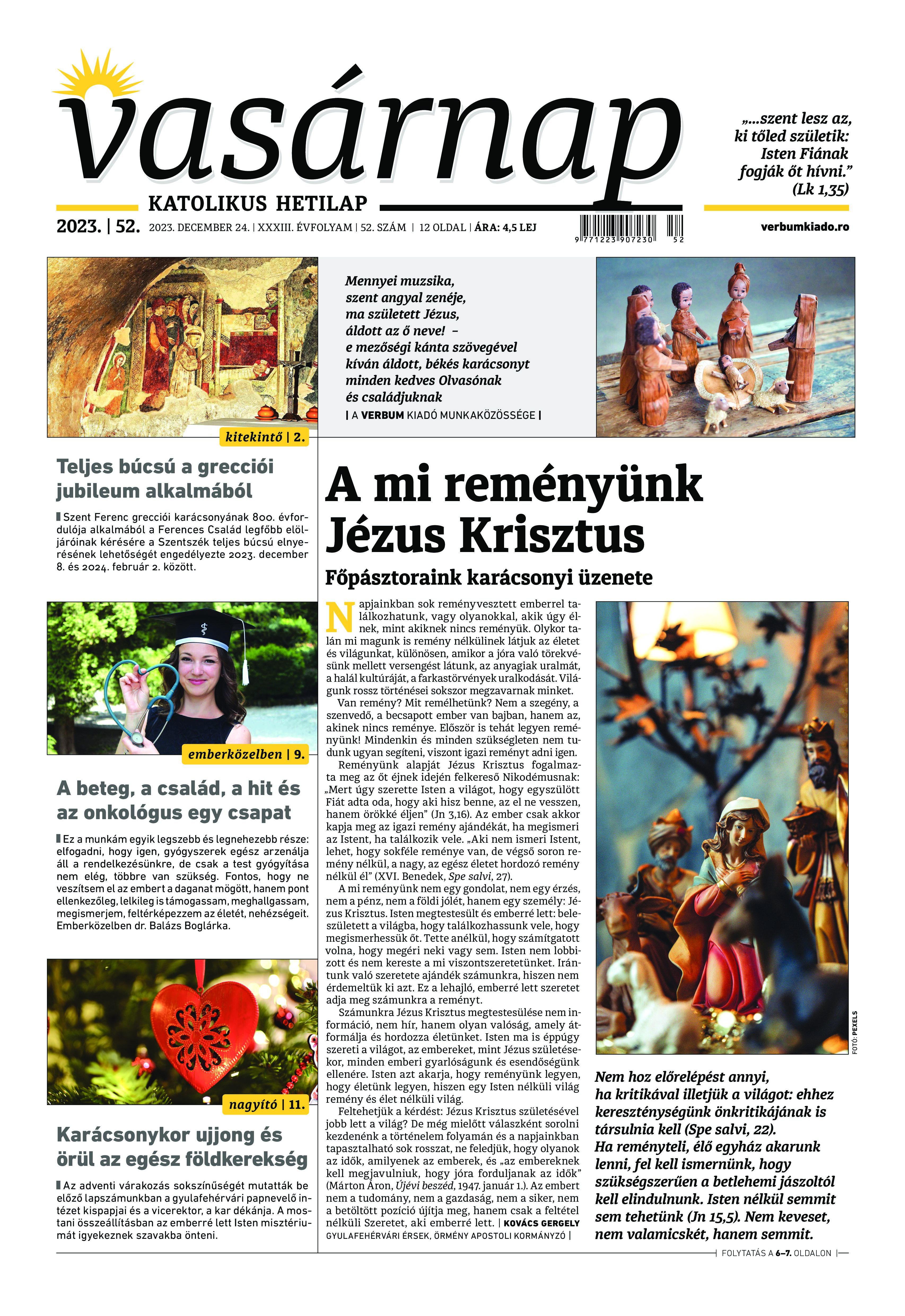 A Vasárnap Katolikus Hetilap 2023. december 24. / XXXIII évf. / 52. számának digitális változata.