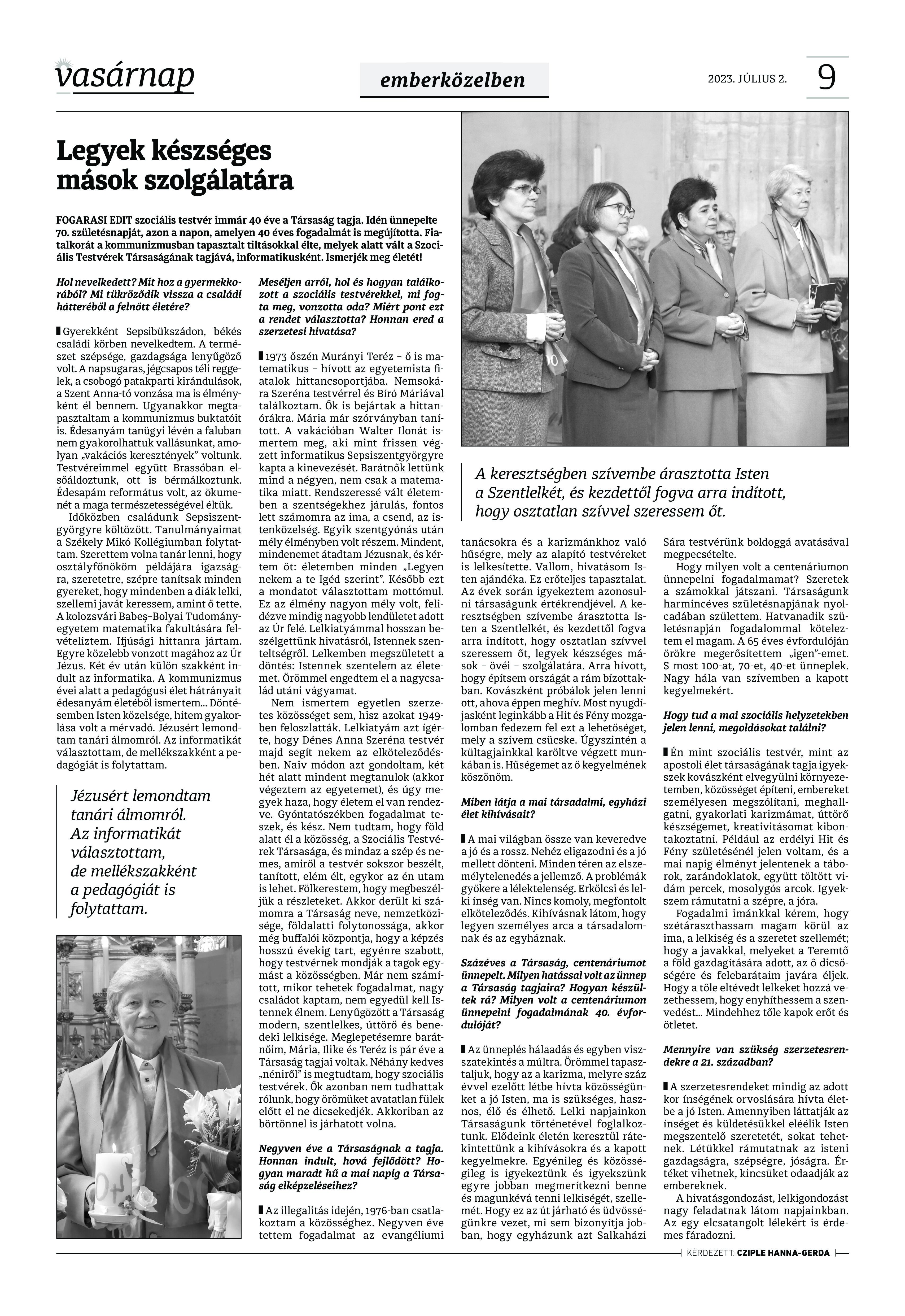 VASÁRNAP - 2023. JÚLIUS 2. A Vasárnap Katolikus Hetilap 2023. július 2. / XXXIII évf. / 27. számának digitális változata 1 / 12 2 & 3 / 12 4 & 5 / 12 6 & 7 / 12 8 & 9 / 12 10 & 11 / 12 12 / 12