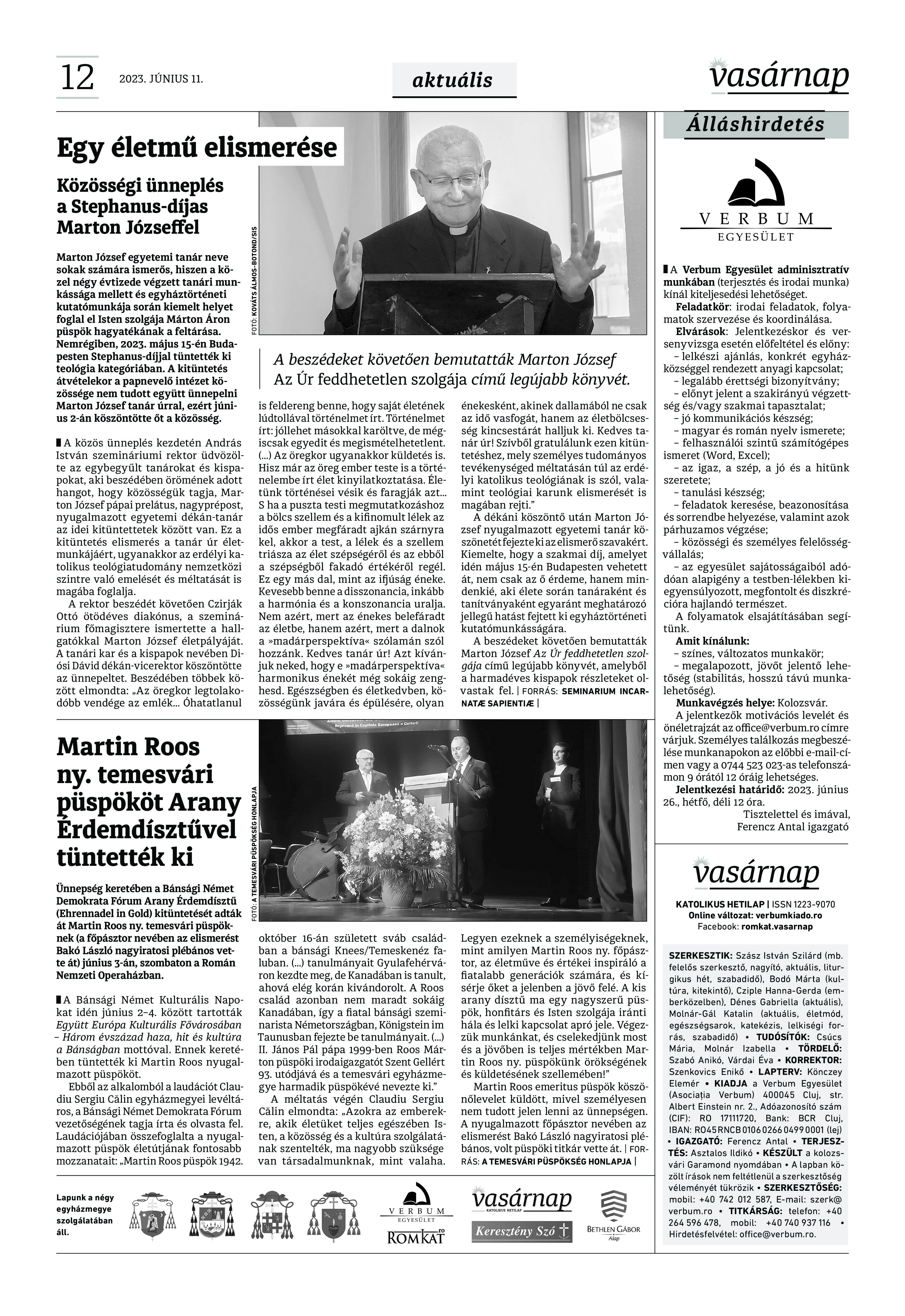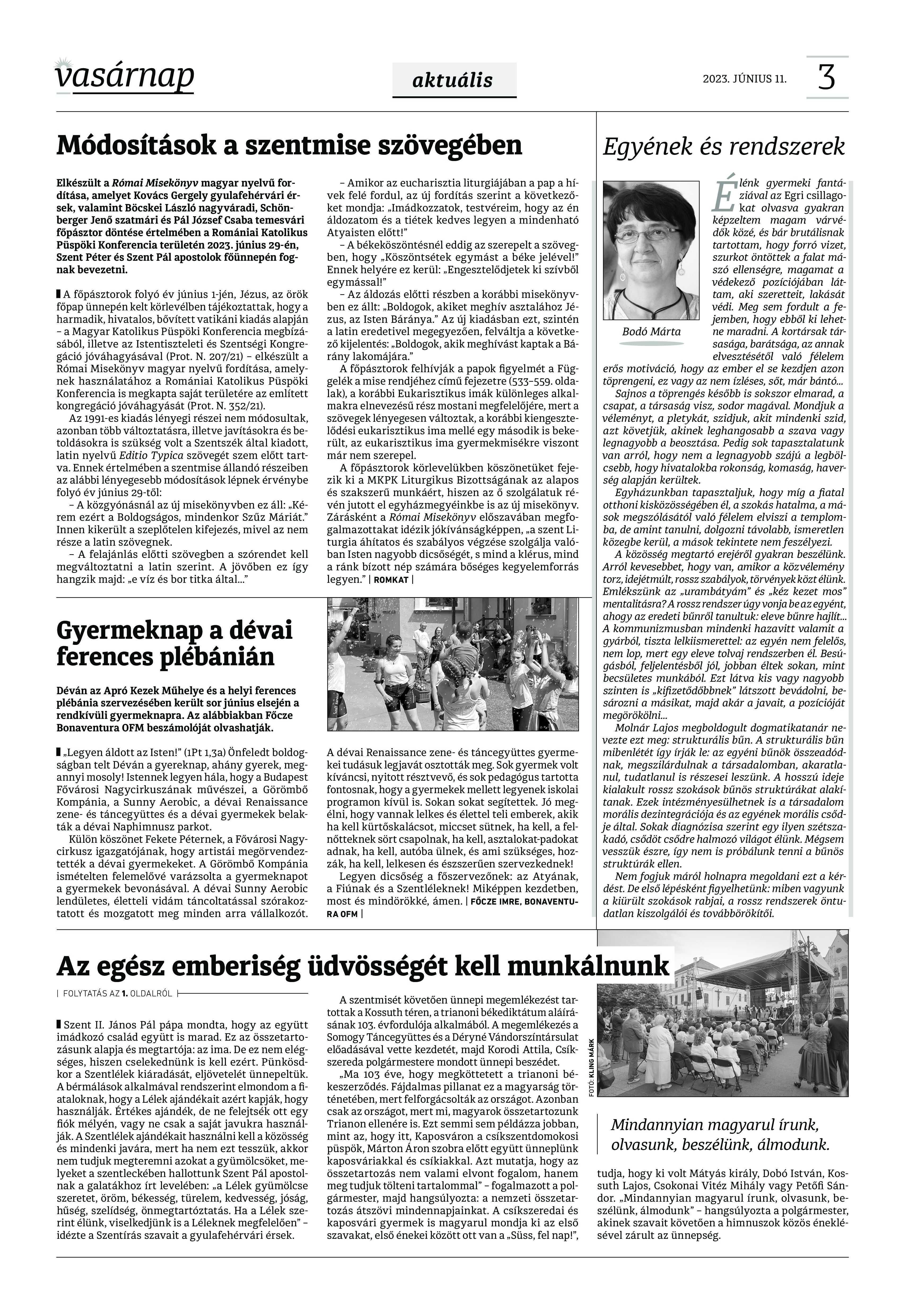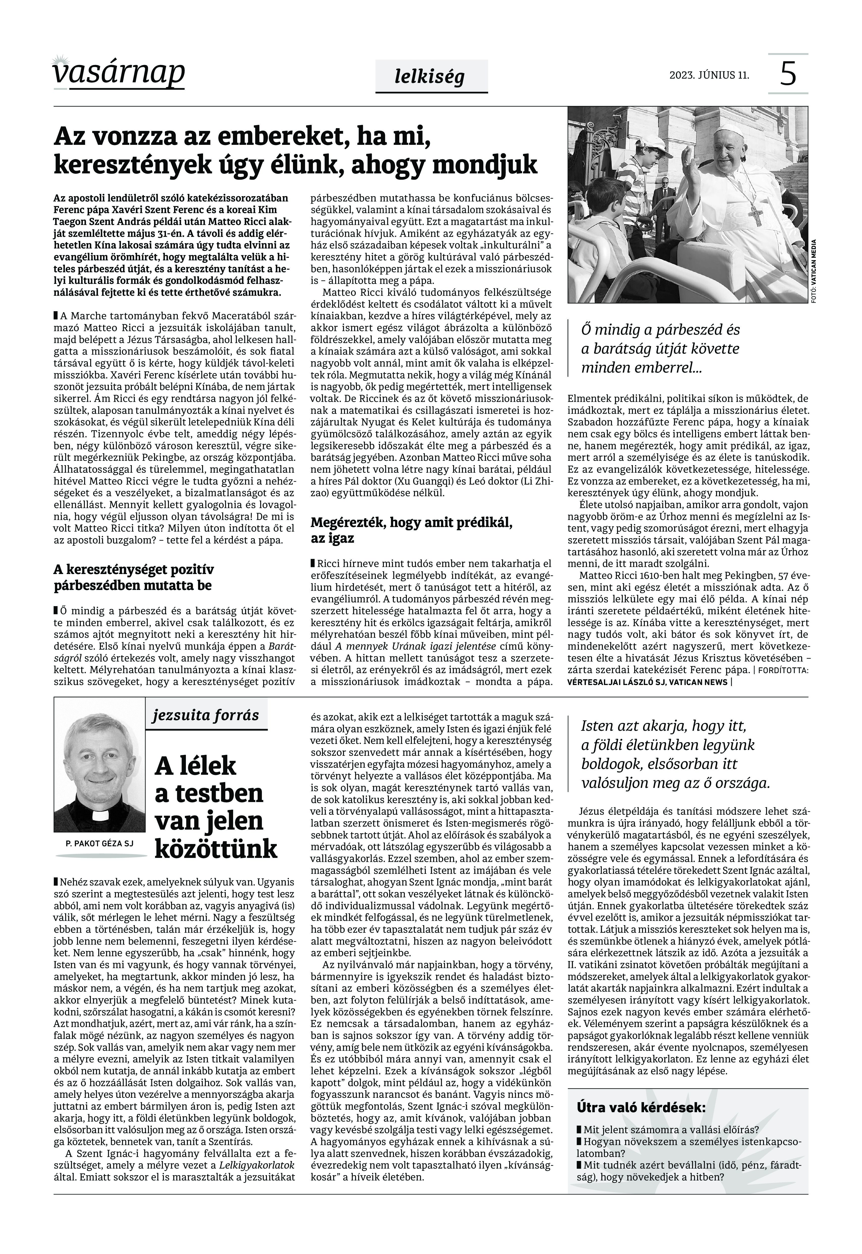 A Vasárnap Katolikus Hetilap 2023. június 11. / XXXIII évf. / 24. számának digitális változata