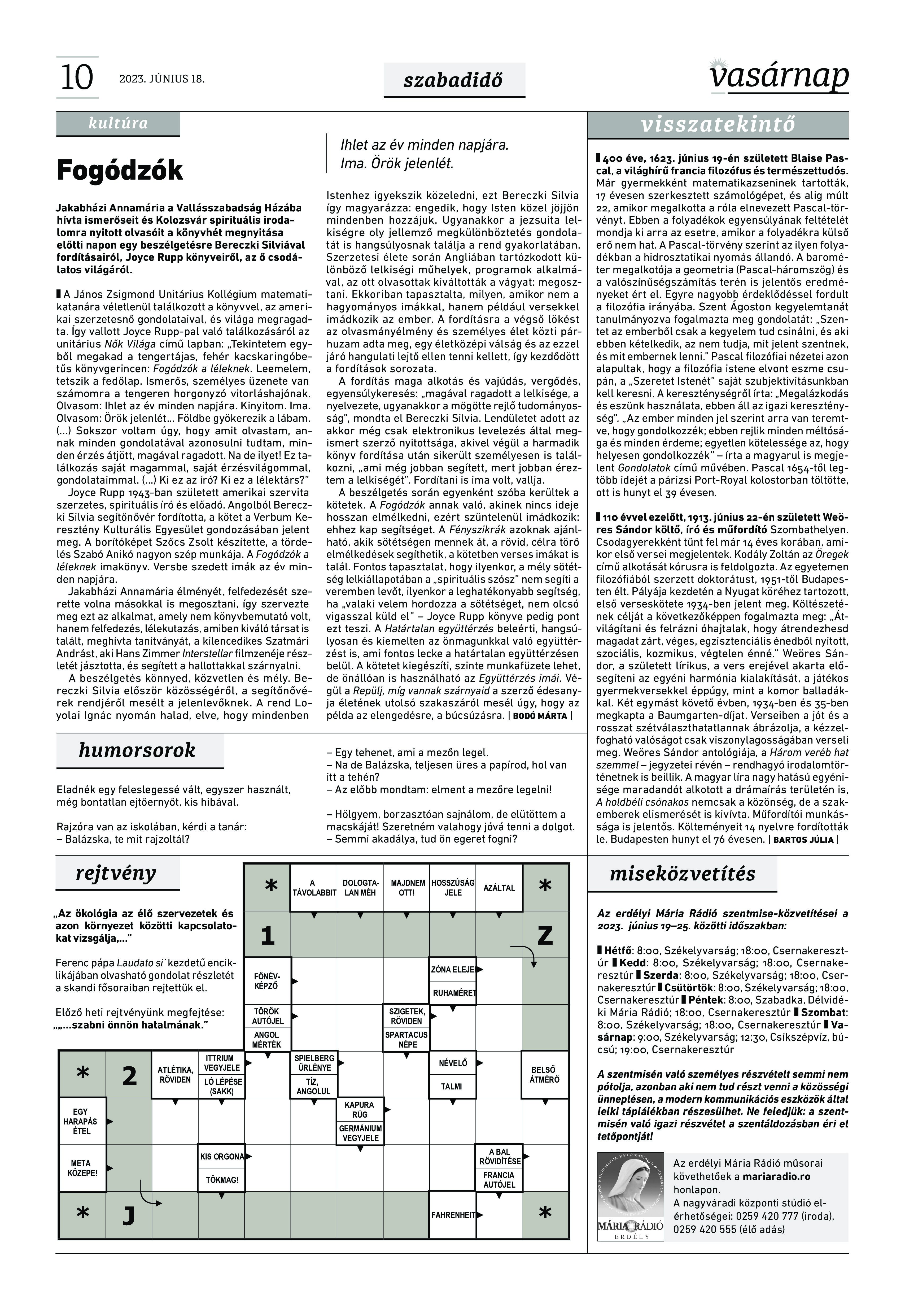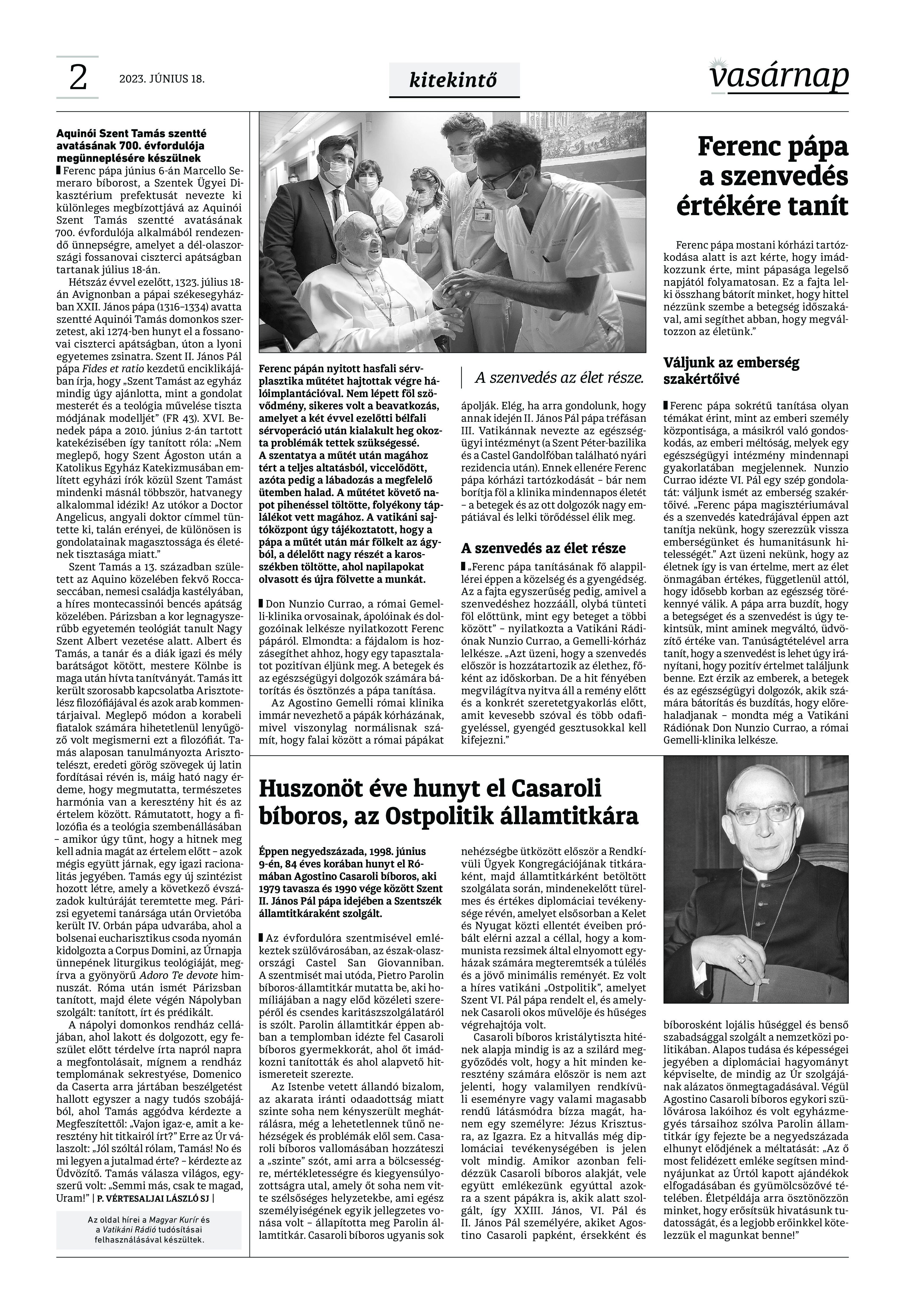 VASÁRNAP - 2023. JÚNIUS 18. A Vasárnap Katolikus Hetilap 2023. június 18. / XXXIII évf. / 25. számának digitális változata 1 / 12 2 & 3 / 12 4 & 5 / 12 6 & 7 / 12 8 & 9 / 12 10 & 11 / 12 12 / 12
