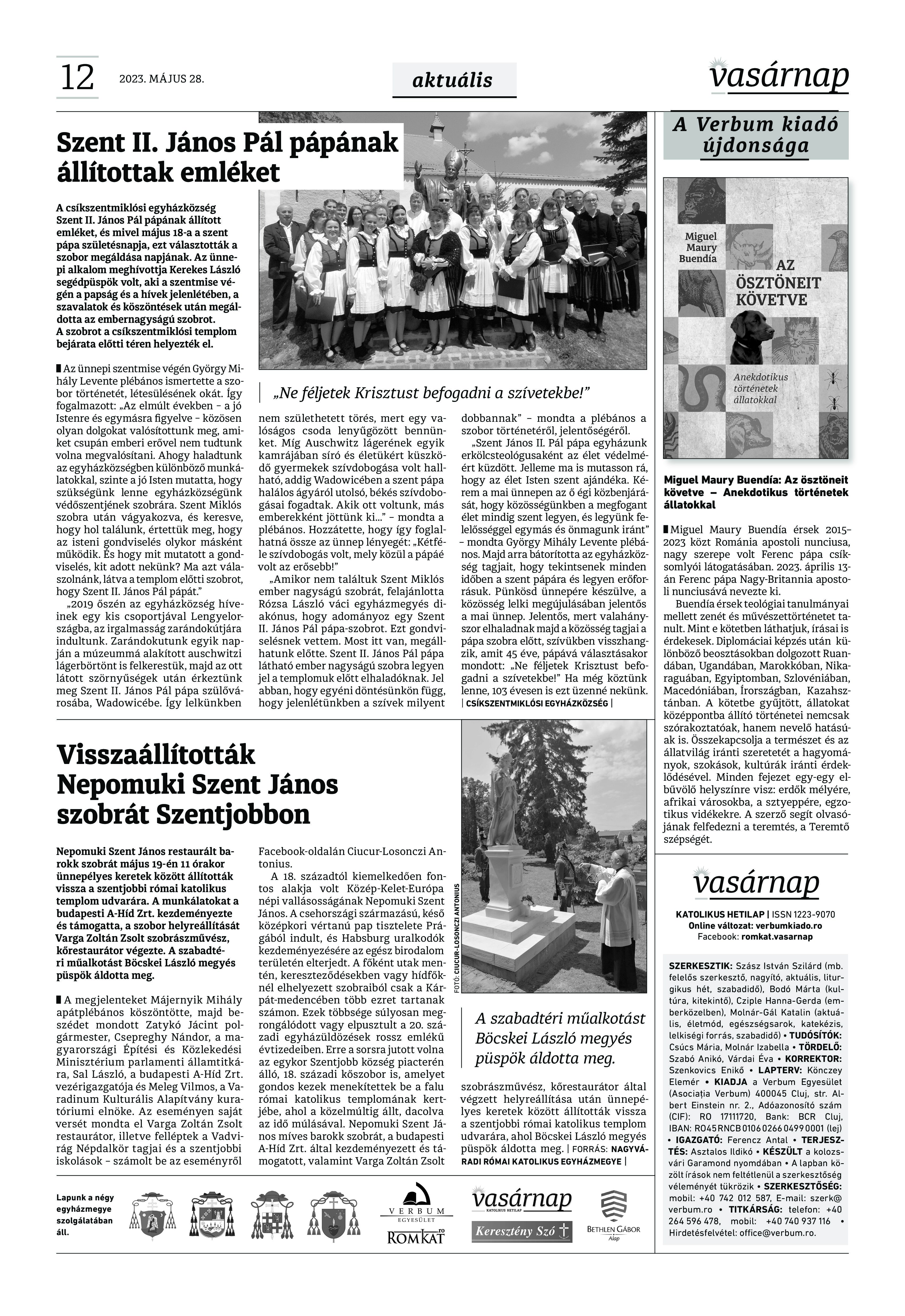 A Vasárnap Katolikus Hetilap 2023. május 28. / XXXIII évf. / 22. számának digitális változata