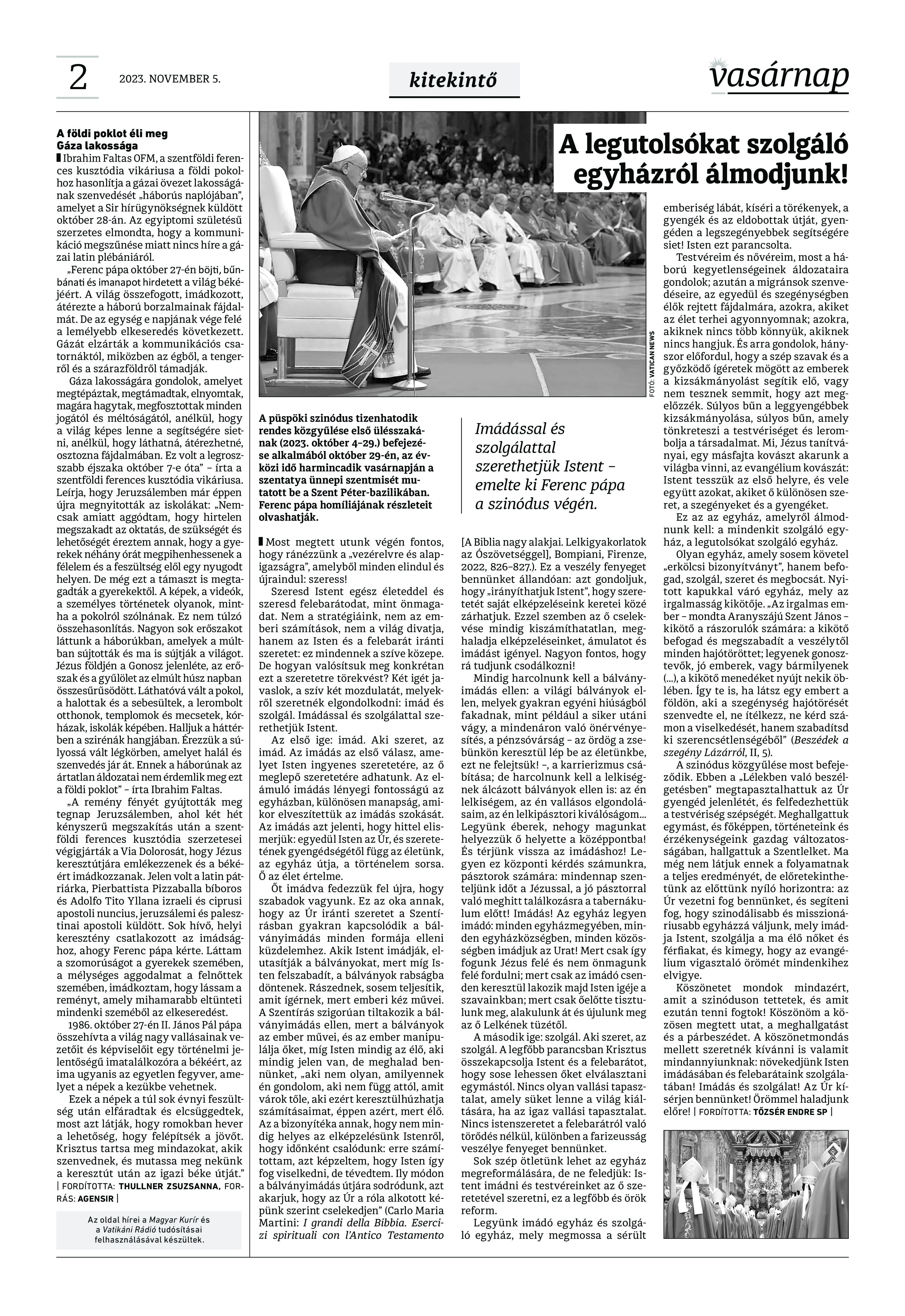 VASÁRNAP - 2023. november 5. A Vasárnap Katolikus Hetilap 2023. november 5. / XXXIII évf. / 45. számának digitális változata 1 / 12 2 & 3 / 12 4 & 5 / 12 6 & 7 / 12 8 & 9 / 12 10 & 11 / 12 12 / 12