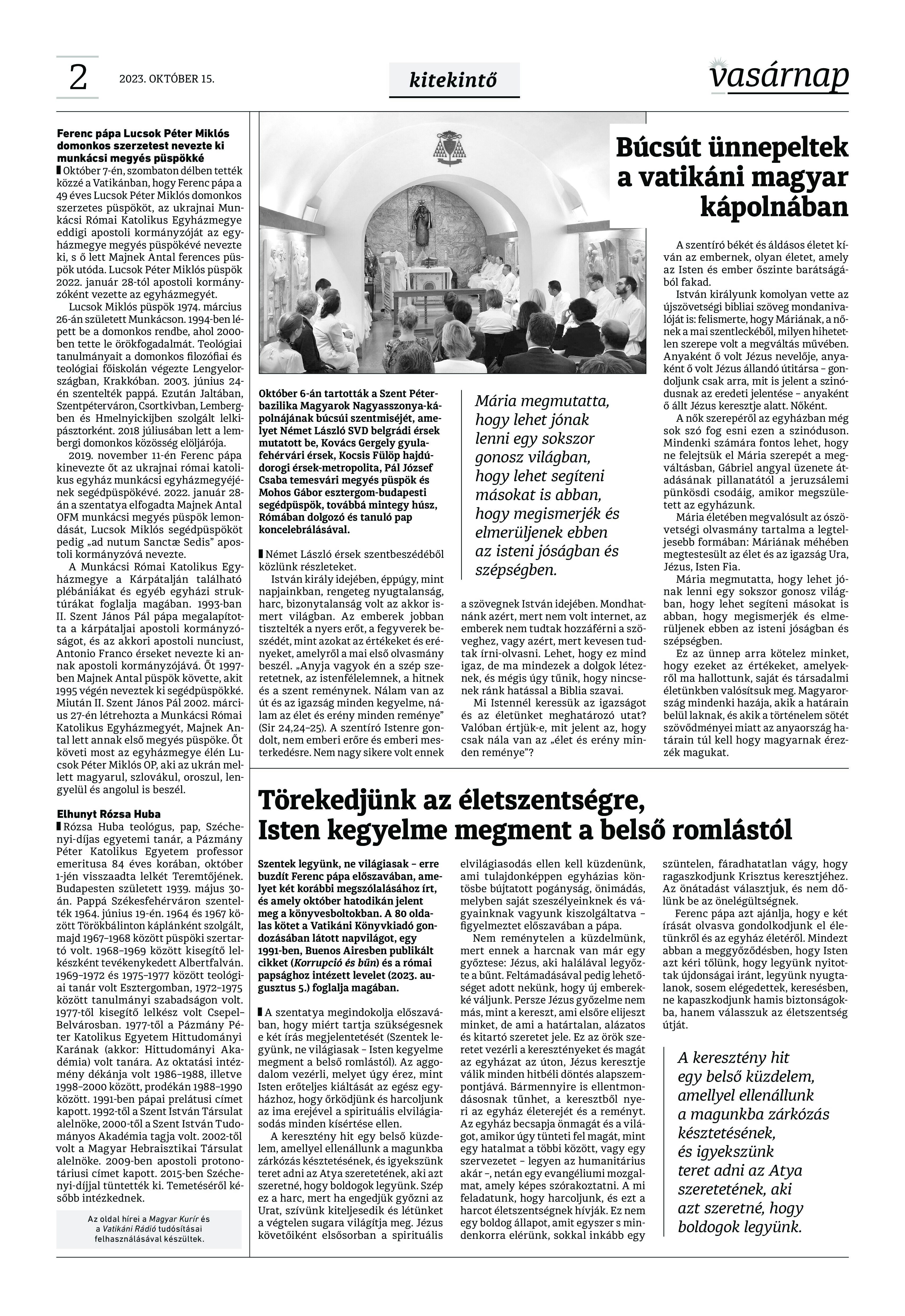 VASÁRNAP - 2023. október 15. A Vasárnap Katolikus Hetilap 2023. október 15. / XXXIII évf. / 42. számának digitális változata 1 / 12 2 & 3 / 12 4 & 5 / 12 6 & 7 / 12 8 & 9 / 12 10 & 11 / 12 12 / 12