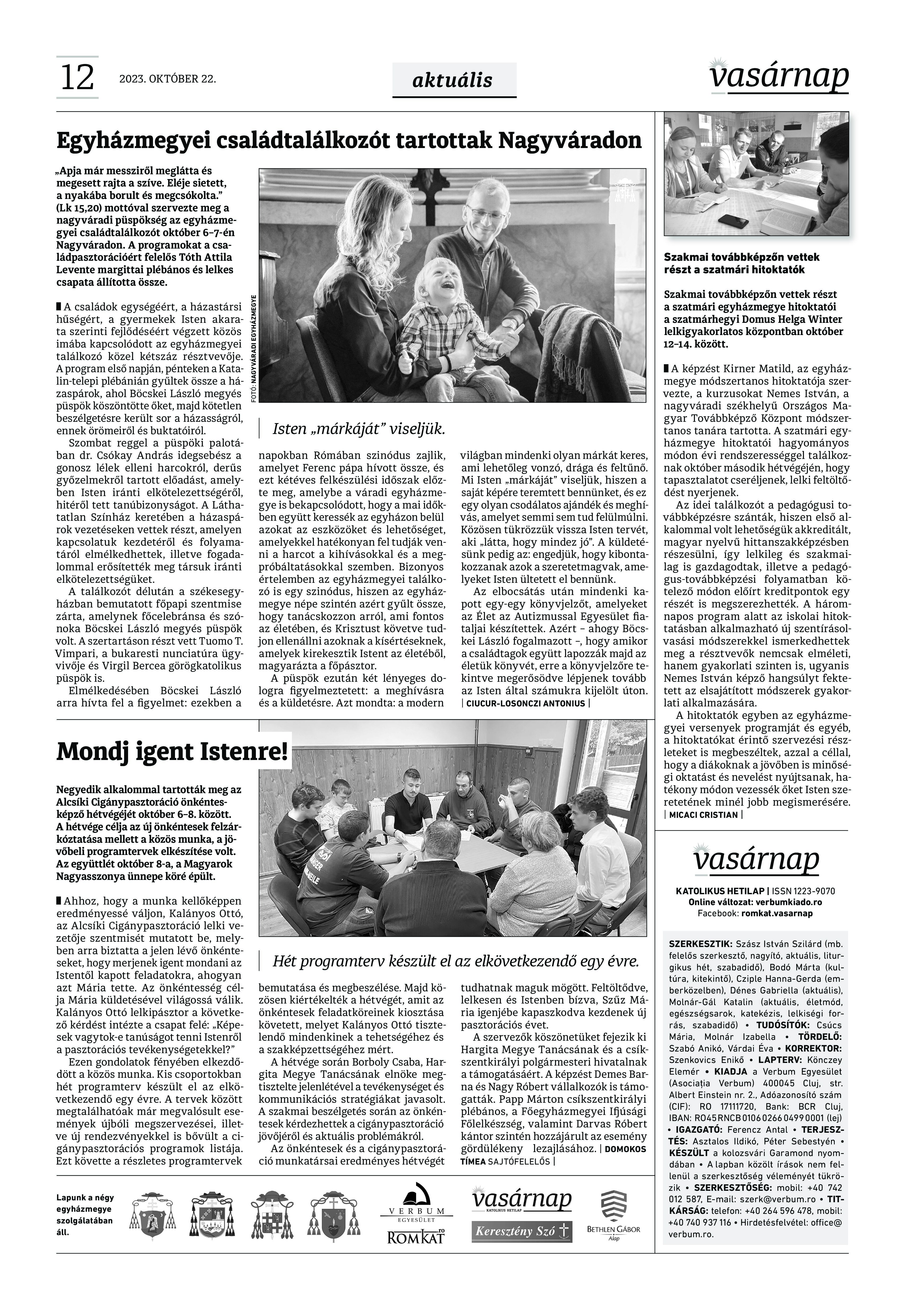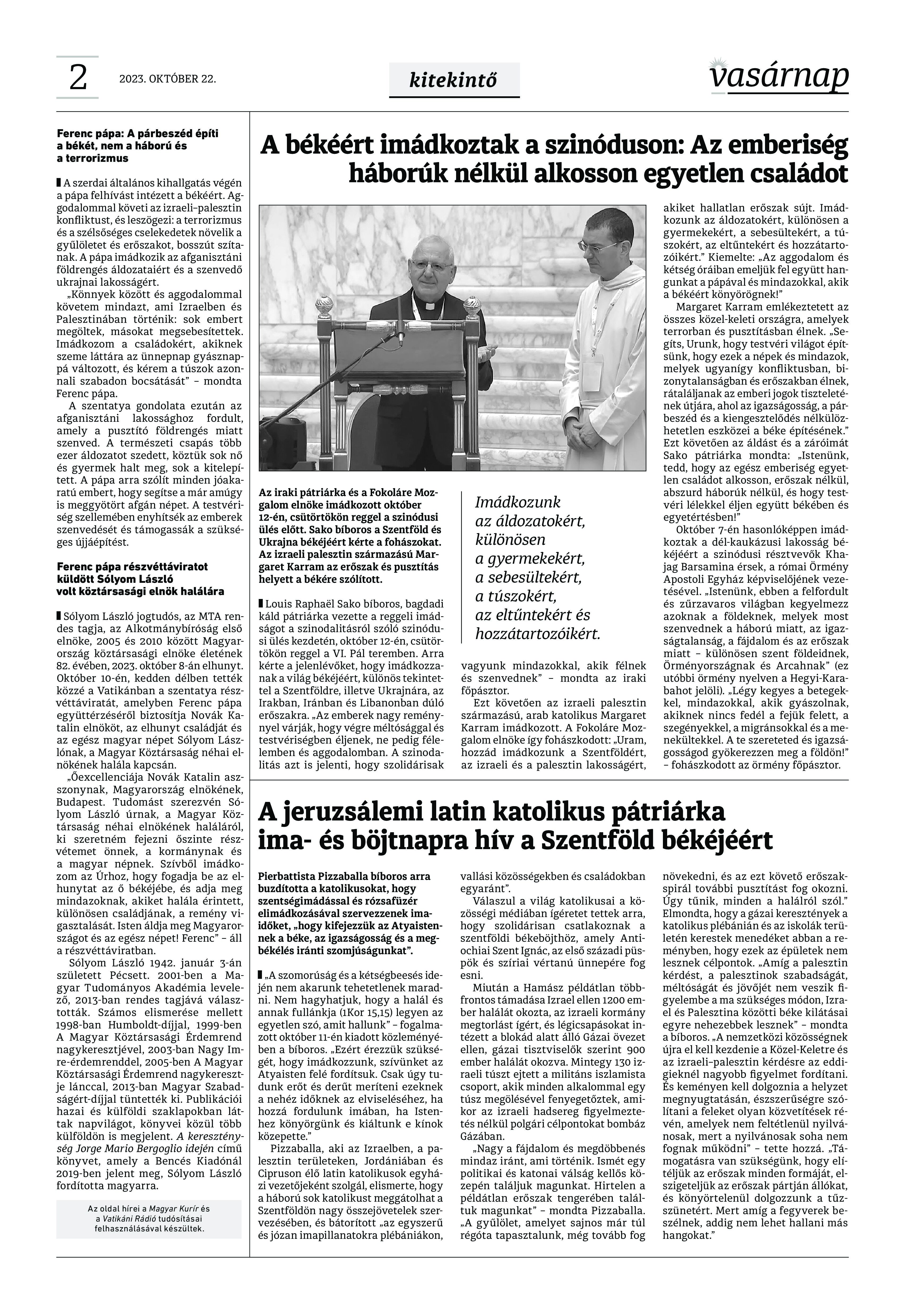 VASÁRNAP - 2023. október 22. A Vasárnap Katolikus Hetilap 2023. október 22. / XXXIII évf. / 43. számának digitális változata 1 / 12 2 & 3 / 12 4 & 5 / 12 6 & 7 / 12 8 & 9 / 12 10 & 11 / 12 12 / 12