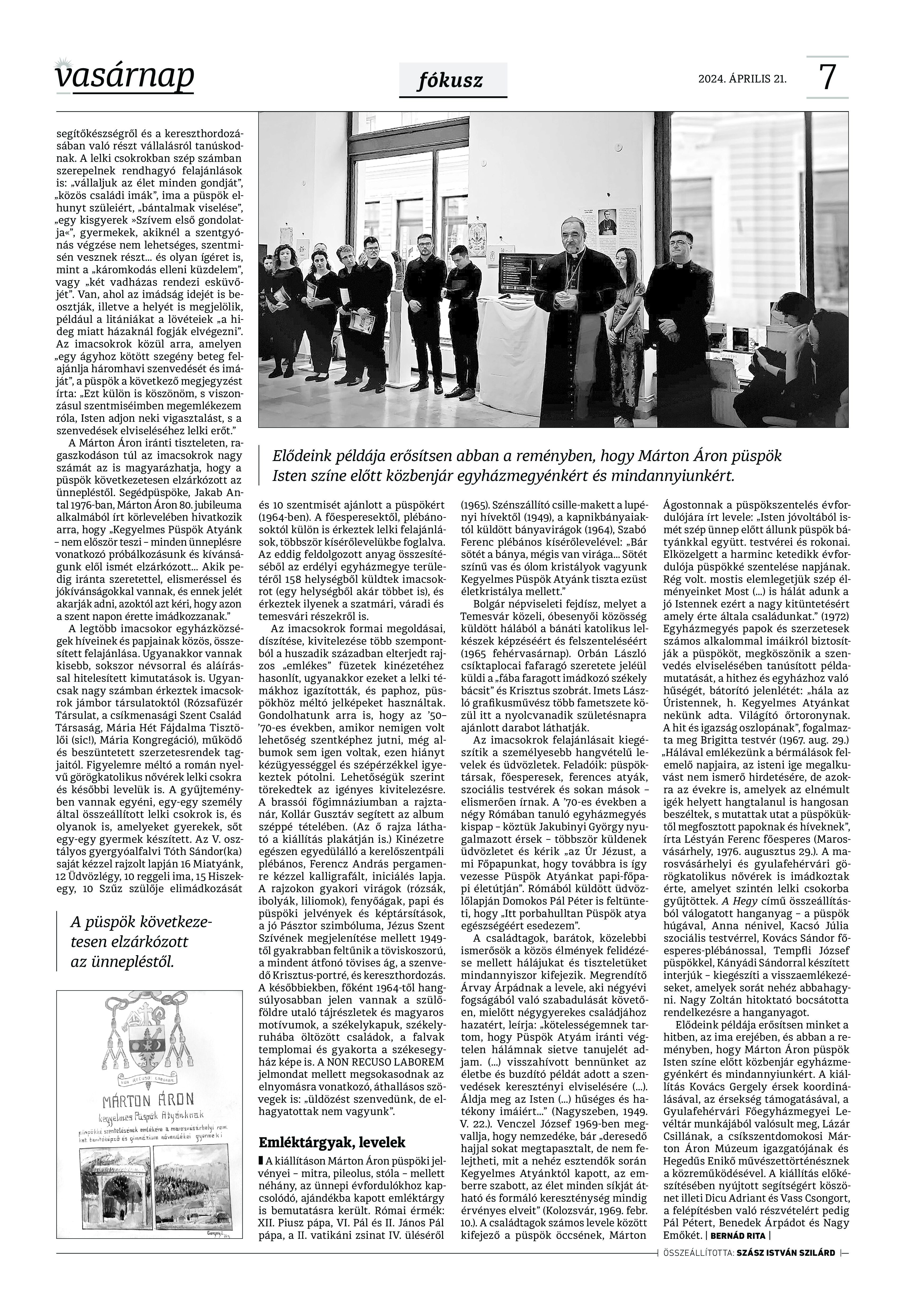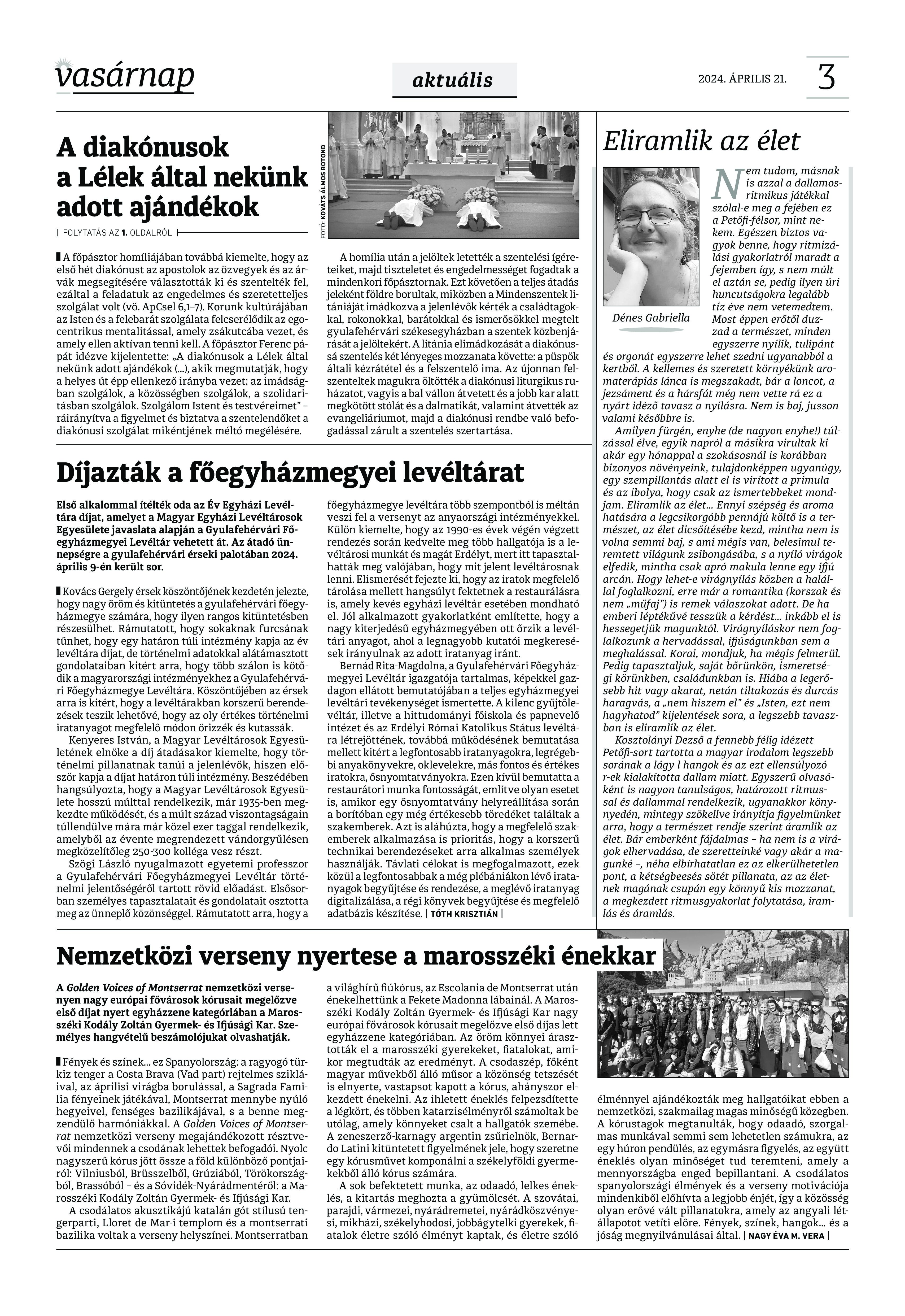 VASÁRNAP - 2024. április 21. A Vasárnap Katolikus Hetilap 2024. április 21. / XXXIV évf. / 16. számának digitális változata. 1 / 12 2 & 3 / 12 4 & 5 / 12 6 & 7 / 12 8 & 9 / 12 10 & 11 / 12 12 / 12