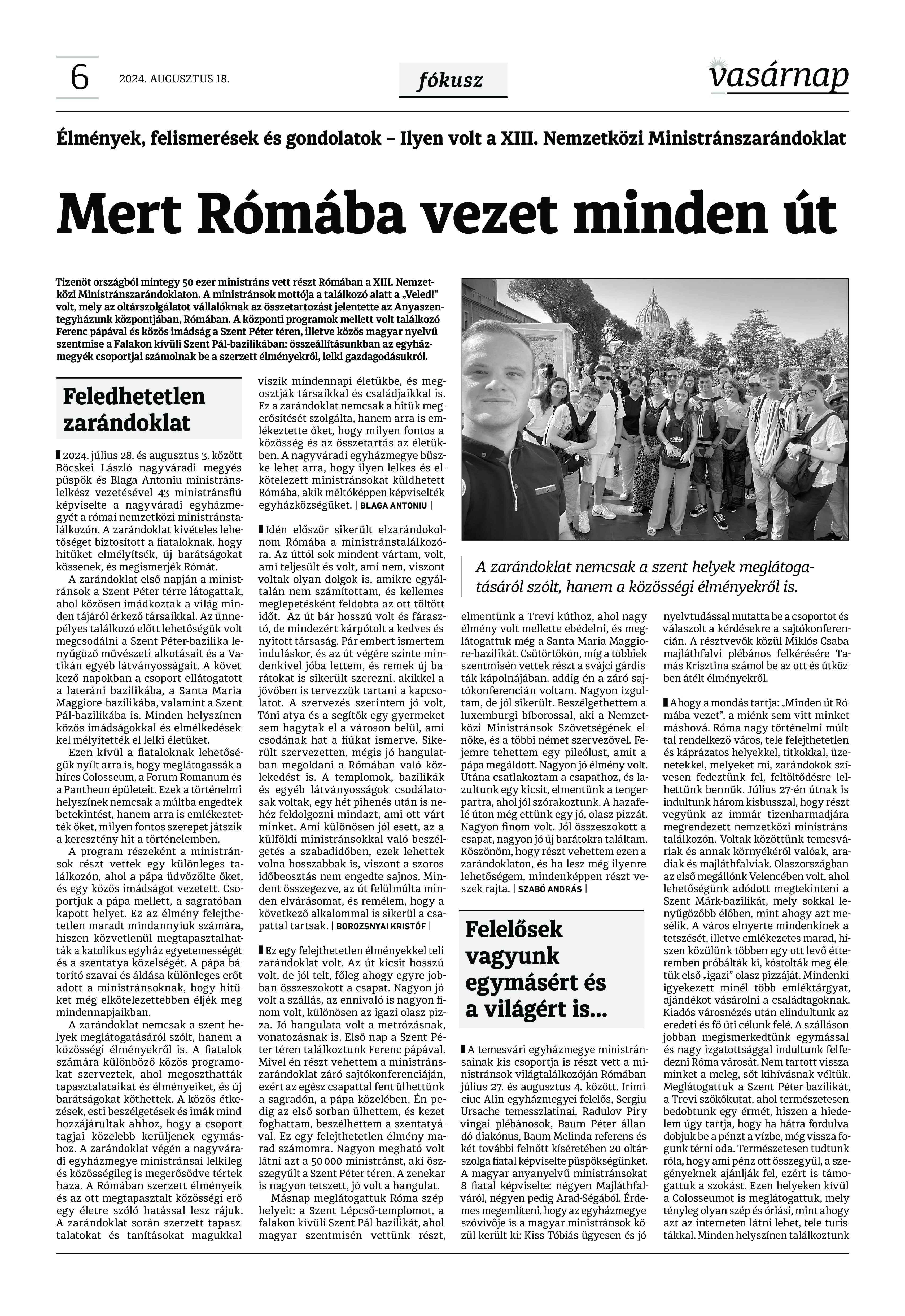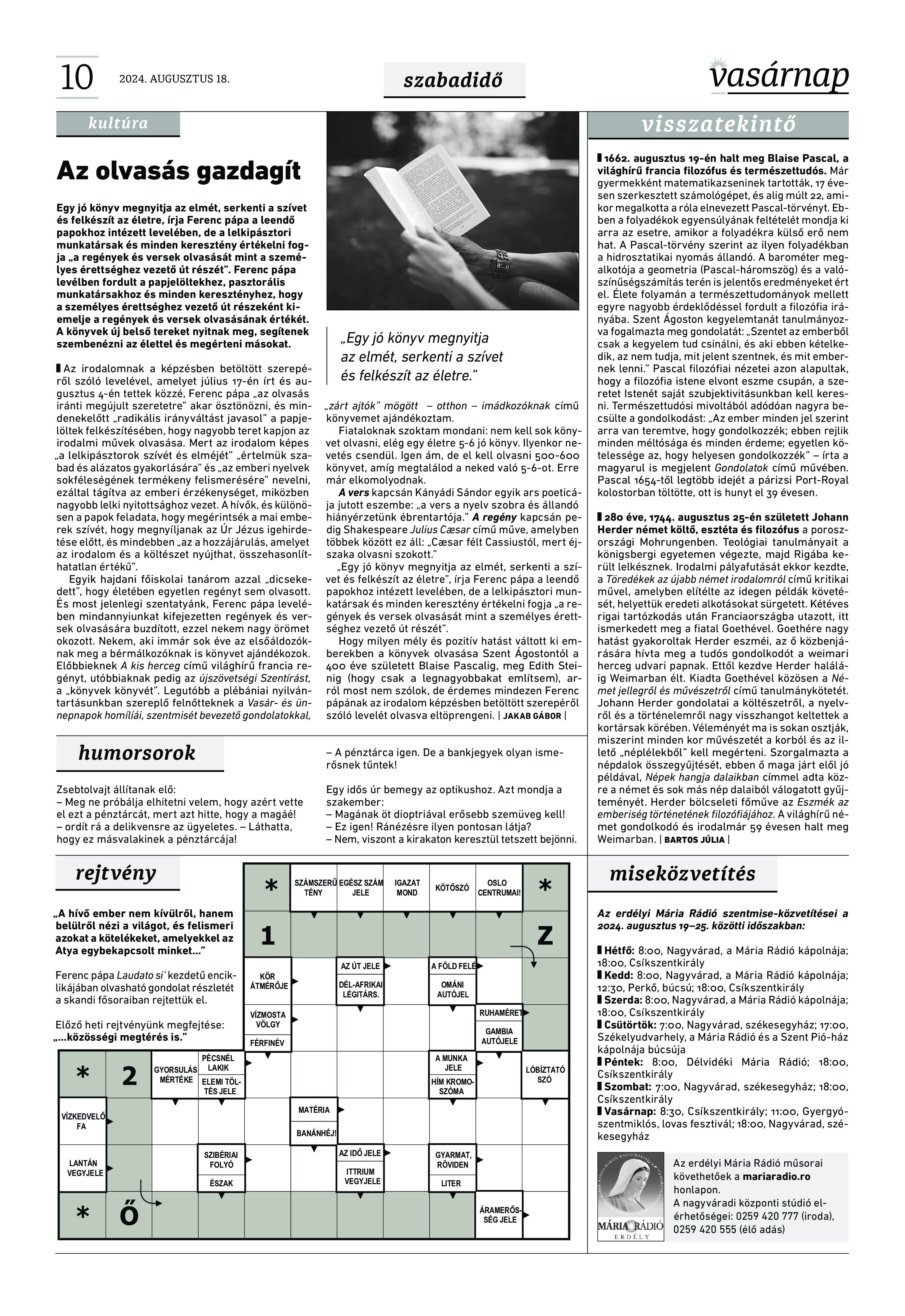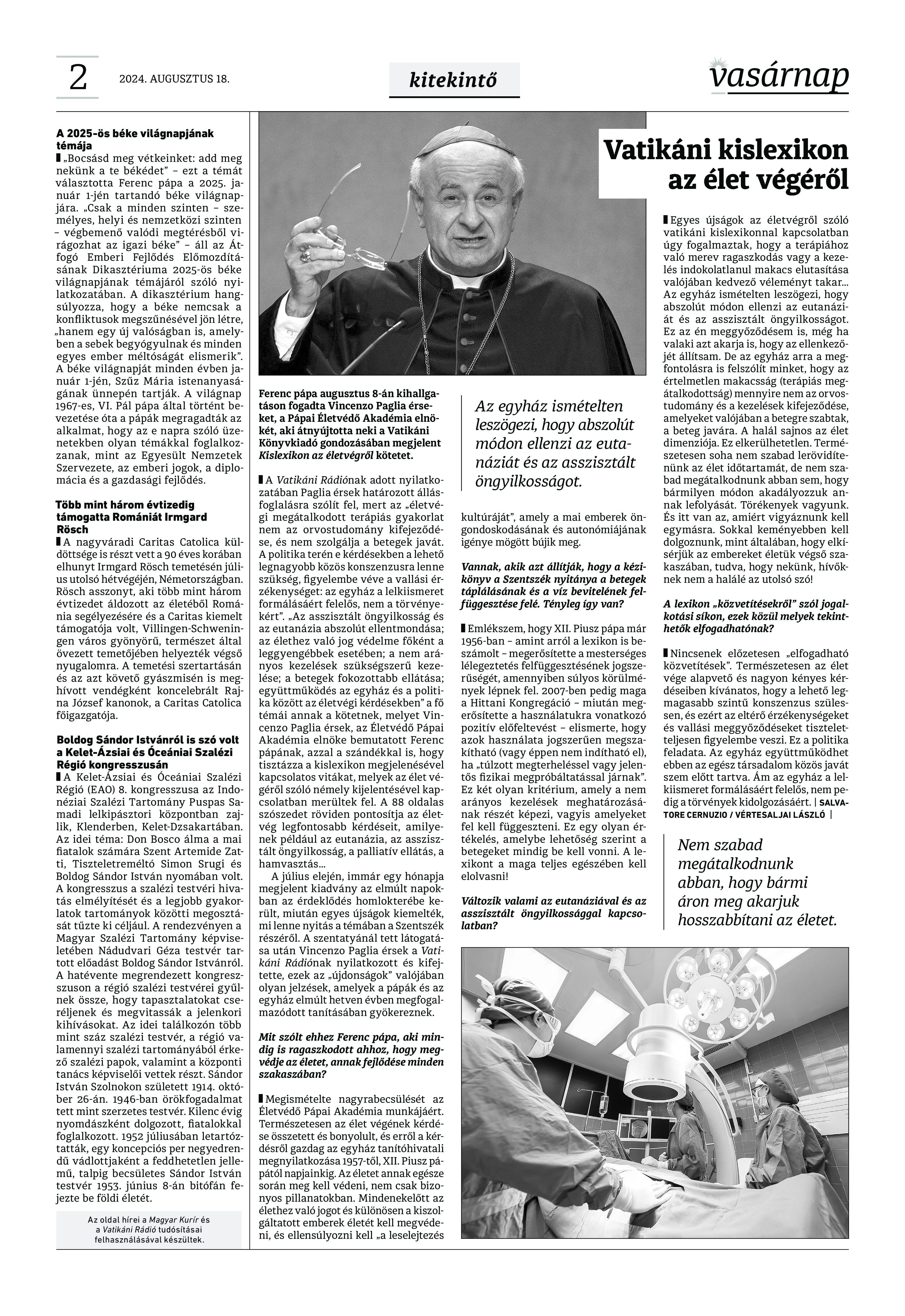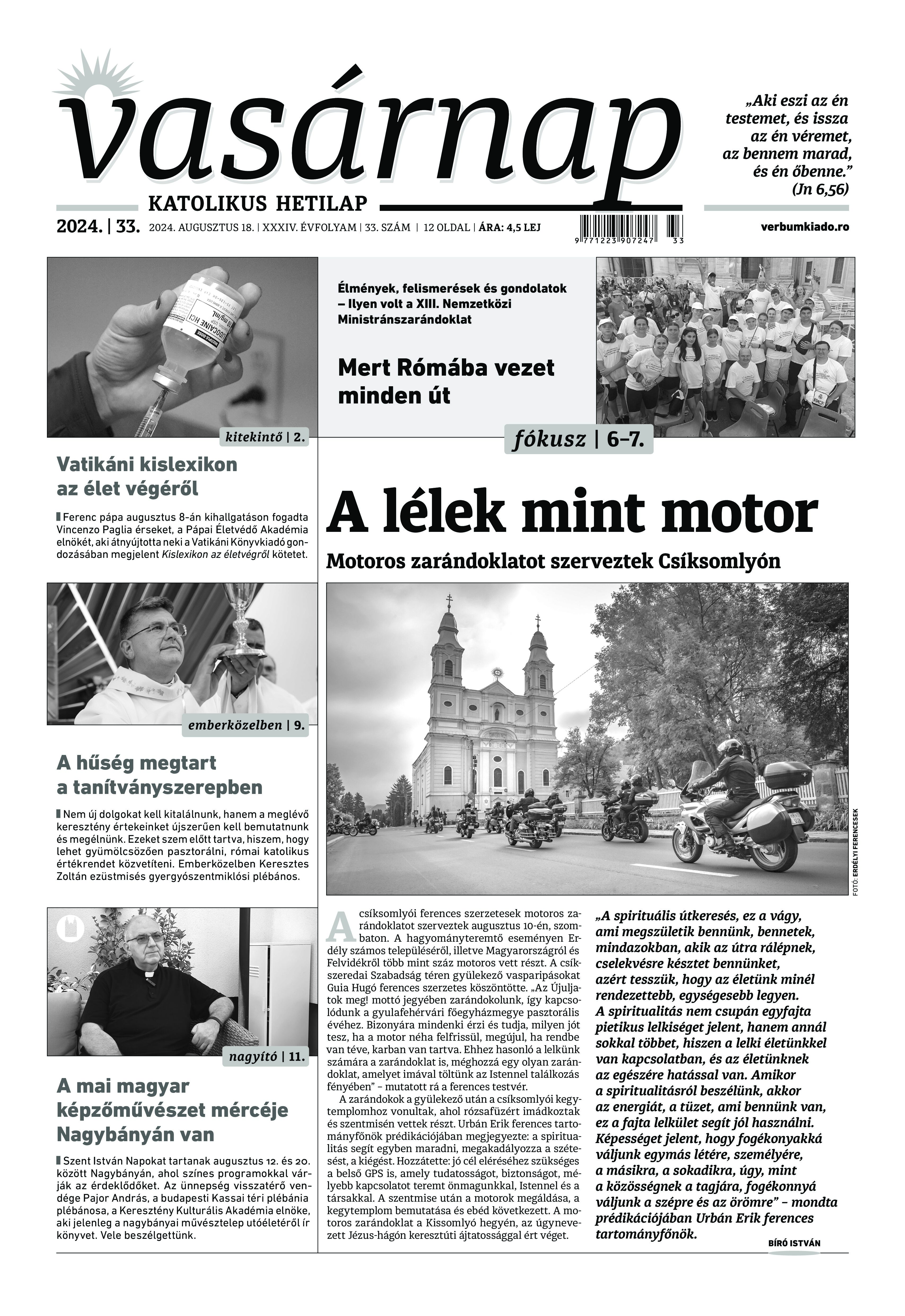 VASÁRNAP - 2024. augusztus 18. A Vasárnap Katolikus Hetilap 2024. augusztus 18. / XXXIV évf. / 33. számának digitális változata. 1 / 12 2 & 3 / 12 4 & 5 / 12 6 & 7 / 12 8 & 9 / 12 10 & 11 / 12 12 / 12