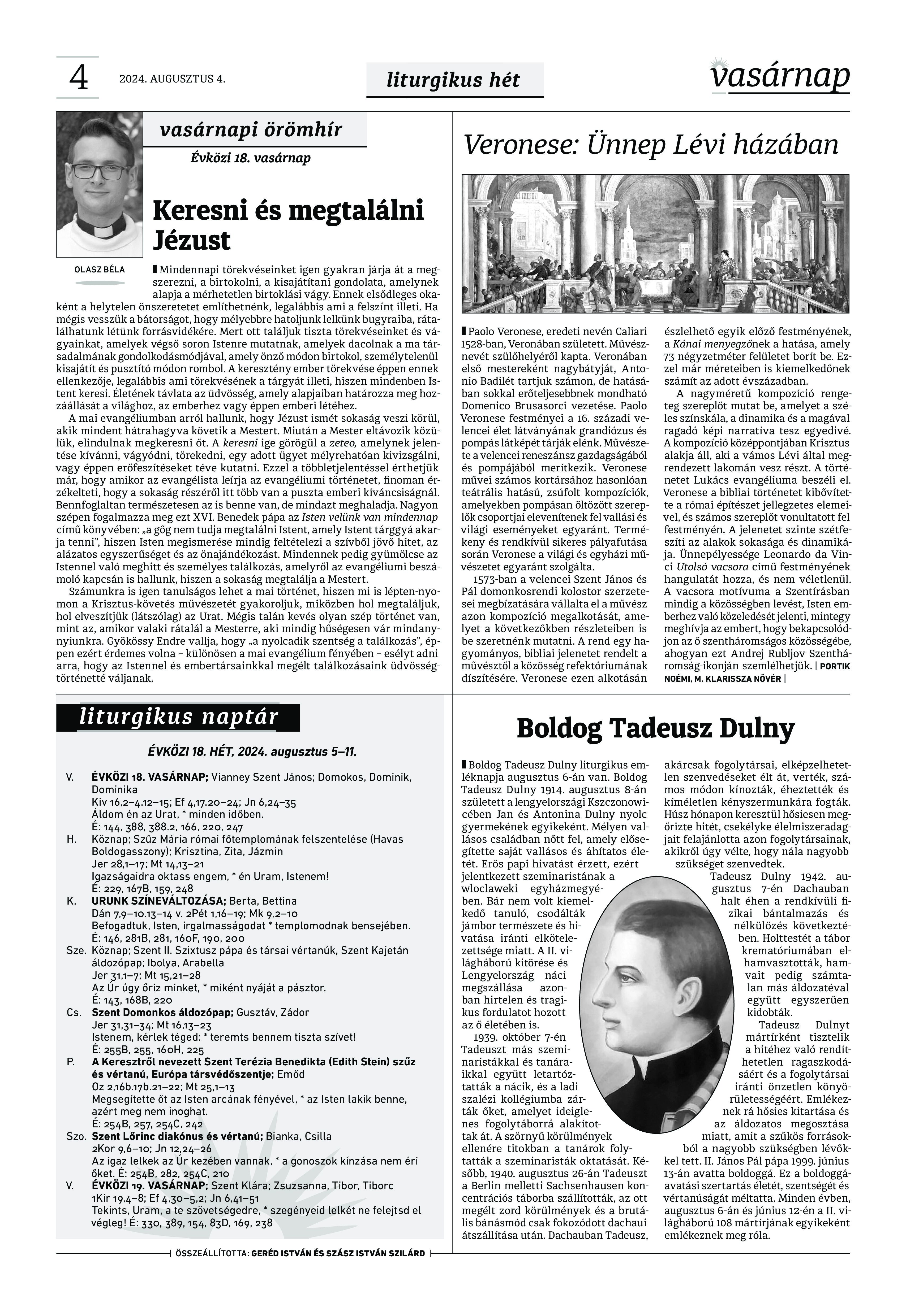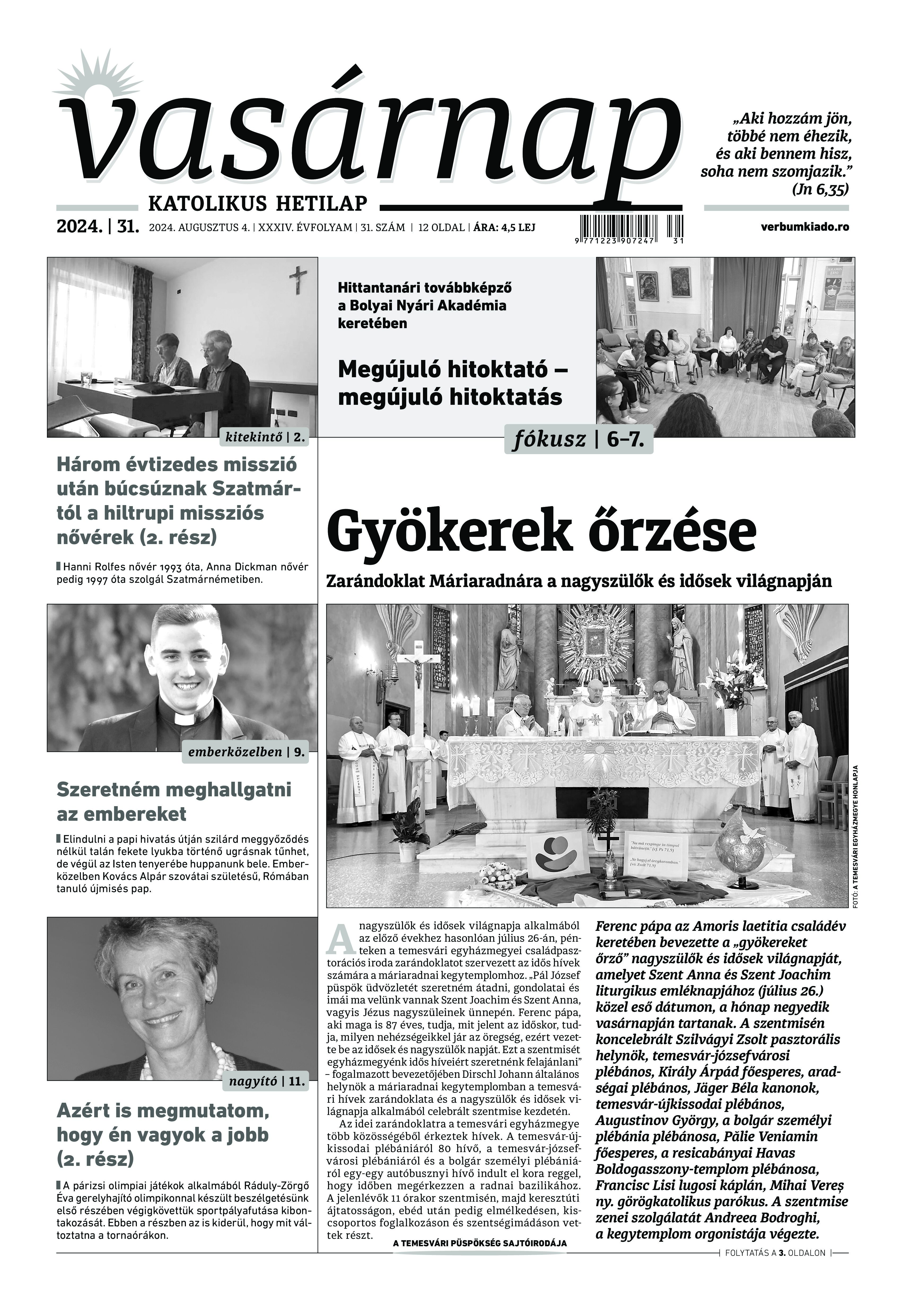 VASÁRNAP - 2024. augusztus 4. A Vasárnap Katolikus Hetilap 2024. augusztus 4. / XXXIV évf. / 32. számának digitális változata. 1 / 12 2 & 3 / 12 4 & 5 / 12 6 & 7 / 12 8 & 9 / 12 10 & 11 / 12 12 / 12