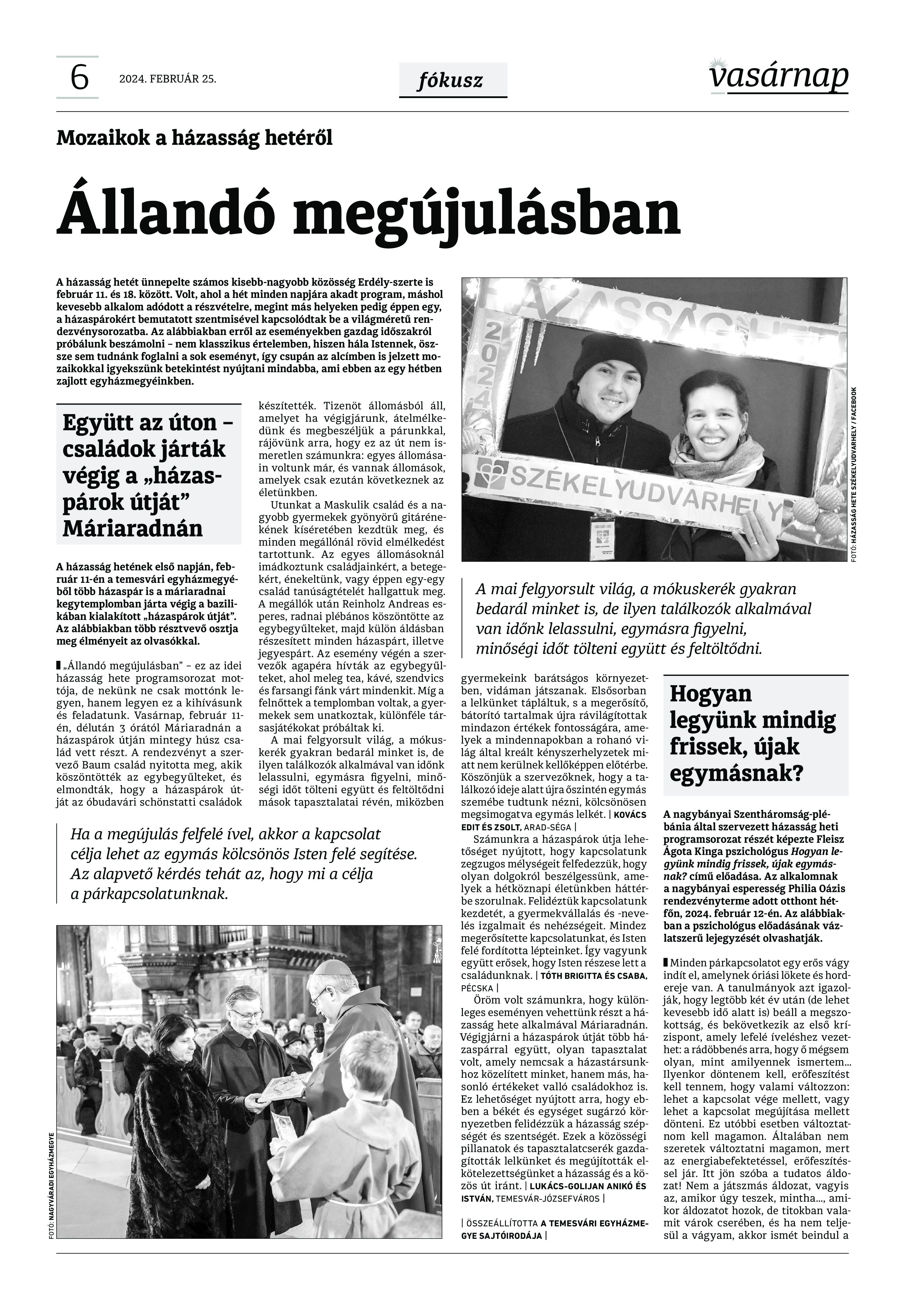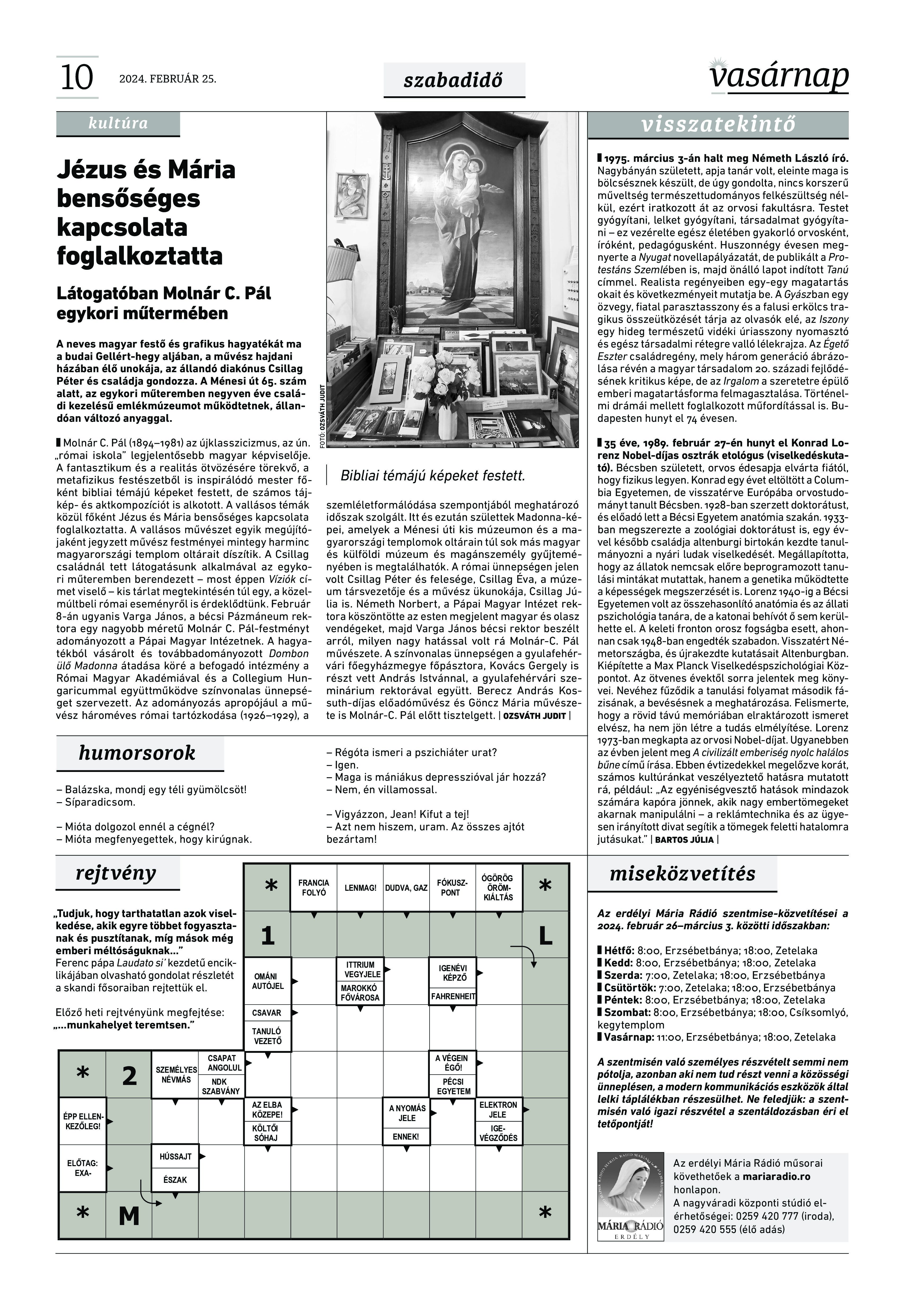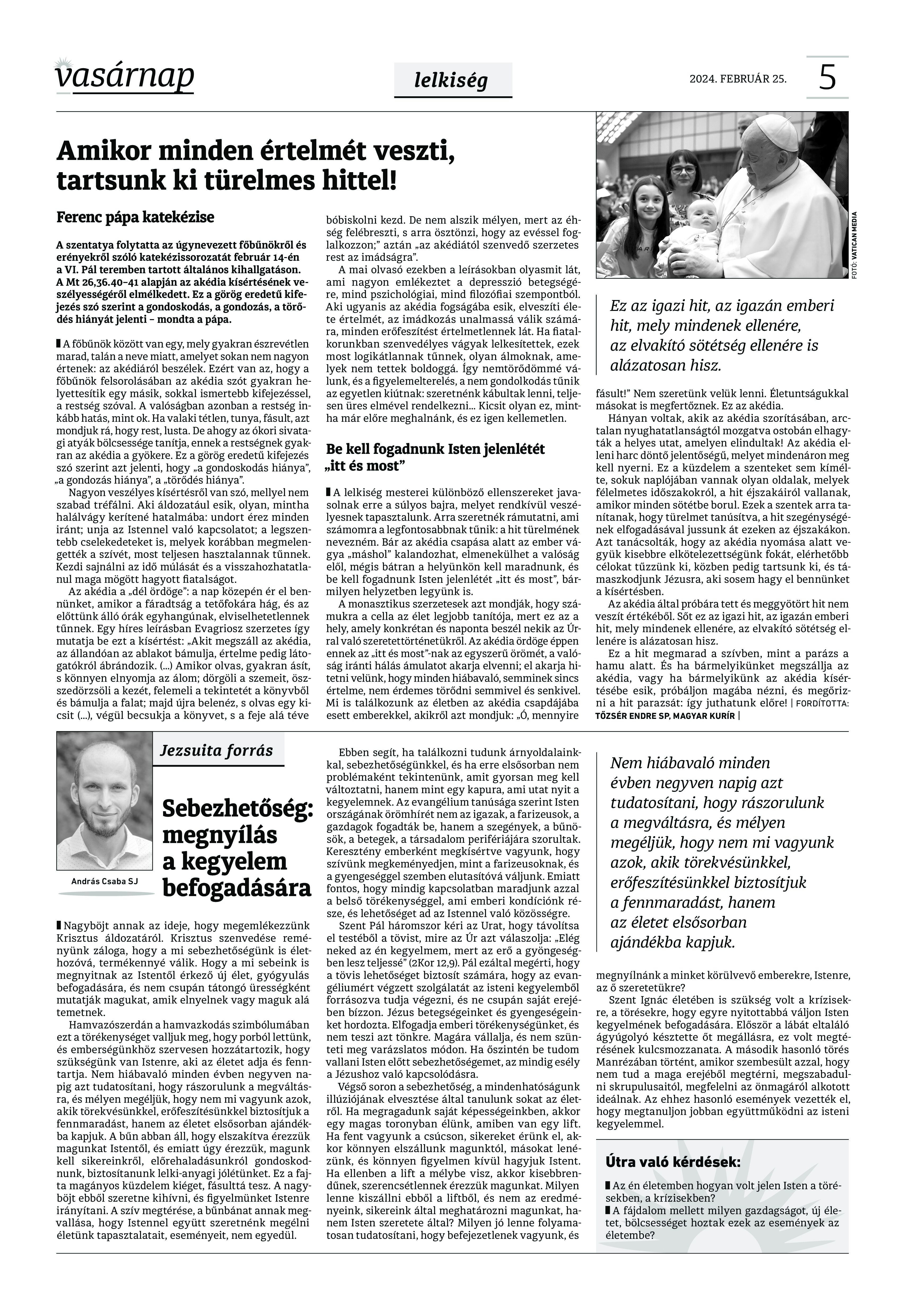 VASÁRNAP - 2024. február 25. A Vasárnap Katolikus Hetilap 2024. február 25. / XXXIV évf. / 8. számának digitális változata. 1 / 12 2 & 3 / 12 4 & 5 / 12 6 & 7 / 12 8 & 9 / 12 10 & 11 / 12 12 / 12