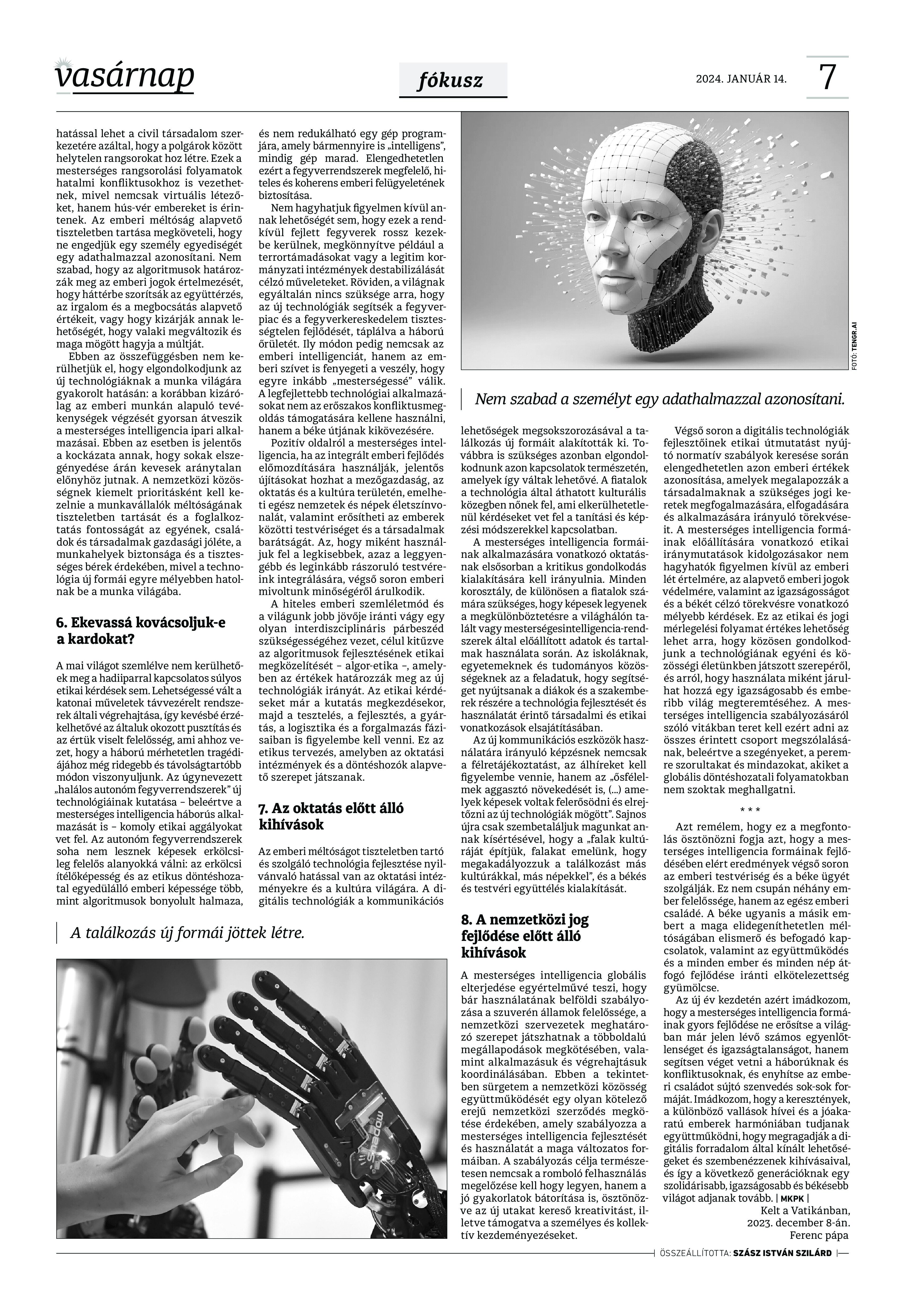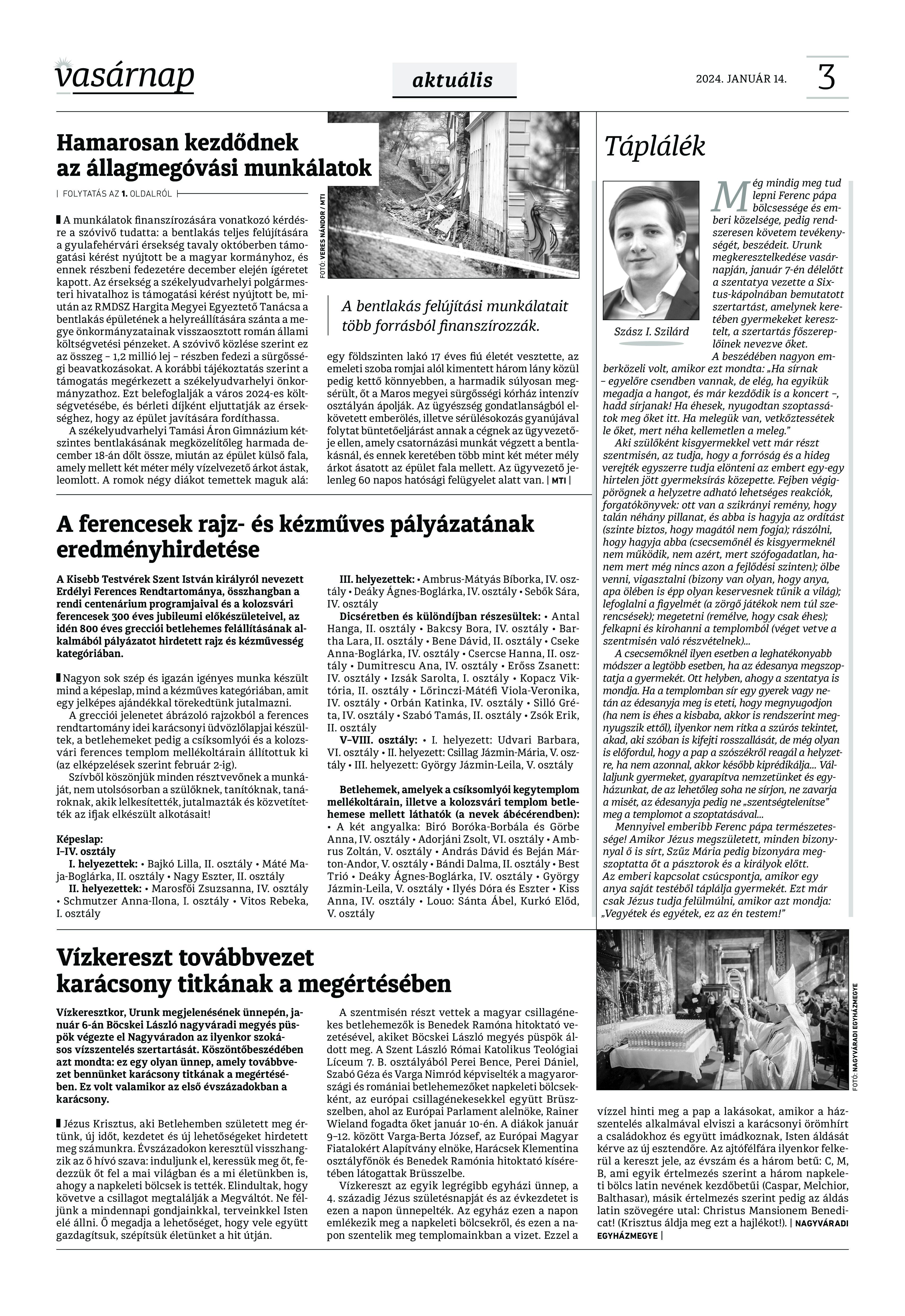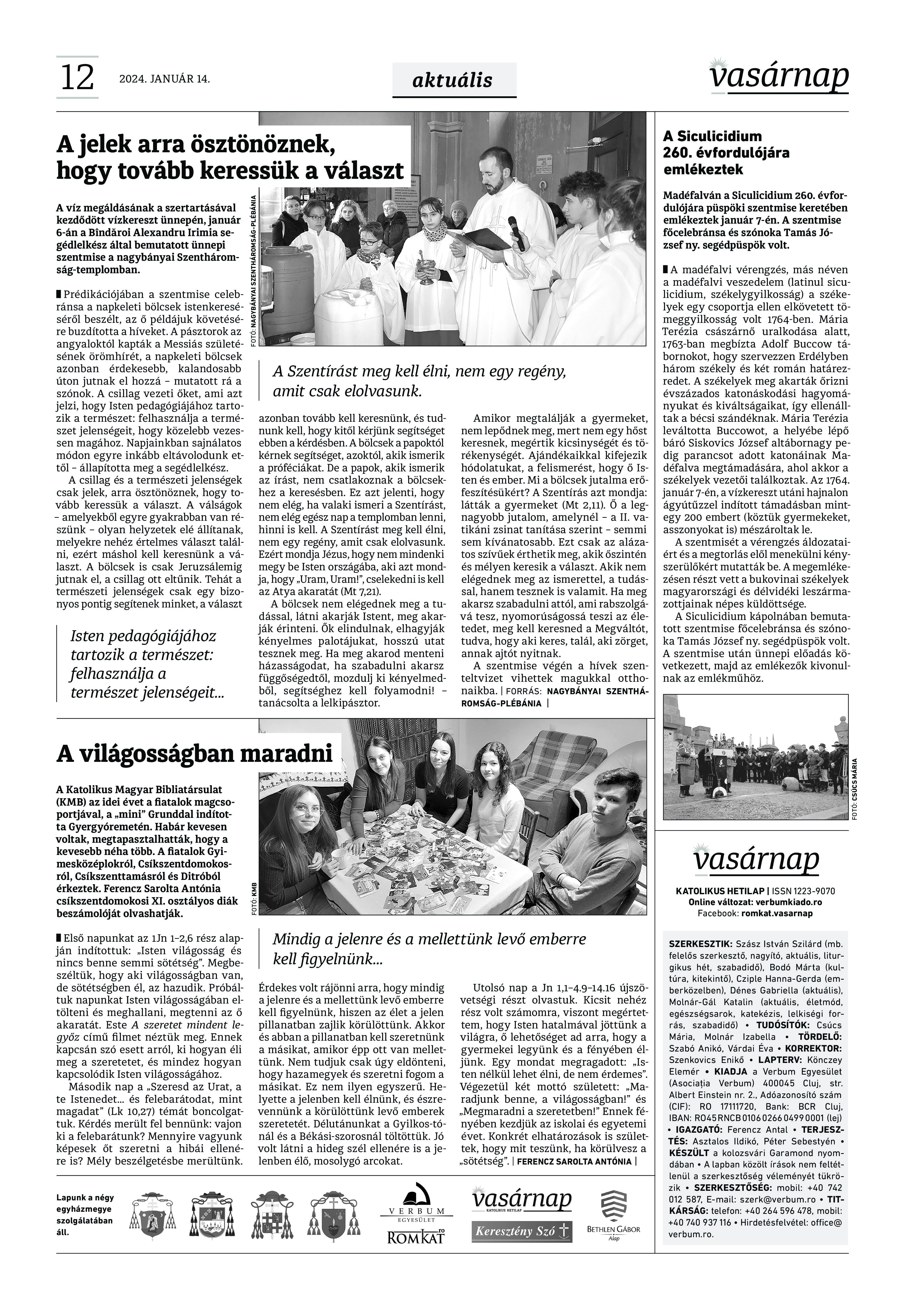 VASÁRNAP - 2024. január 14. A Vasárnap Katolikus Hetilap 2024. január 14. / XXXIV évf. / 2. számának digitális változata. 1 / 12 2 & 3 / 12 4 & 5 / 12 6 & 7 / 12 8 & 9 / 12 10 & 11 / 12 12 / 12
