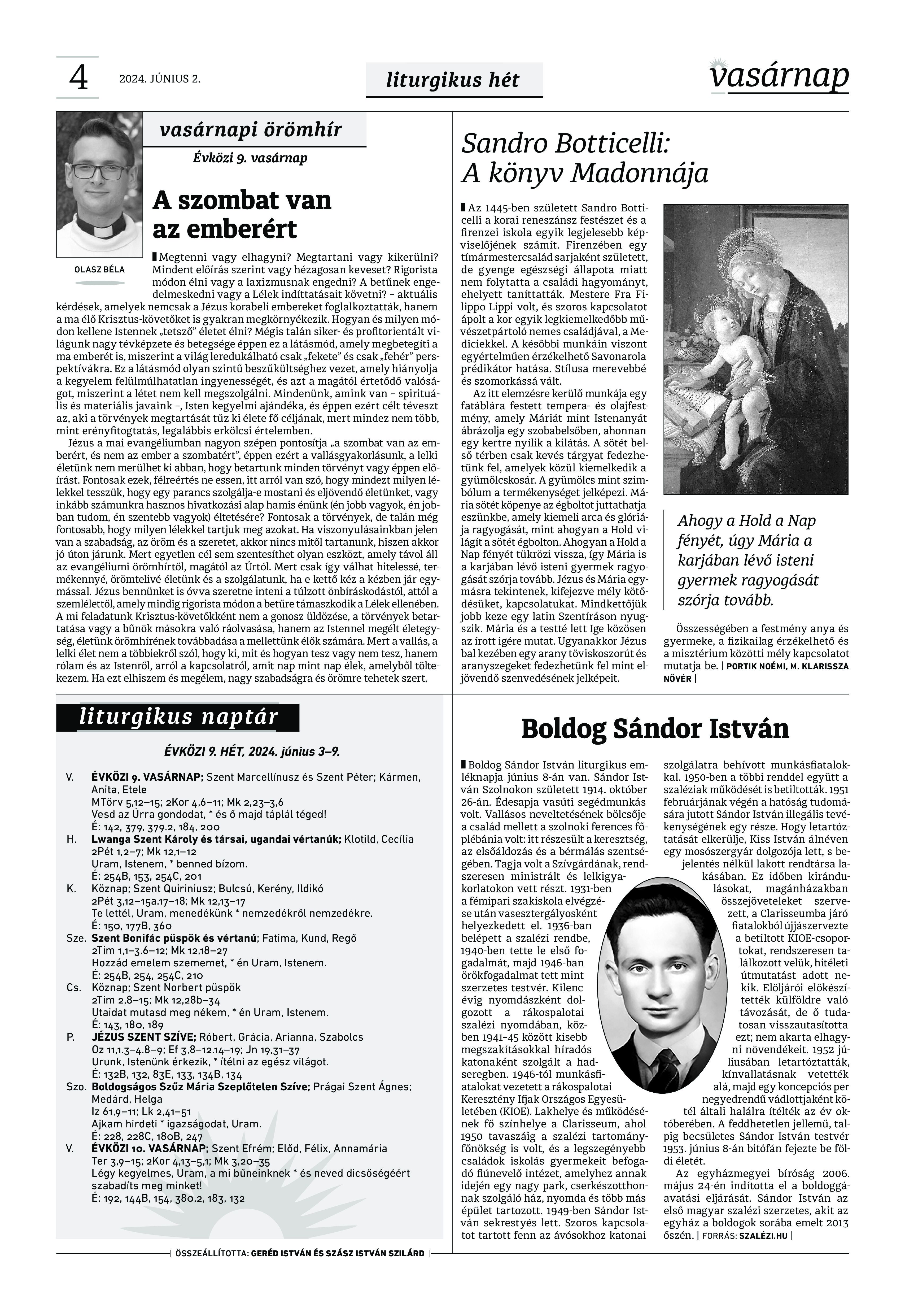 VASÁRNAP - 2024. június 2. A Vasárnap Katolikus Hetilap 2024. június 2. / XXXIV évf. / 22. számának digitális változata. 1 / 12 2 & 3 / 12 4 & 5 / 12 6 & 7 / 12 8 & 9 / 12 10 & 11 / 12 12 / 12