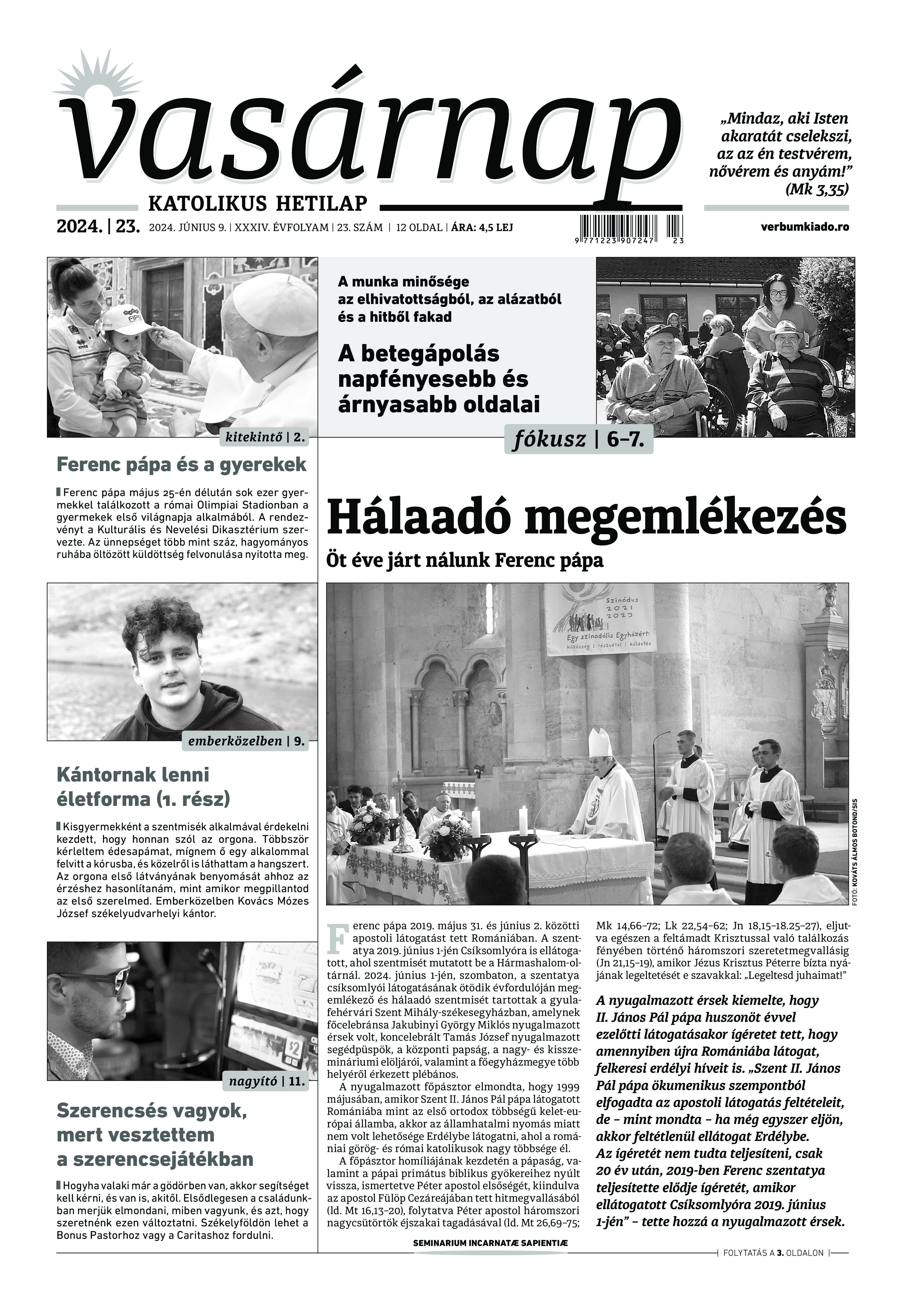 VASÁRNAP - 2024. június 9. A Vasárnap Katolikus Hetilap 2024. június 9. / XXXIV évf. / 23. számának digitális változata. 1 / 12 2 & 3 / 12 4 & 5 / 12 6 & 7 / 12 8 & 9 / 12 10 & 11 / 12 12 / 12