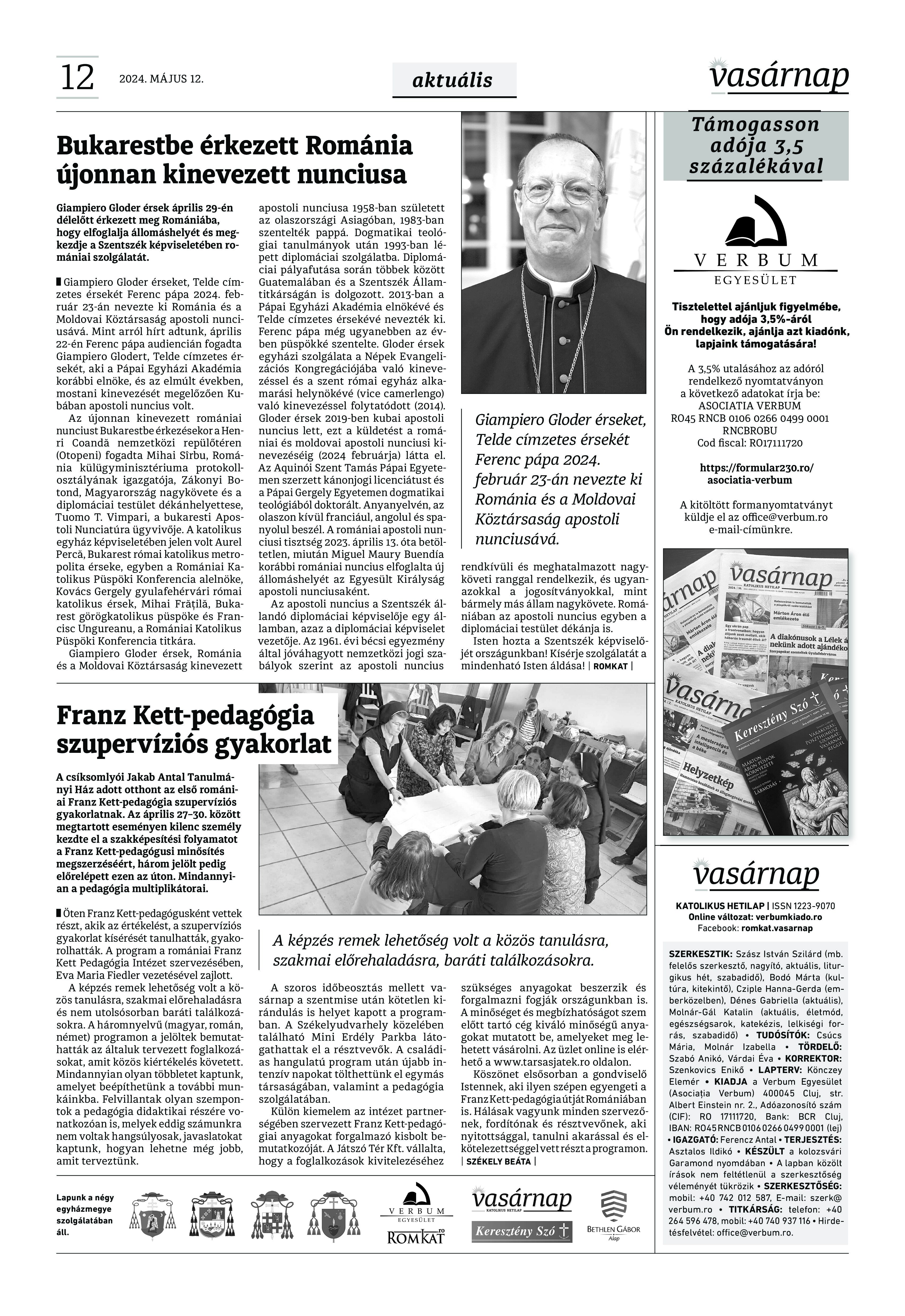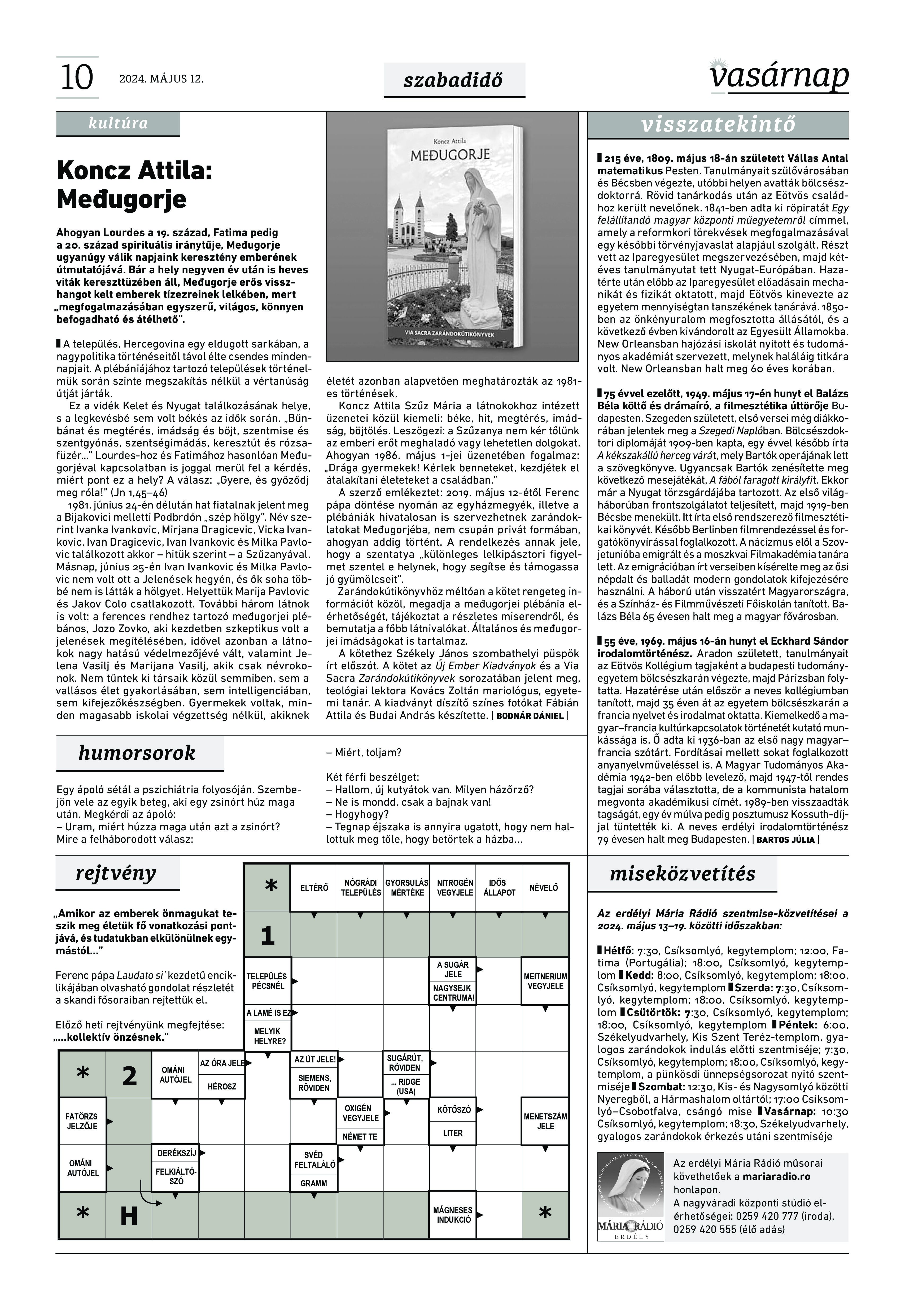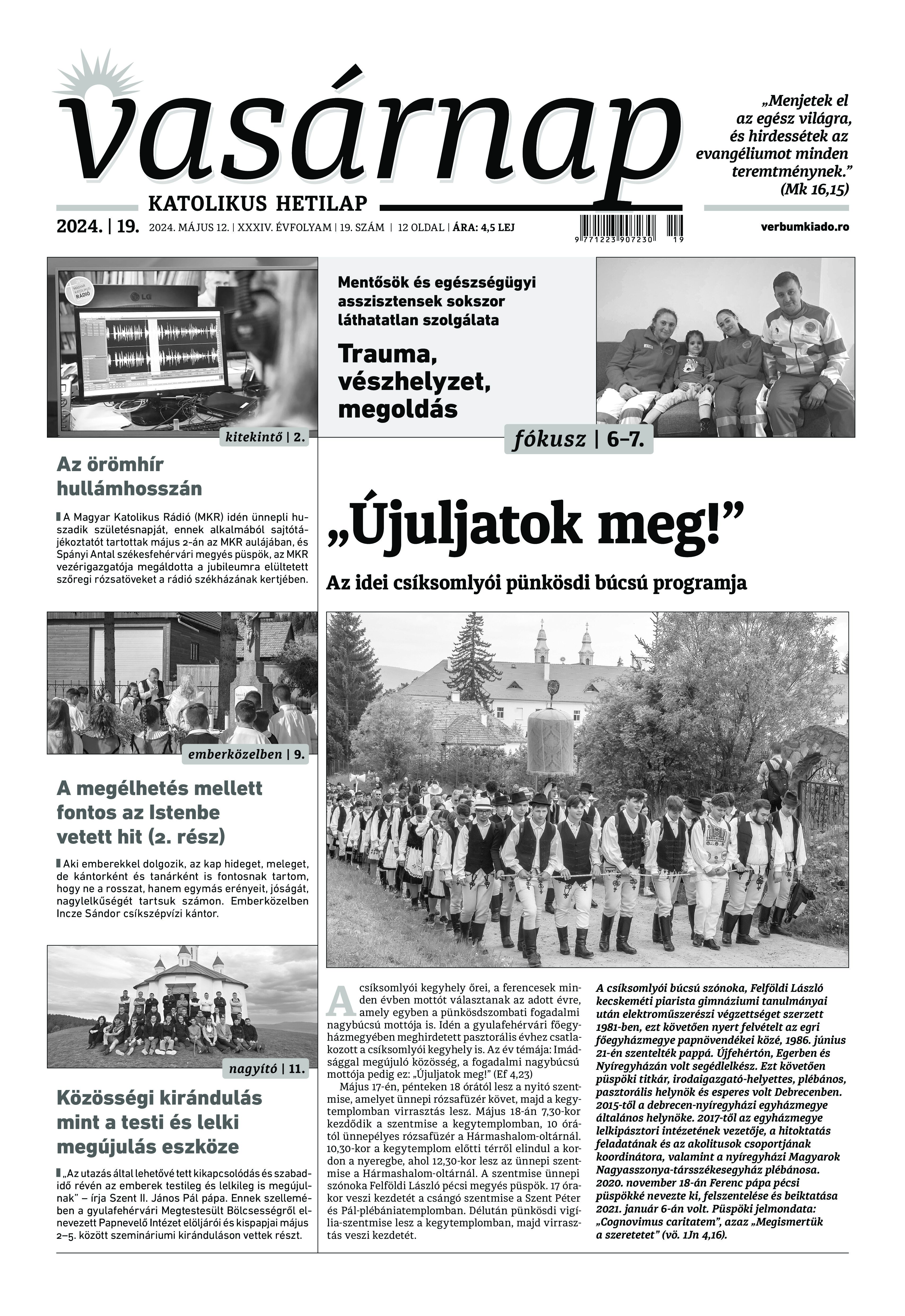 A Vasárnap Katolikus Hetilap 2024. május 12. / XXXIV évf. / 19. számának digitális változata.