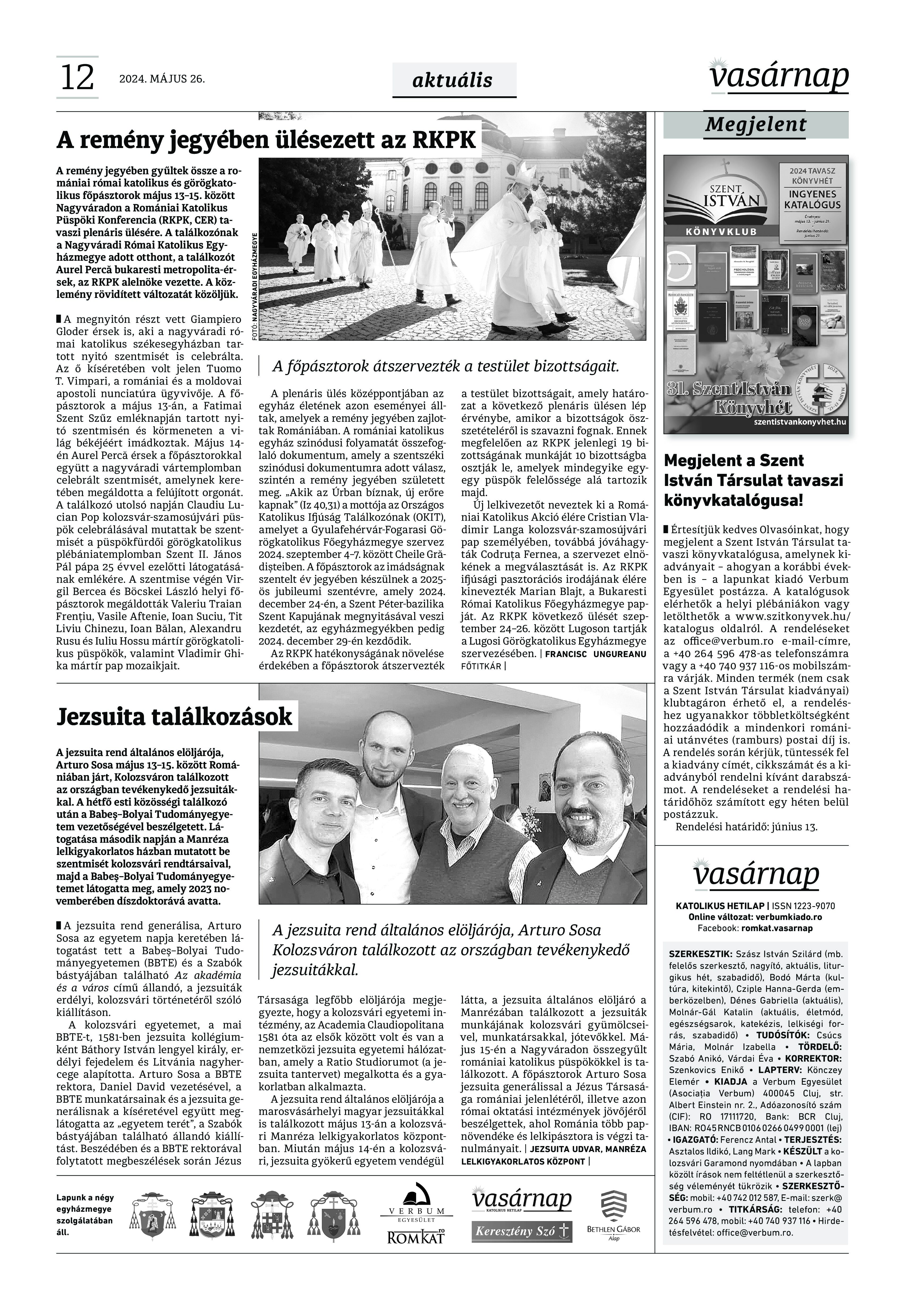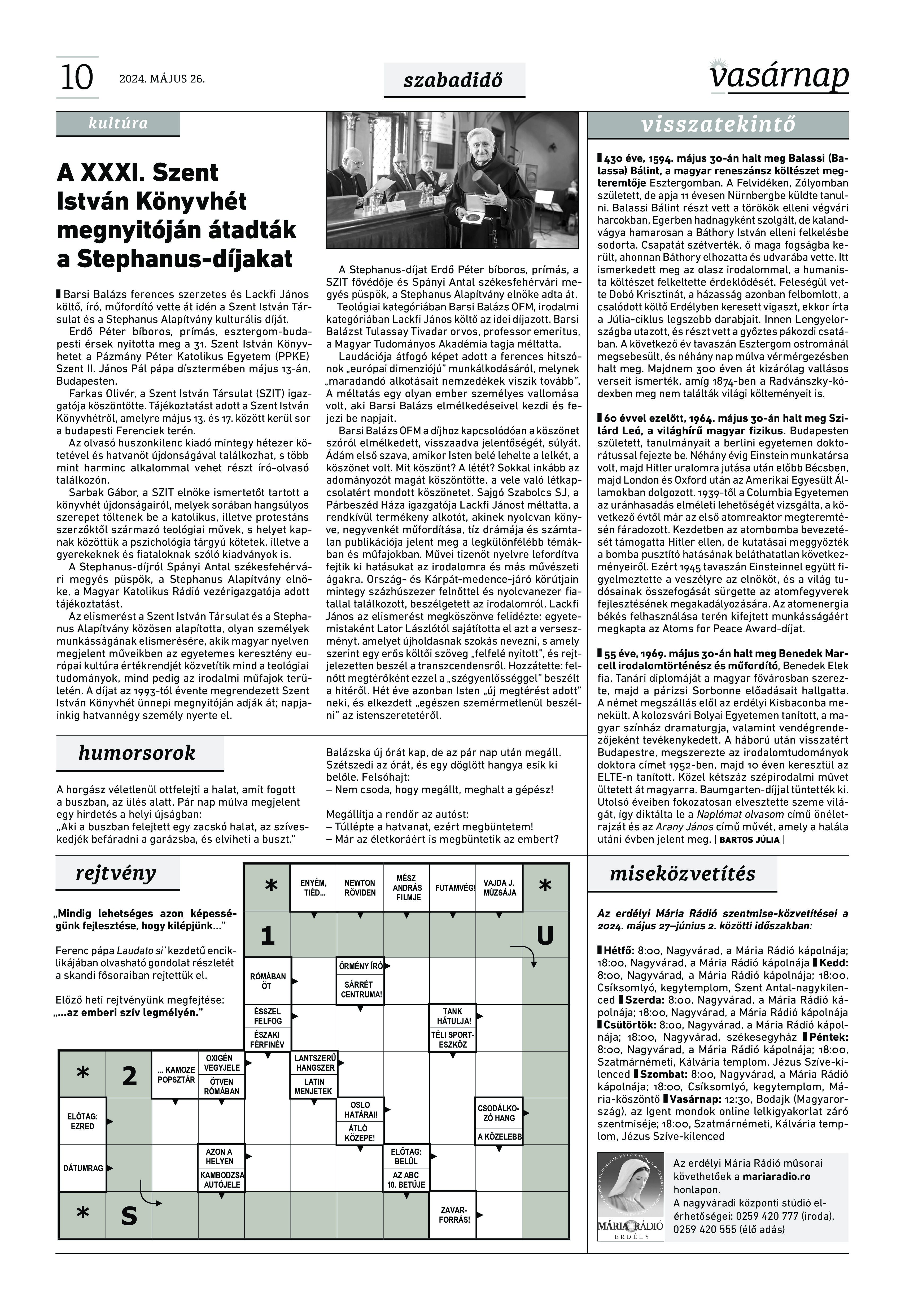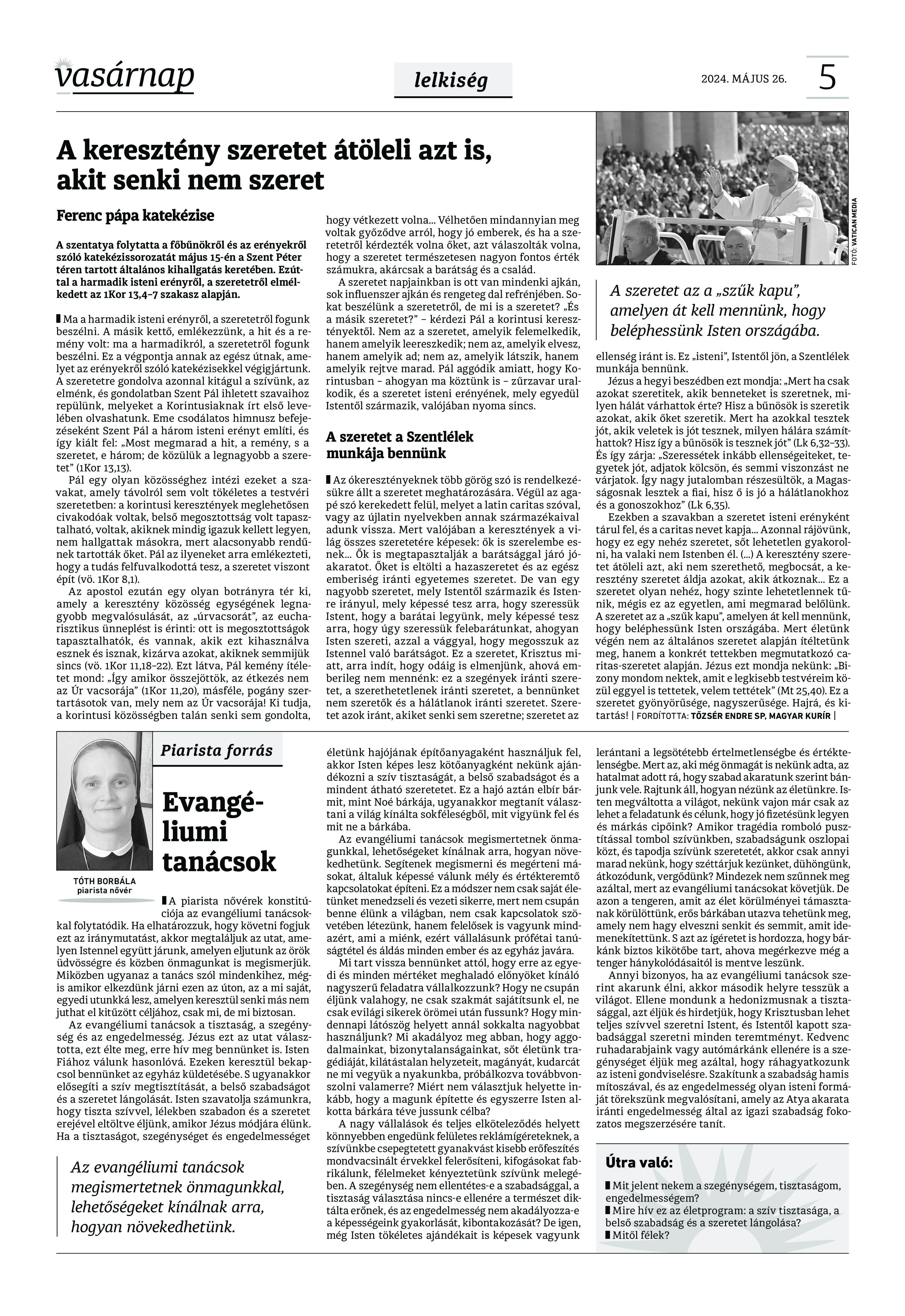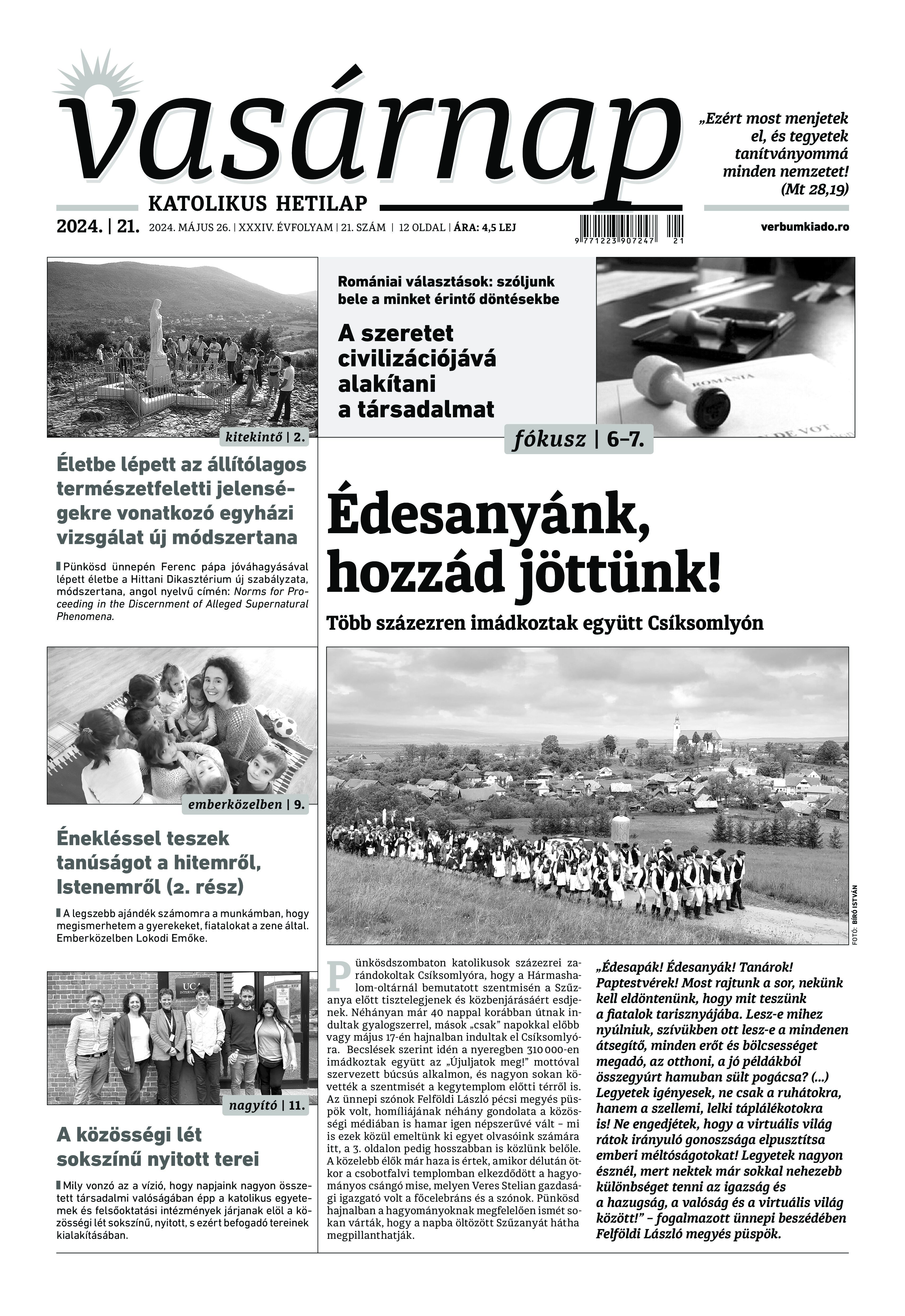 VASÁRNAP - 2024. május 26. A Vasárnap Katolikus Hetilap 2024. május 26. / XXXIV évf. / 21. számának digitális változata. 1 / 12 2 & 3 / 12 4 & 5 / 12 6 & 7 / 12 8 & 9 / 12 10 & 11 / 12 12 / 12