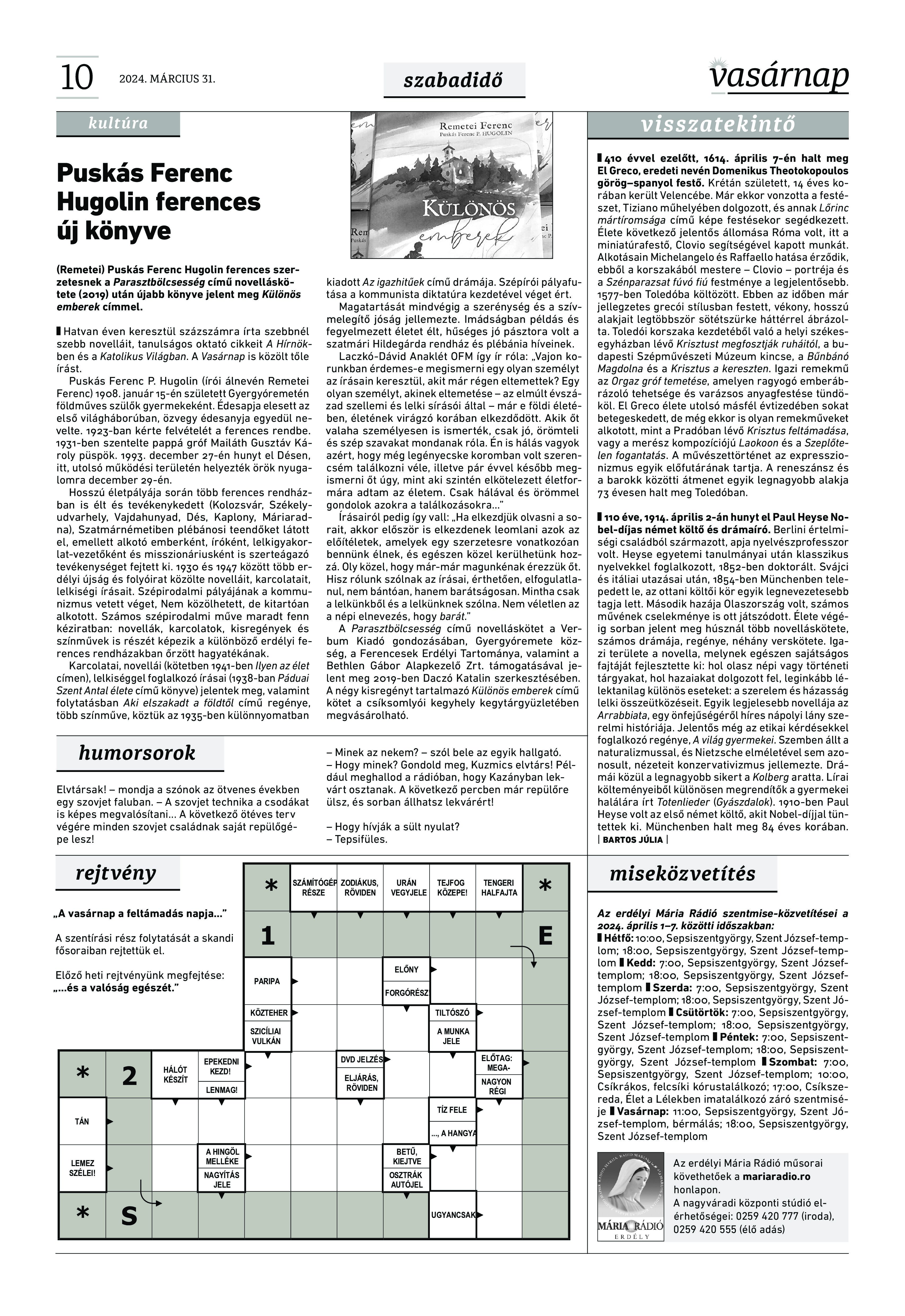 VASÁRNAP - 2024. március 31. A Vasárnap Katolikus Hetilap 2024. március 31. / XXXIV évf. / 13. számának digitális változata. 1 / 12 2 & 3 / 12 4 & 5 / 12 6 & 7 / 12 8 & 9 / 12 10 & 11 / 12 12 / 12