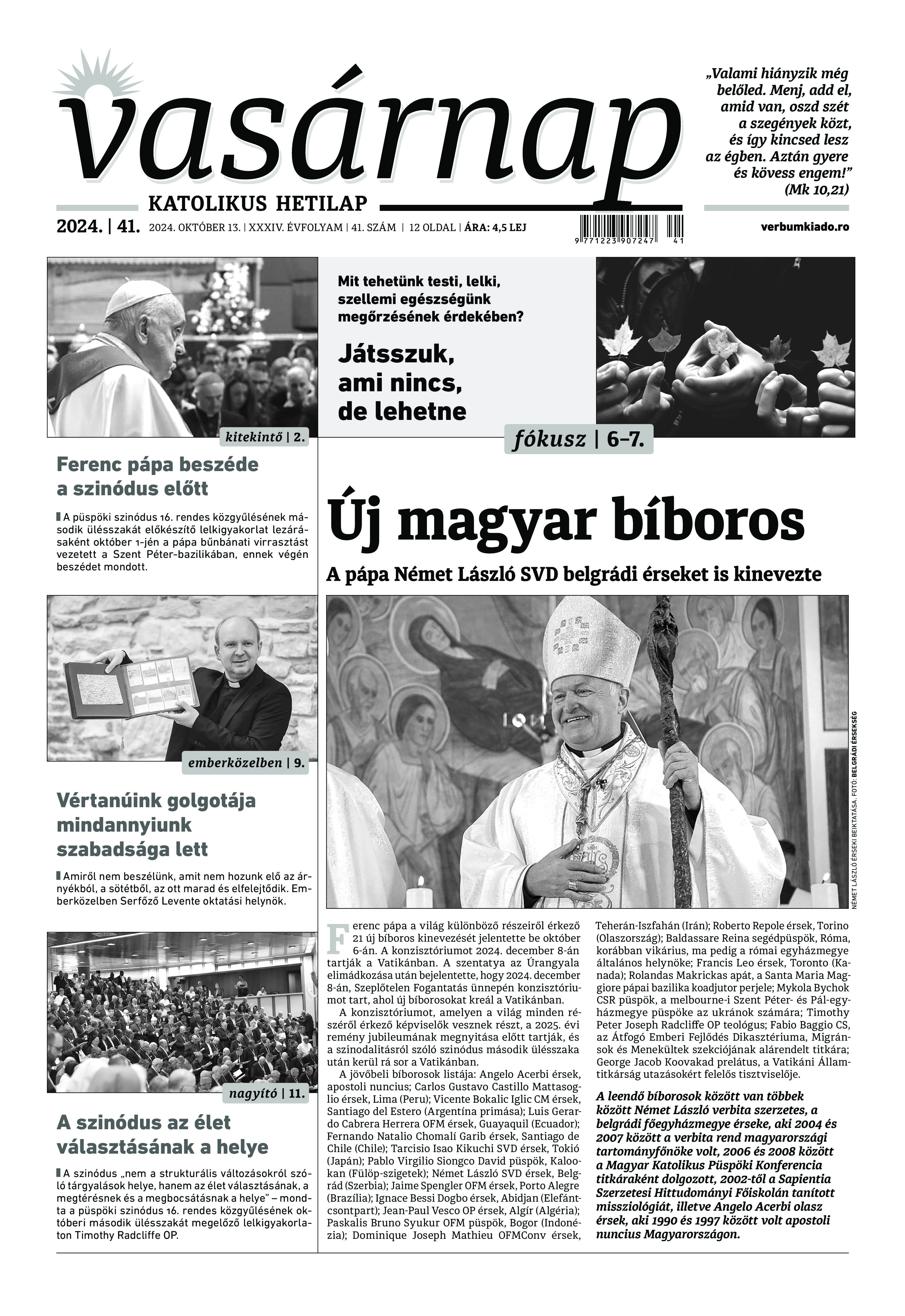 VASÁRNAP - 2024. október 13. A Vasárnap Katolikus Hetilap 2024.október 13. / XXXIV évf. / 41. számának digitális változata. 1 / 12 2 & 3 / 12 4 & 5 / 12 6 & 7 / 12 8 & 9 / 12 10 & 11 / 12 12 / 12