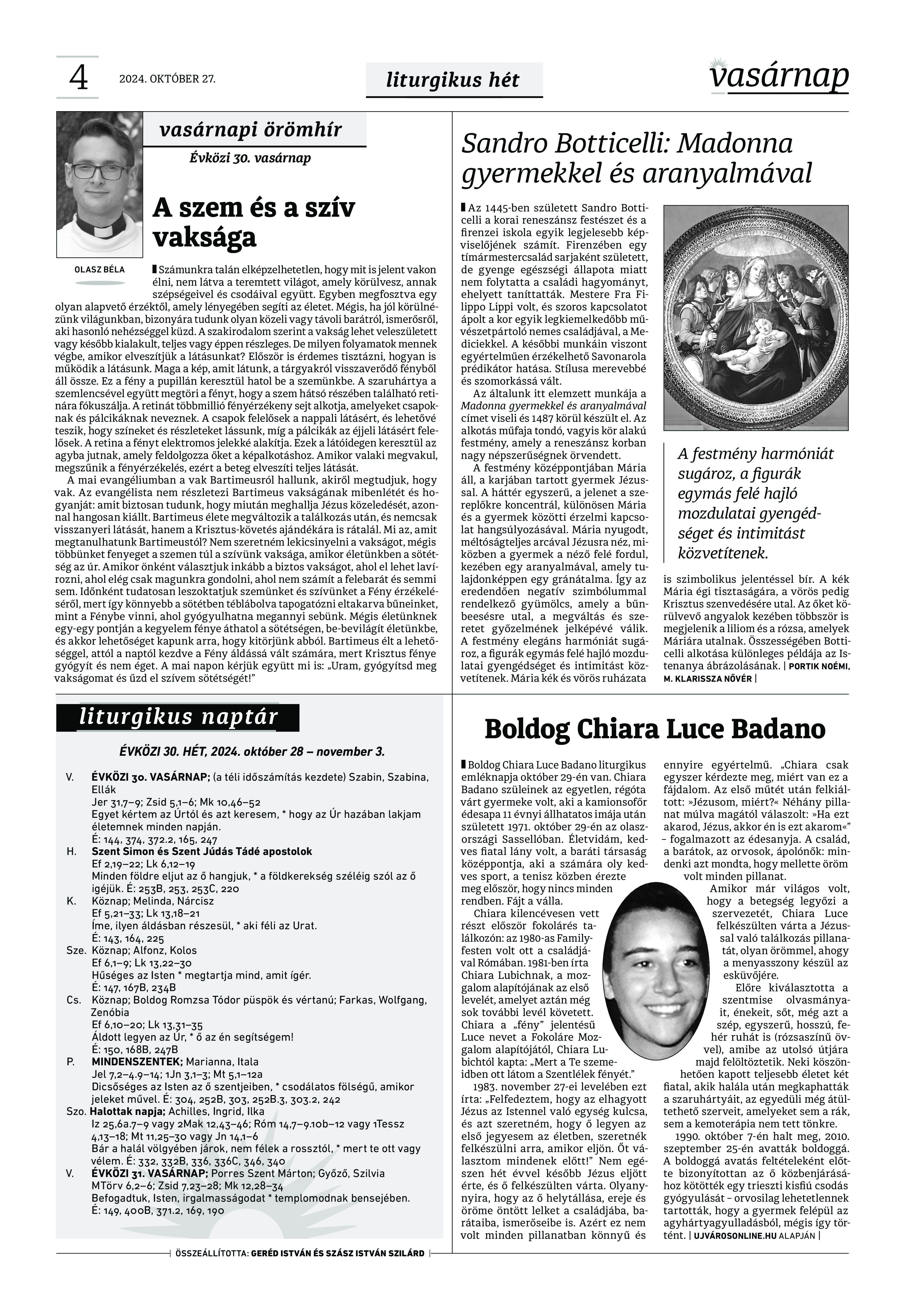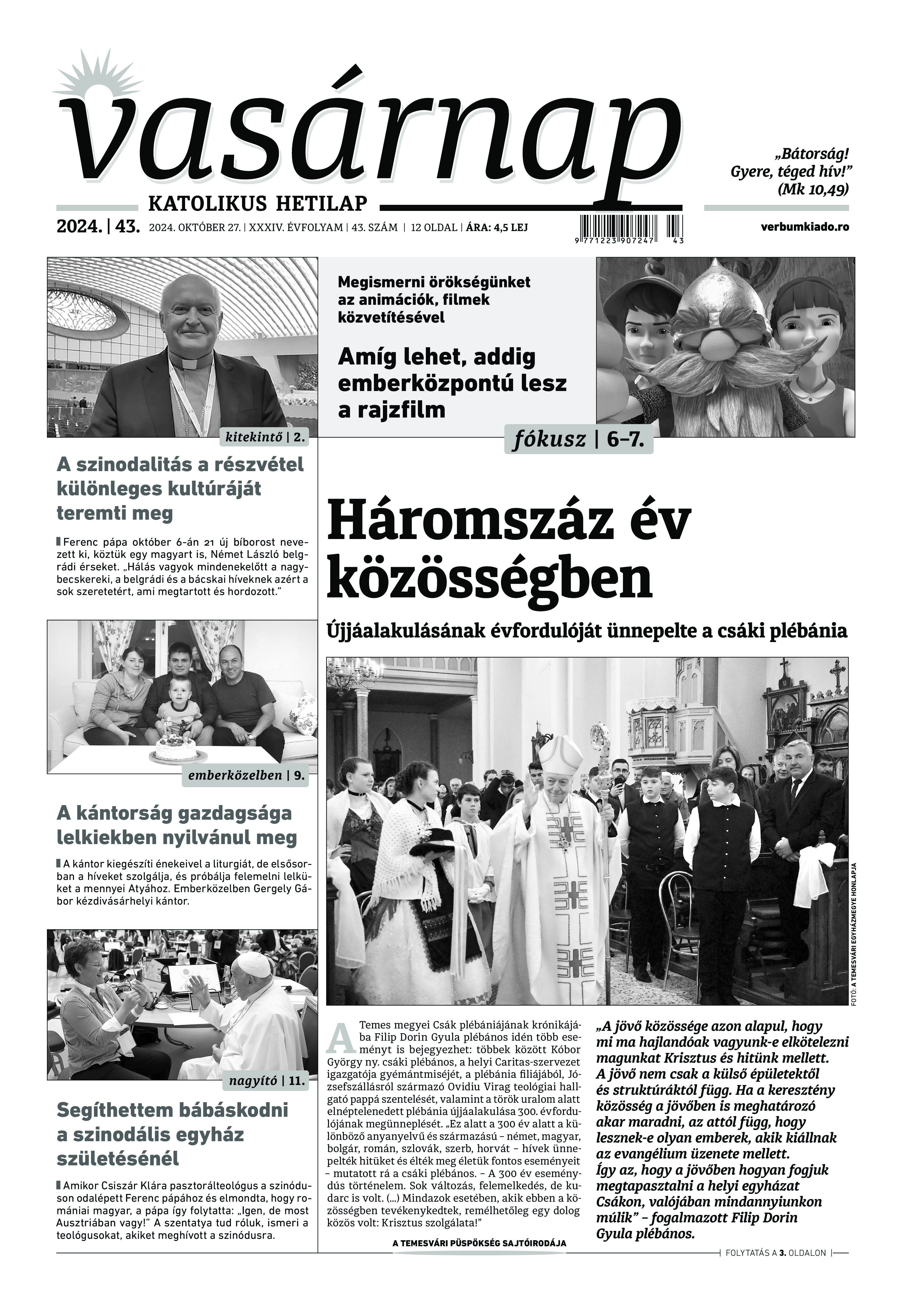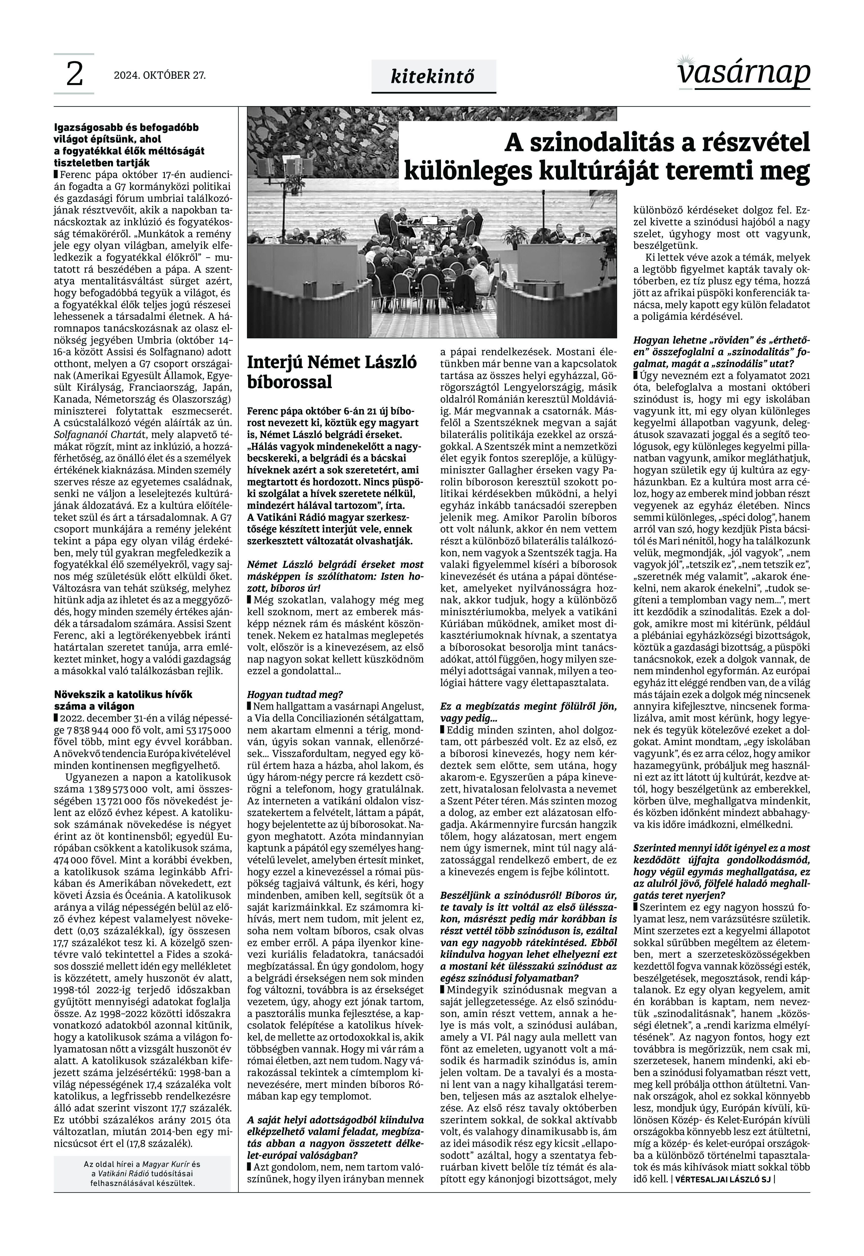 VASÁRNAP - 2024. október 27. A Vasárnap Katolikus Hetilap 2024.október 27. / XXXIV évf. / 43. számának digitális változata. 1 / 12 2 & 3 / 12 4 & 5 / 12 6 & 7 / 12 8 & 9 / 12 10 & 11 / 12 12 / 12