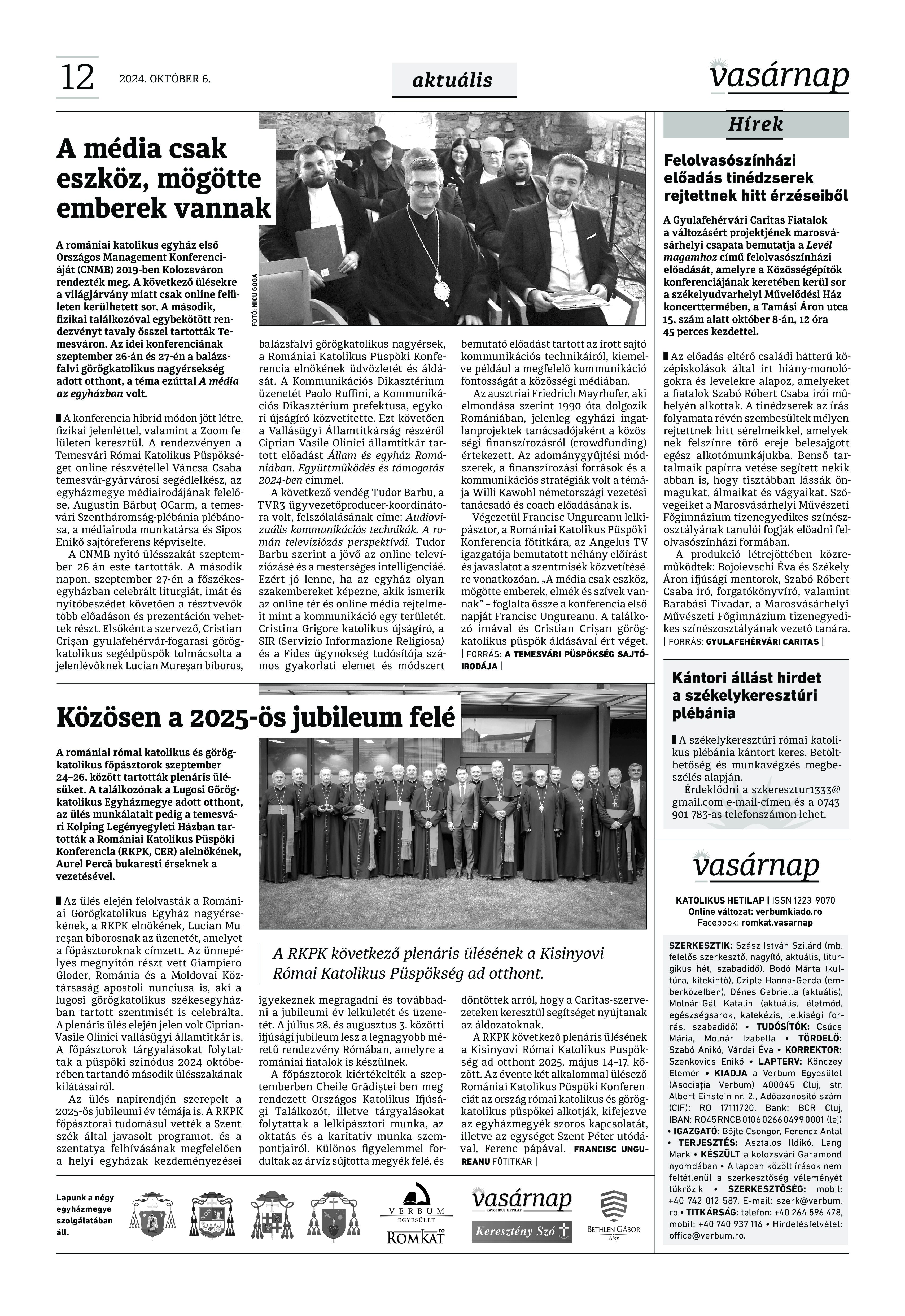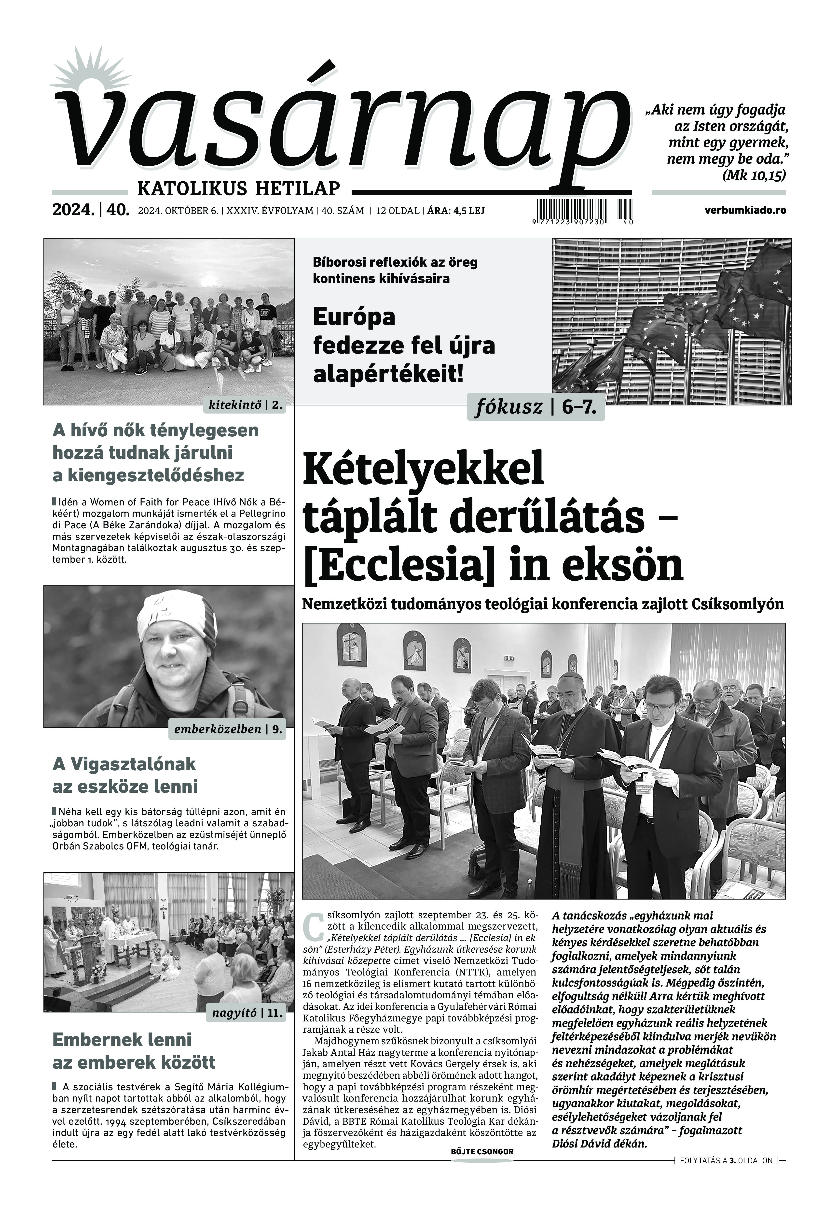 VASÁRNAP - 2024. október 6. A Vasárnap Katolikus Hetilap 2024.október 6. / XXXIV évf. / 40. számának digitális változata. 1 / 12 2 & 3 / 12 4 & 5 / 12 6 & 7 / 12 8 & 9 / 12 10 & 11 / 12 12 / 12