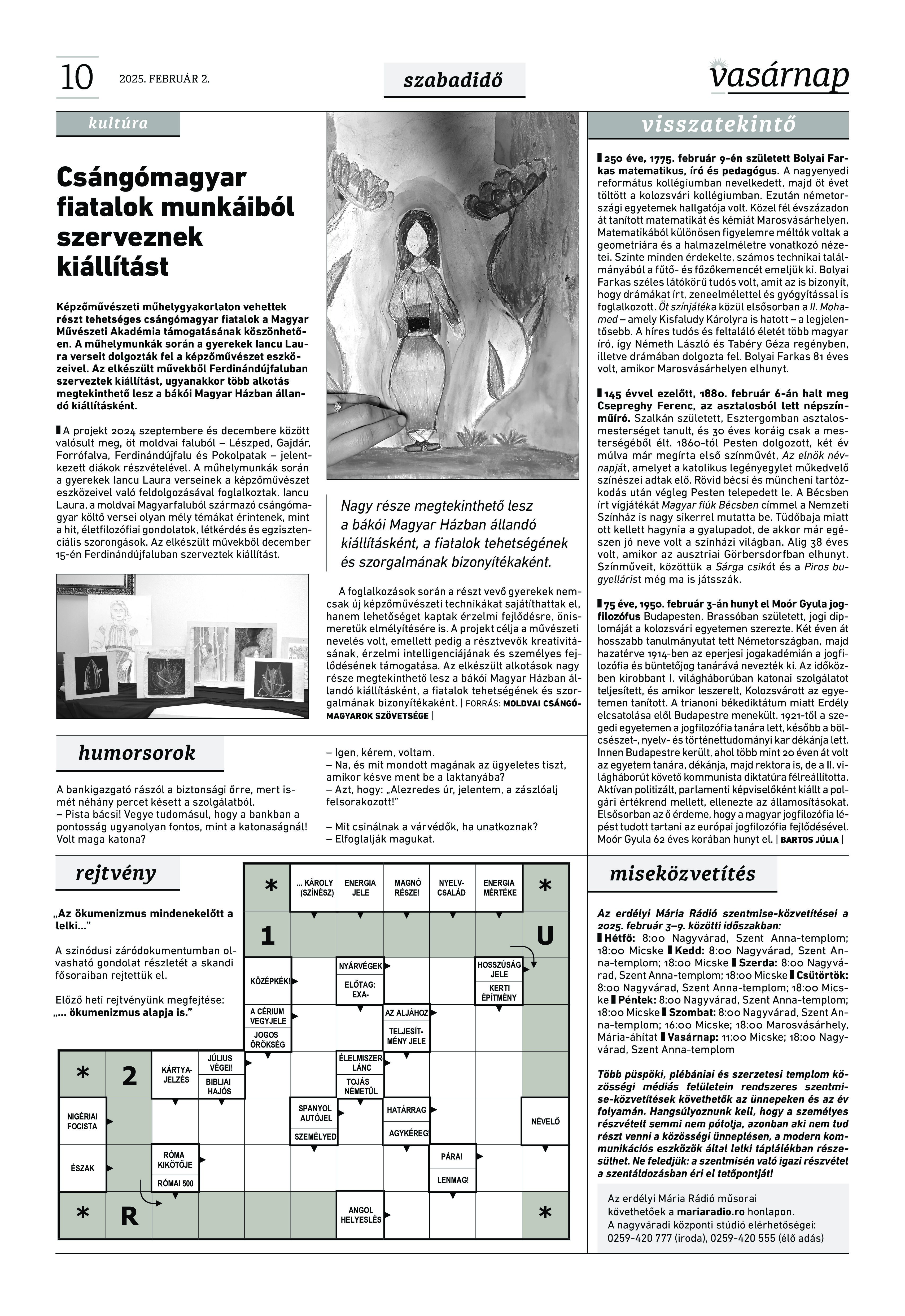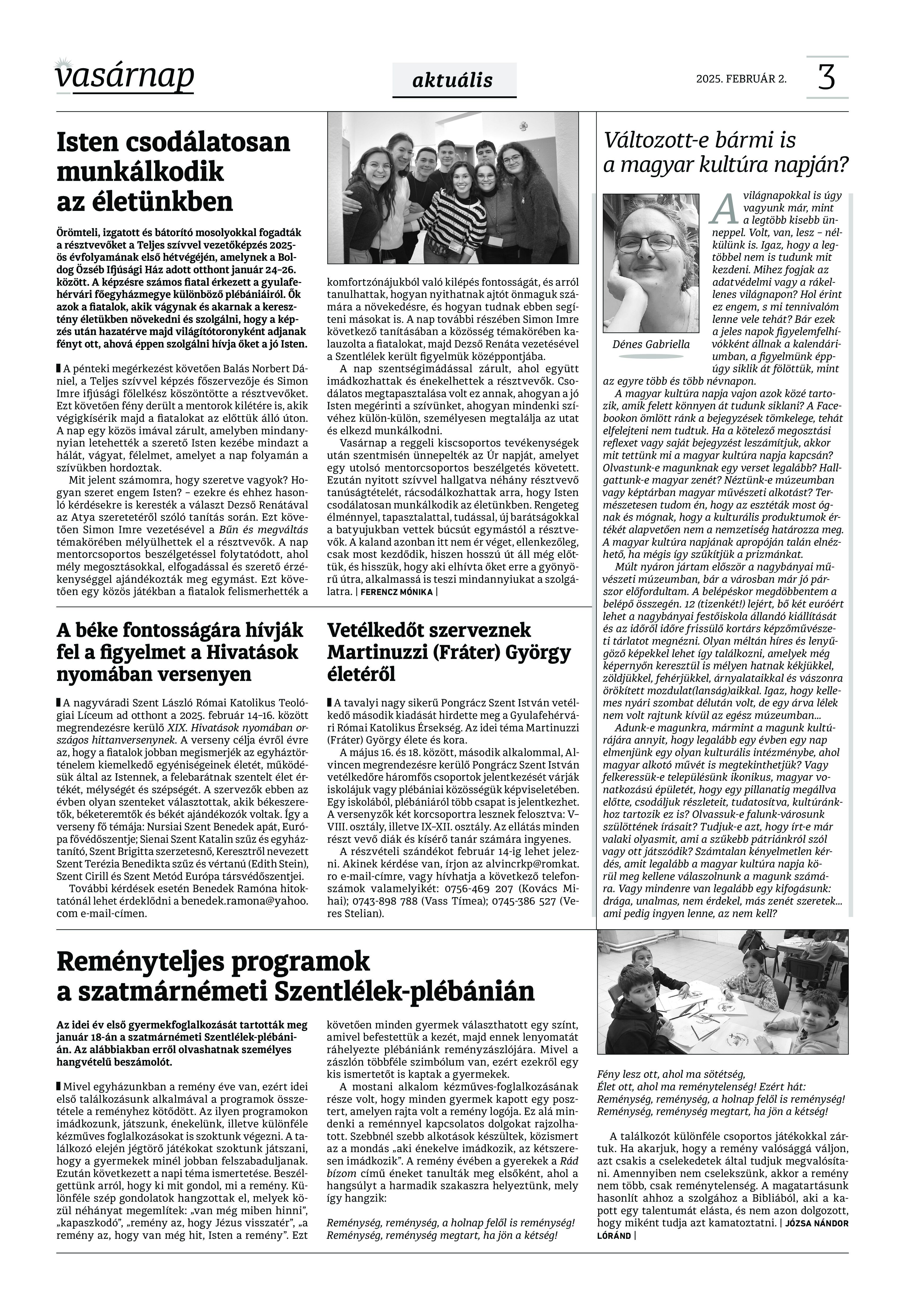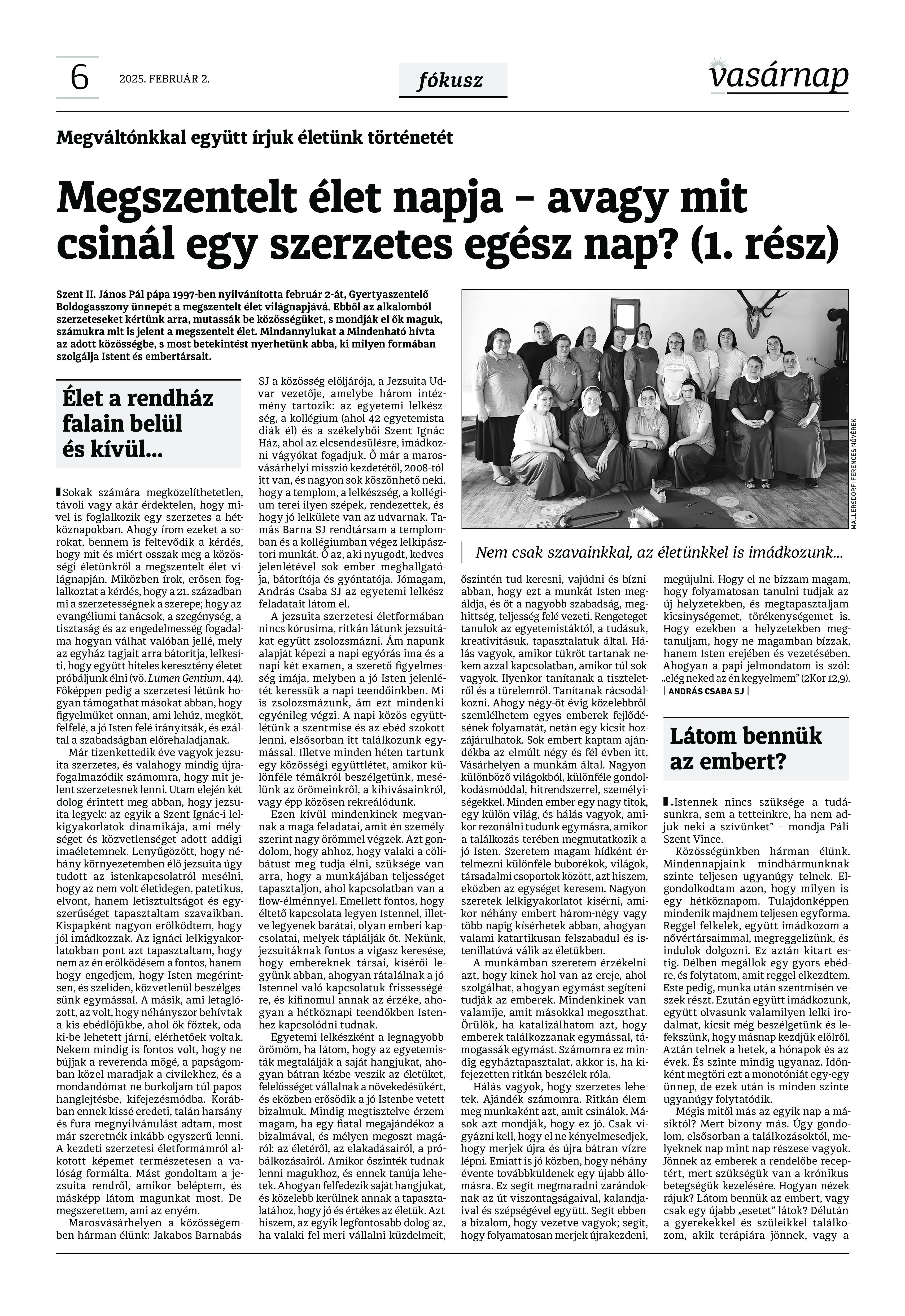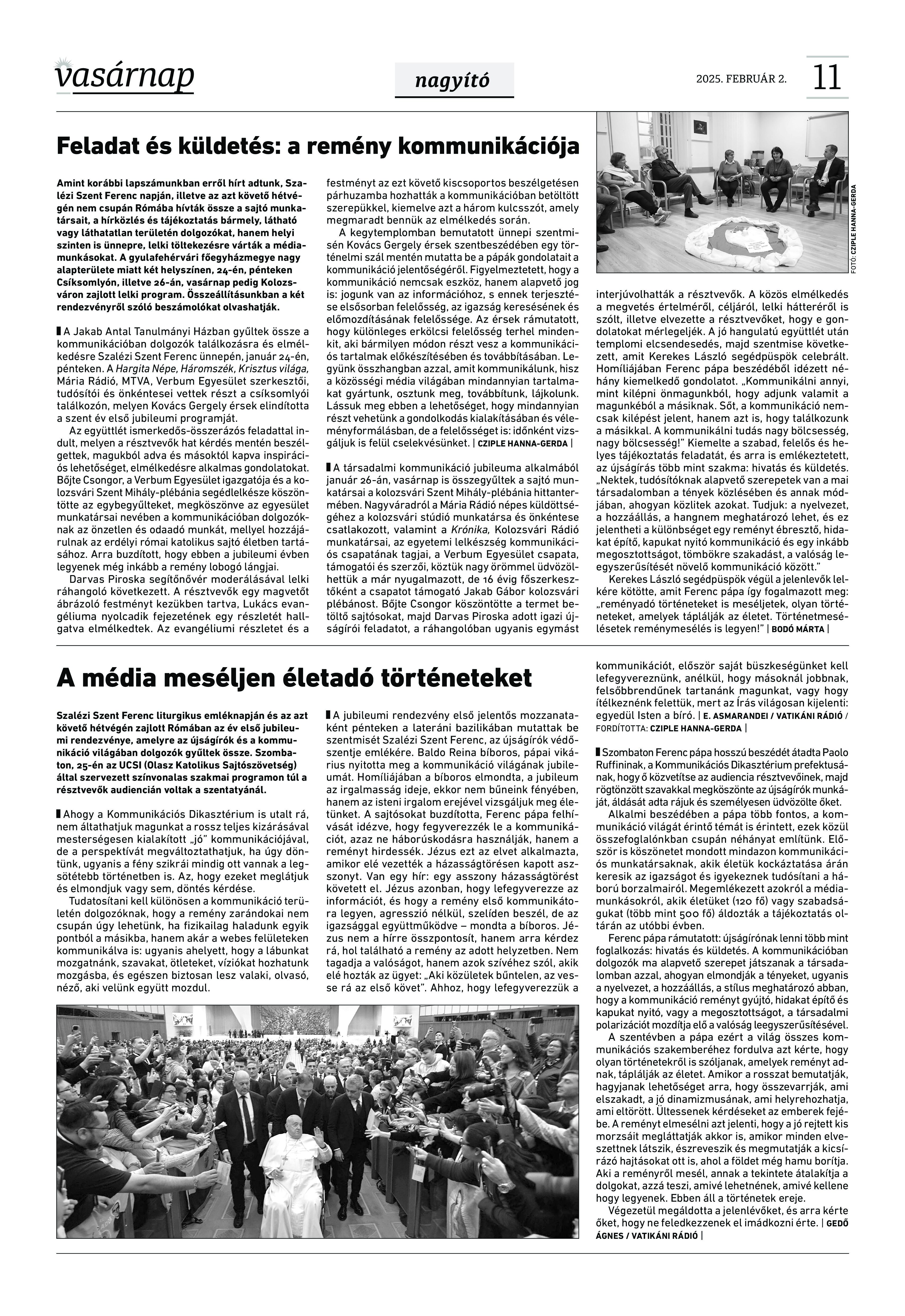 VASÁRNAP - 2025. február 2. A Vasárnap Katolikus Hetilap 2025. február 26. / XXXV évf. / 5. számának digitális változata. 1 / 12 2 & 3 / 12 4 & 5 / 12 6 & 7 / 12 8 & 9 / 12 10 & 11 / 12 12 / 12