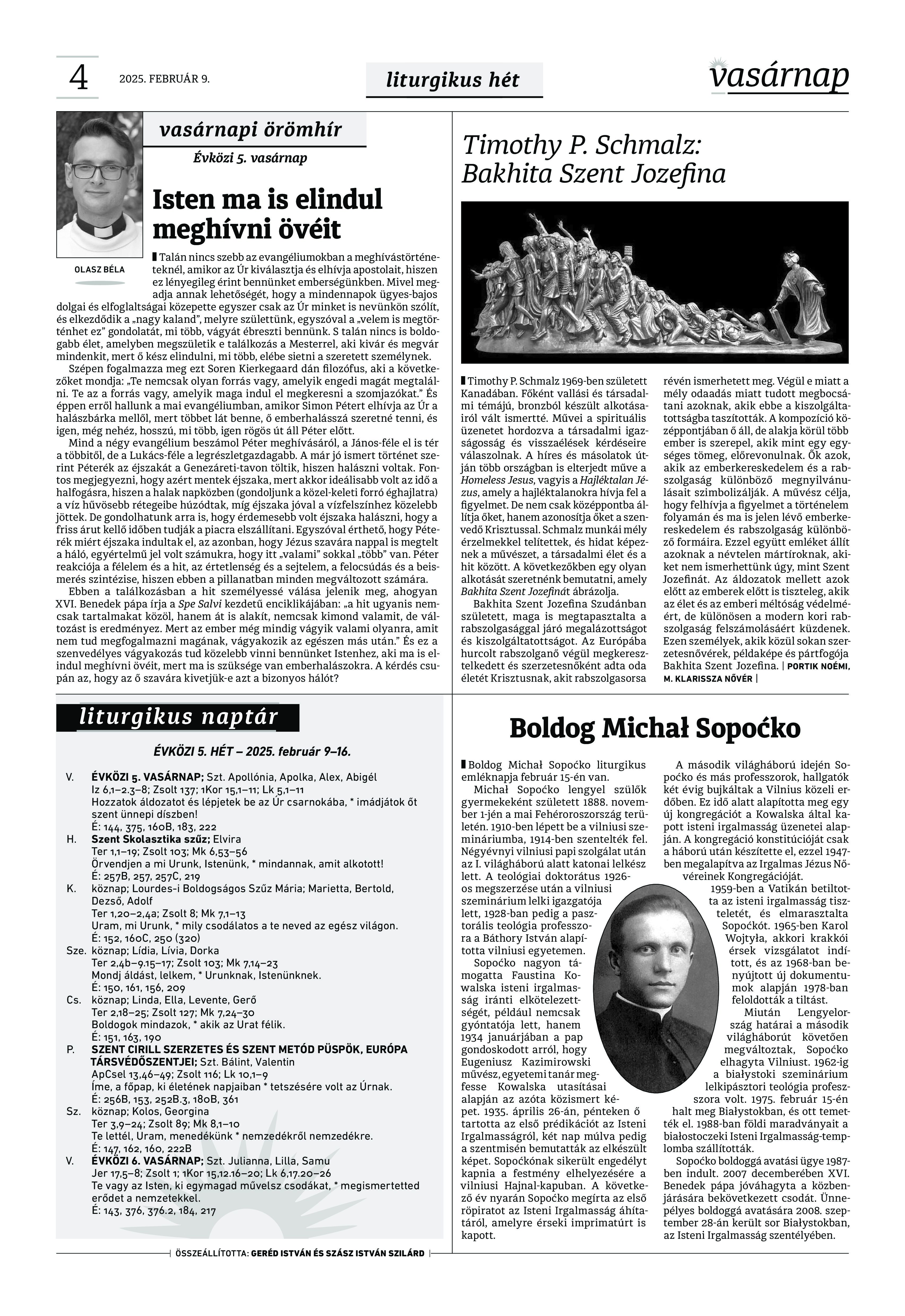 VASÁRNAP - 2025. február 9. A Vasárnap Katolikus Hetilap 2025. február 9. / XXXV évf. / 6. számának digitális változata. 1 / 12 2 & 3 / 12 4 & 5 / 12 6 & 7 / 12 8 & 9 / 12 10 & 11 / 12 12 / 12