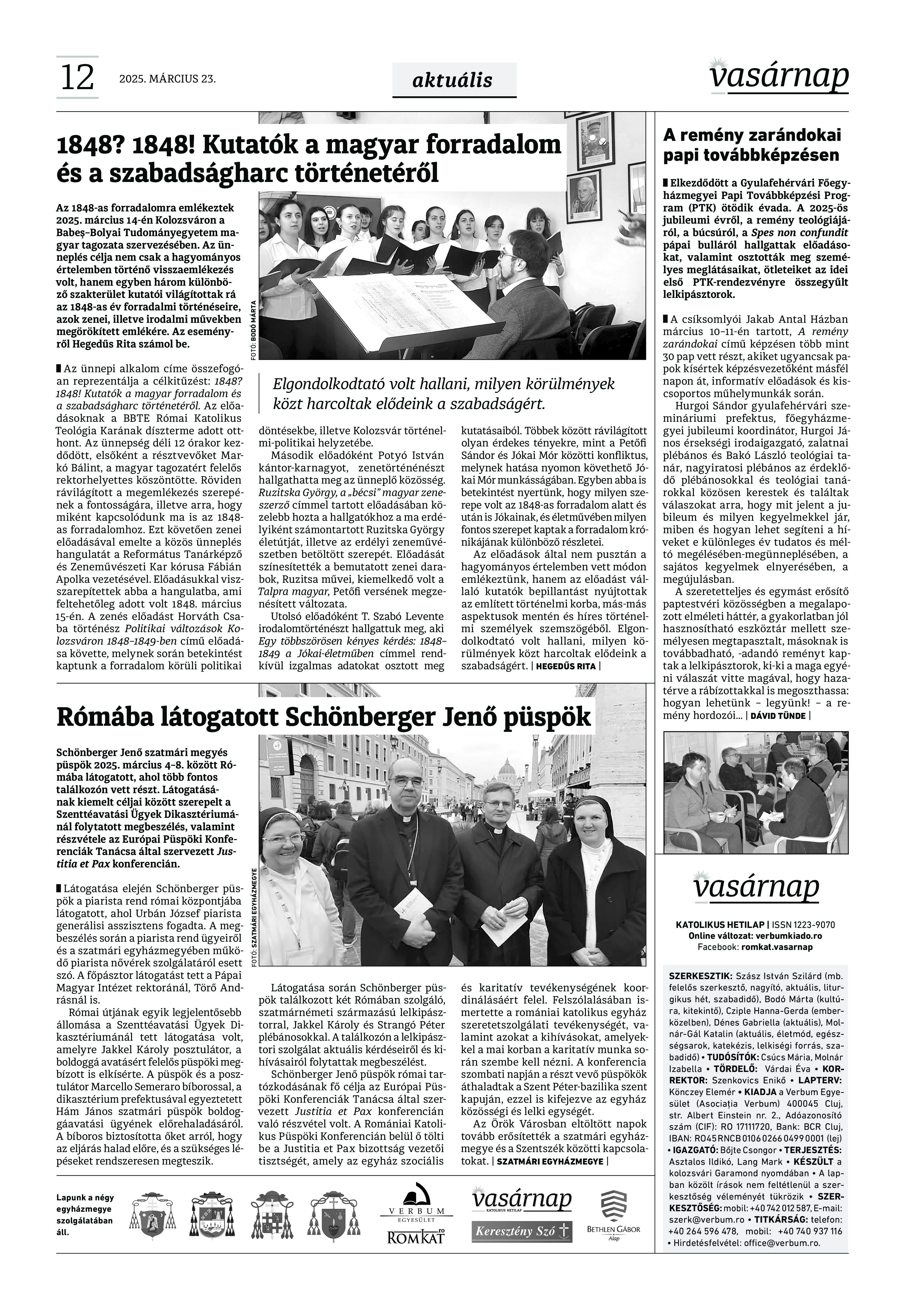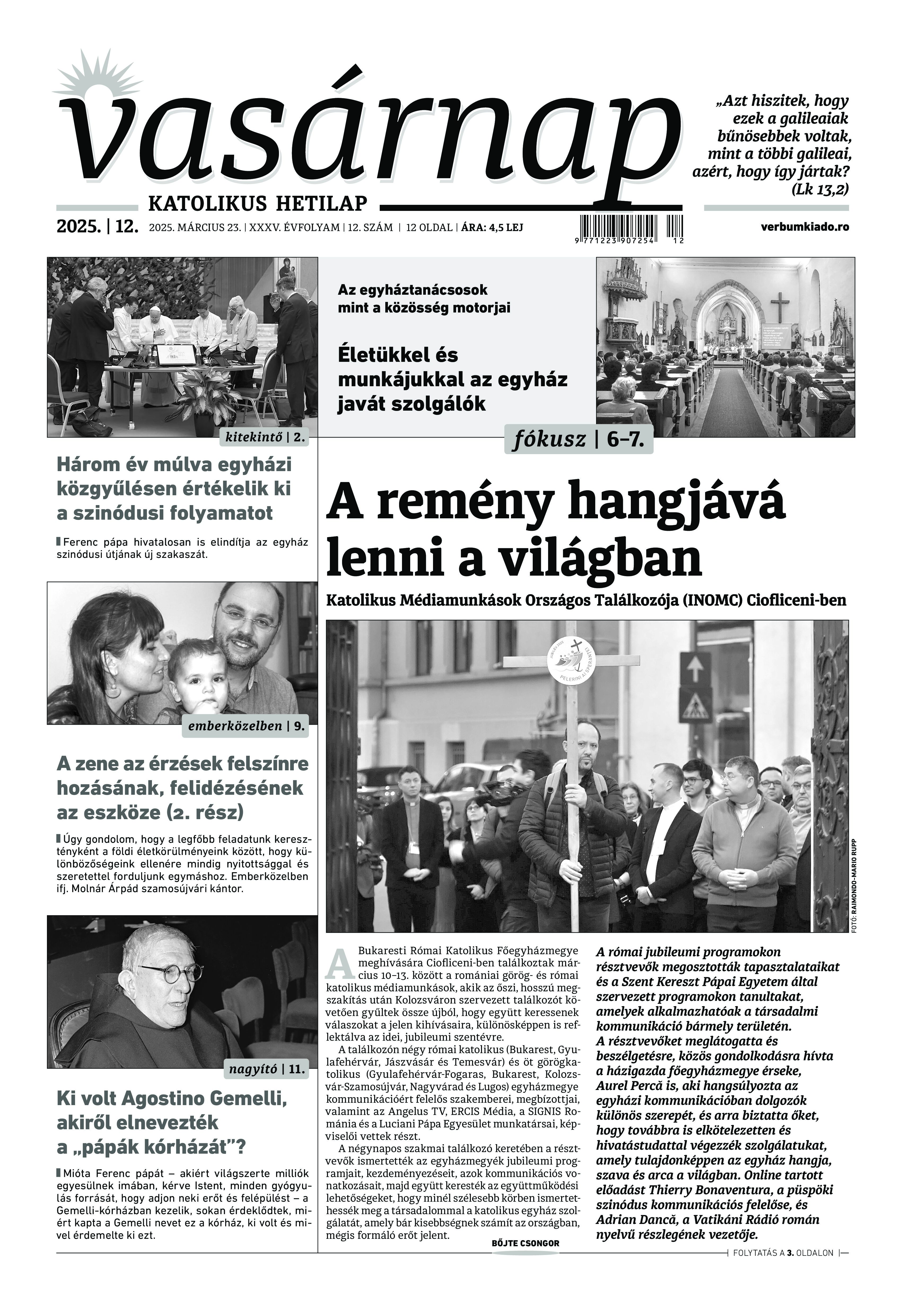 VASÁRNAP - 2025. március 23. A Vasárnap Katolikus Hetilap 2025. március 23. / XXXV évf. / 12. számának digitális változata. 1 / 12 2 & 3 / 12 4 & 5 / 12 6 & 7 / 12 8 & 9 / 12 10 & 11 / 12 12 / 12