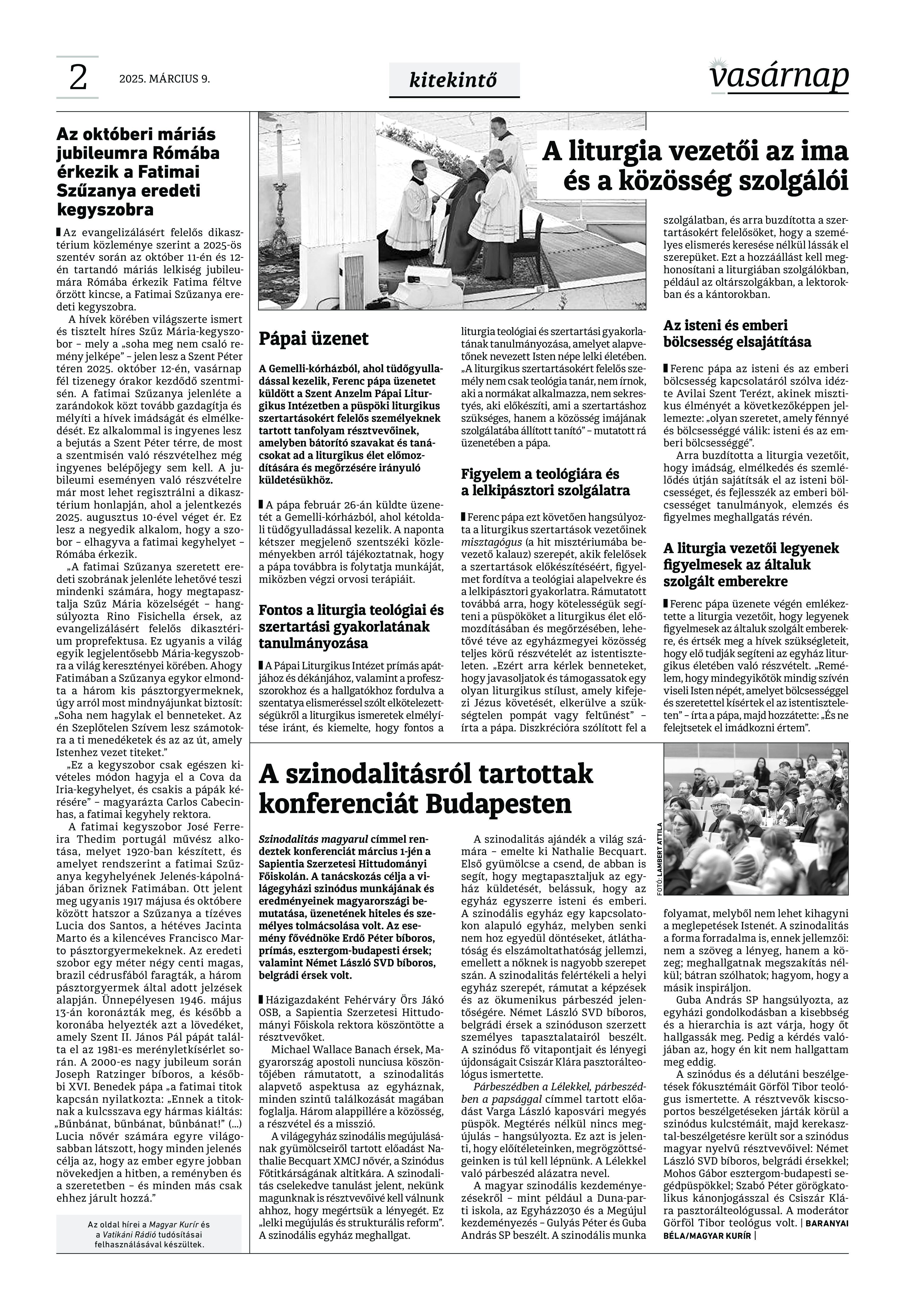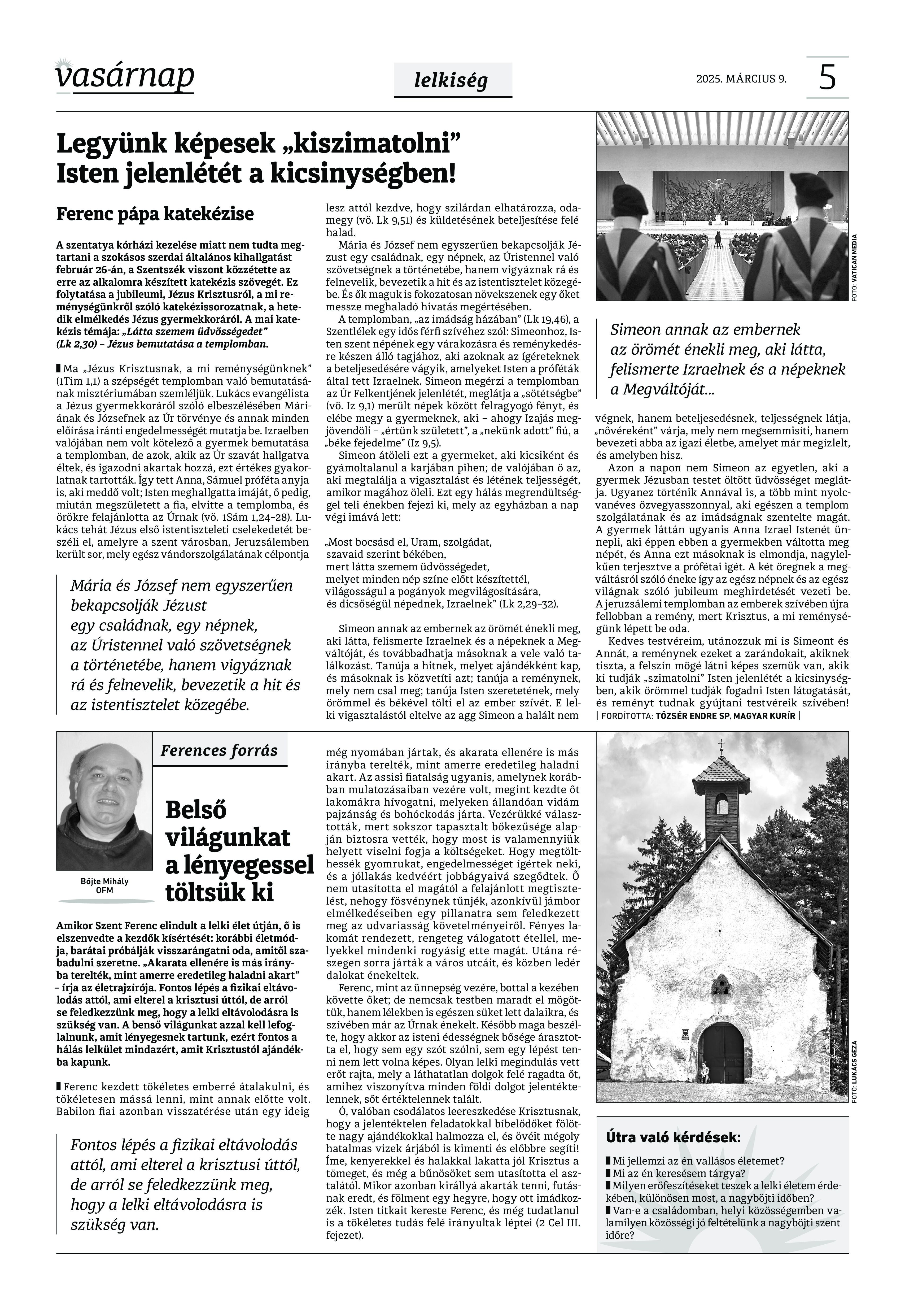 VASÁRNAP - 2025. március 9. A Vasárnap Katolikus Hetilap 2025. március 9. / XXXV évf. / 10. számának digitális változata. 1 / 12 2 & 3 / 12 4 & 5 / 12 6 & 7 / 12 8 & 9 / 12 10 & 11 / 12 12 / 12