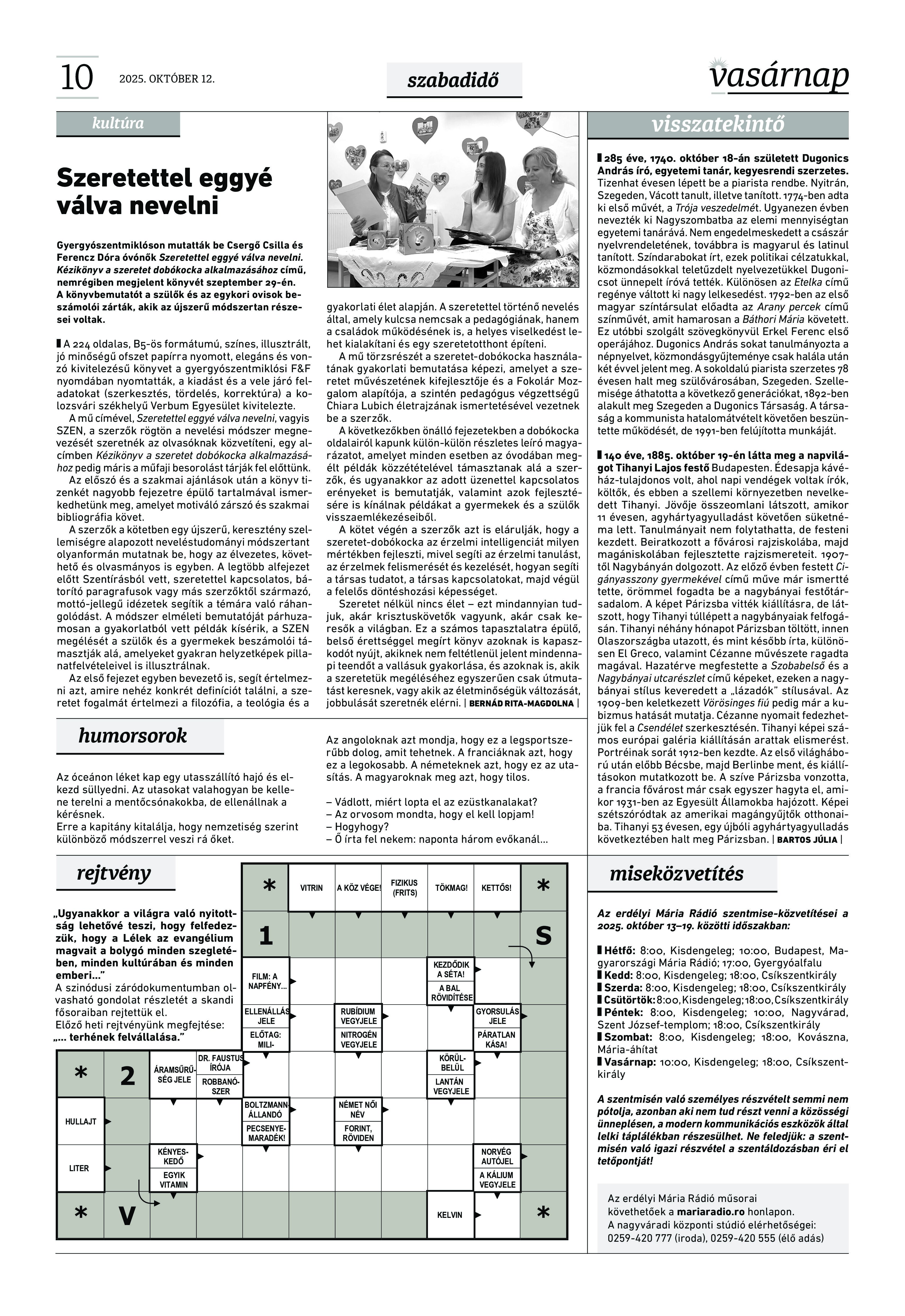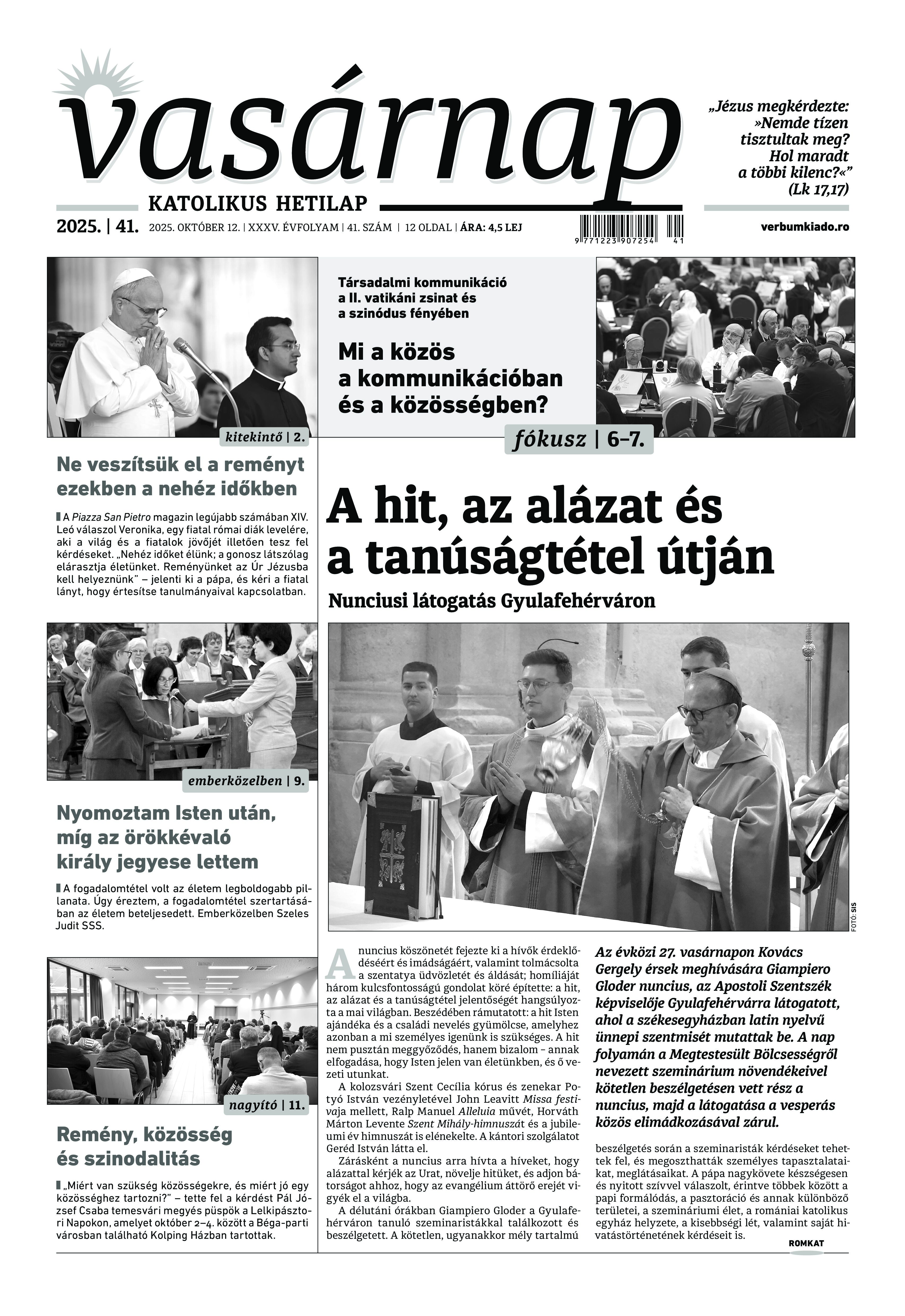 VASÁRNAP - 2025. október 12. A Vasárnap Katolikus Hetilap 2025. október 12.. / XXXV évf. / 41. számának digitális változata. 1 / 12 2 & 3 / 12 4 & 5 / 12 6 & 7 / 12 8 & 9 / 12 10 & 11 / 12 12 / 12