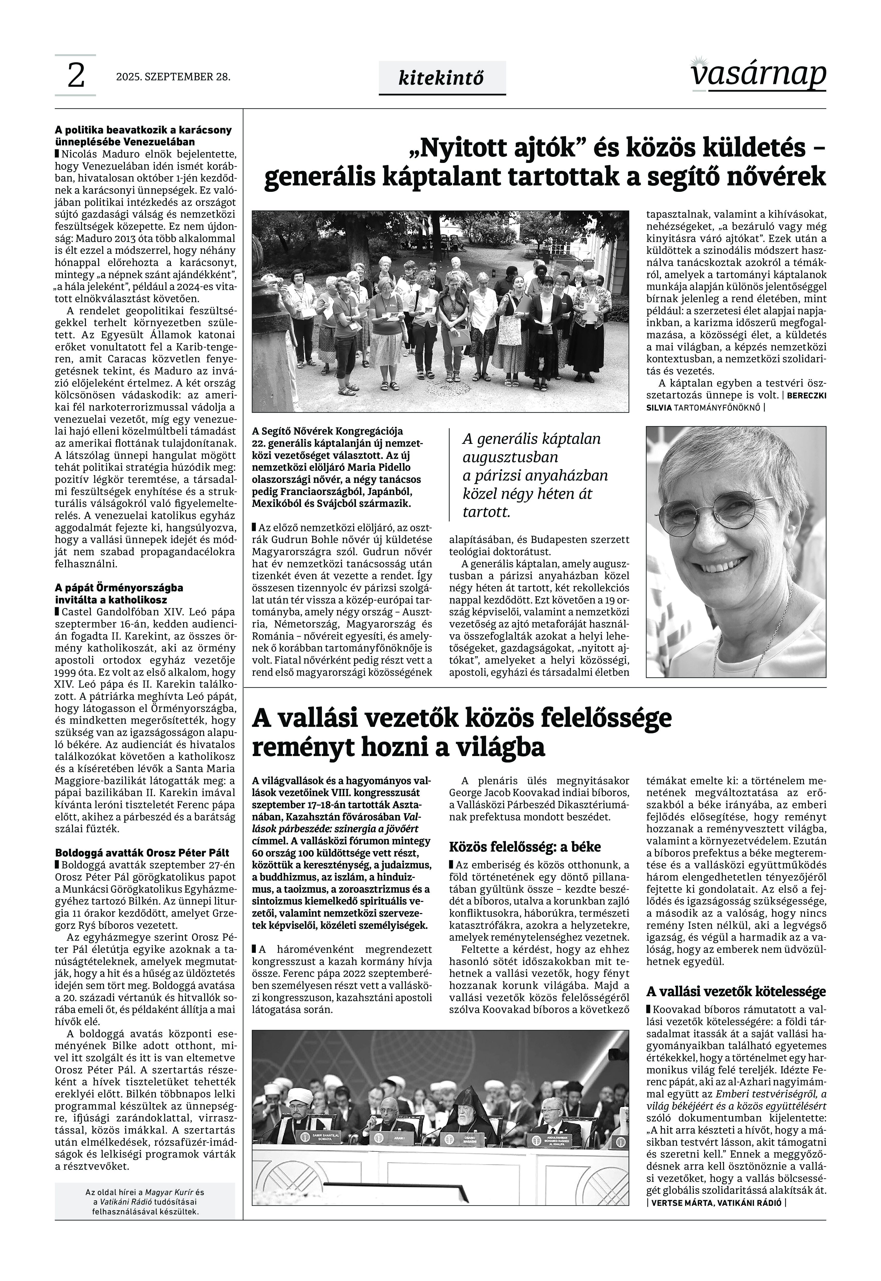 VASÁRNAP - 2025. szeptember 28. A Vasárnap Katolikus Hetilap 2025. szeptember 28. / XXXV évf. / 39. számának digitális változata. 1 / 12 2 & 3 / 12 4 & 5 / 12 6 & 7 / 12 8 & 9 / 12 10 & 11 / 12 12 / 12