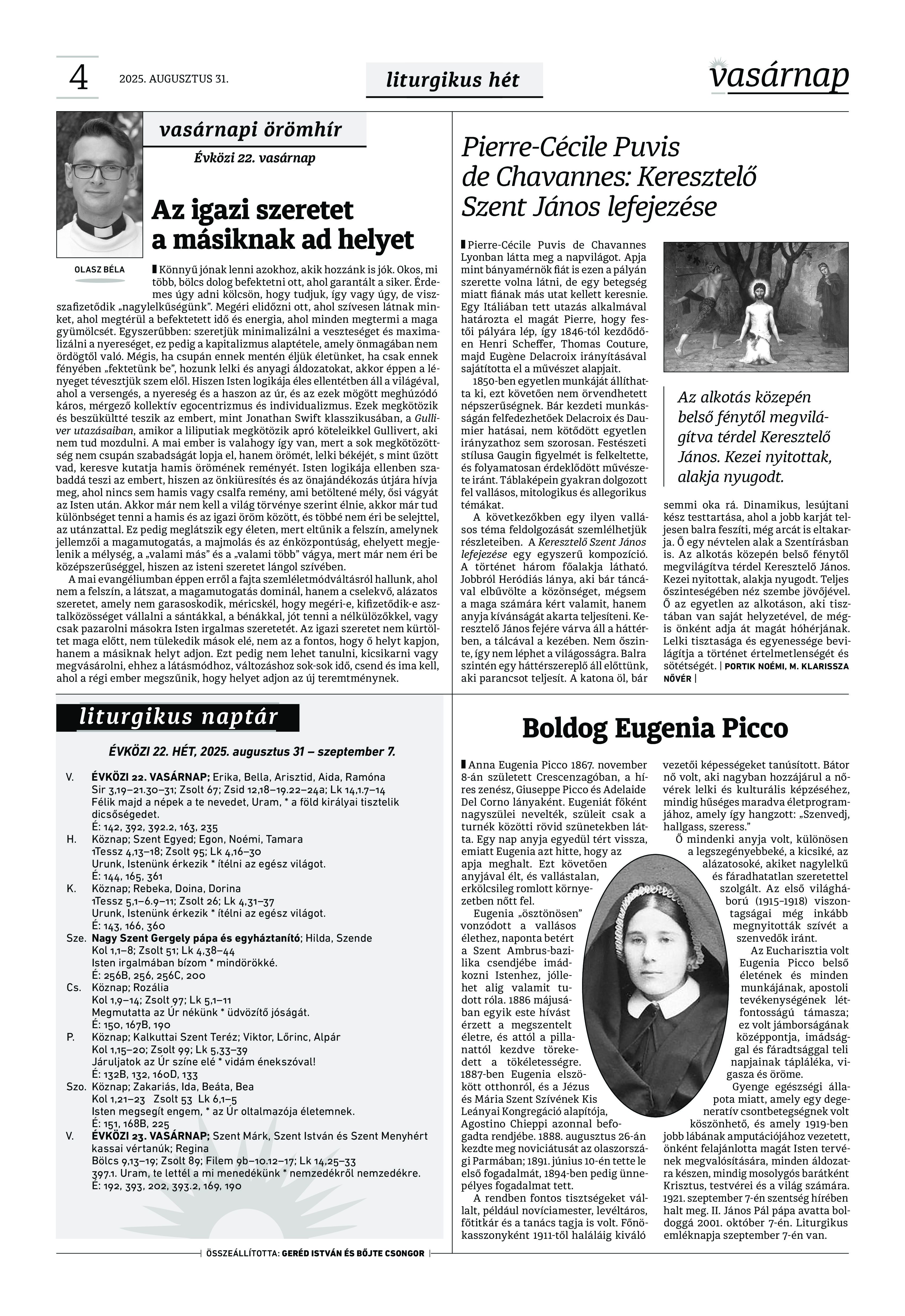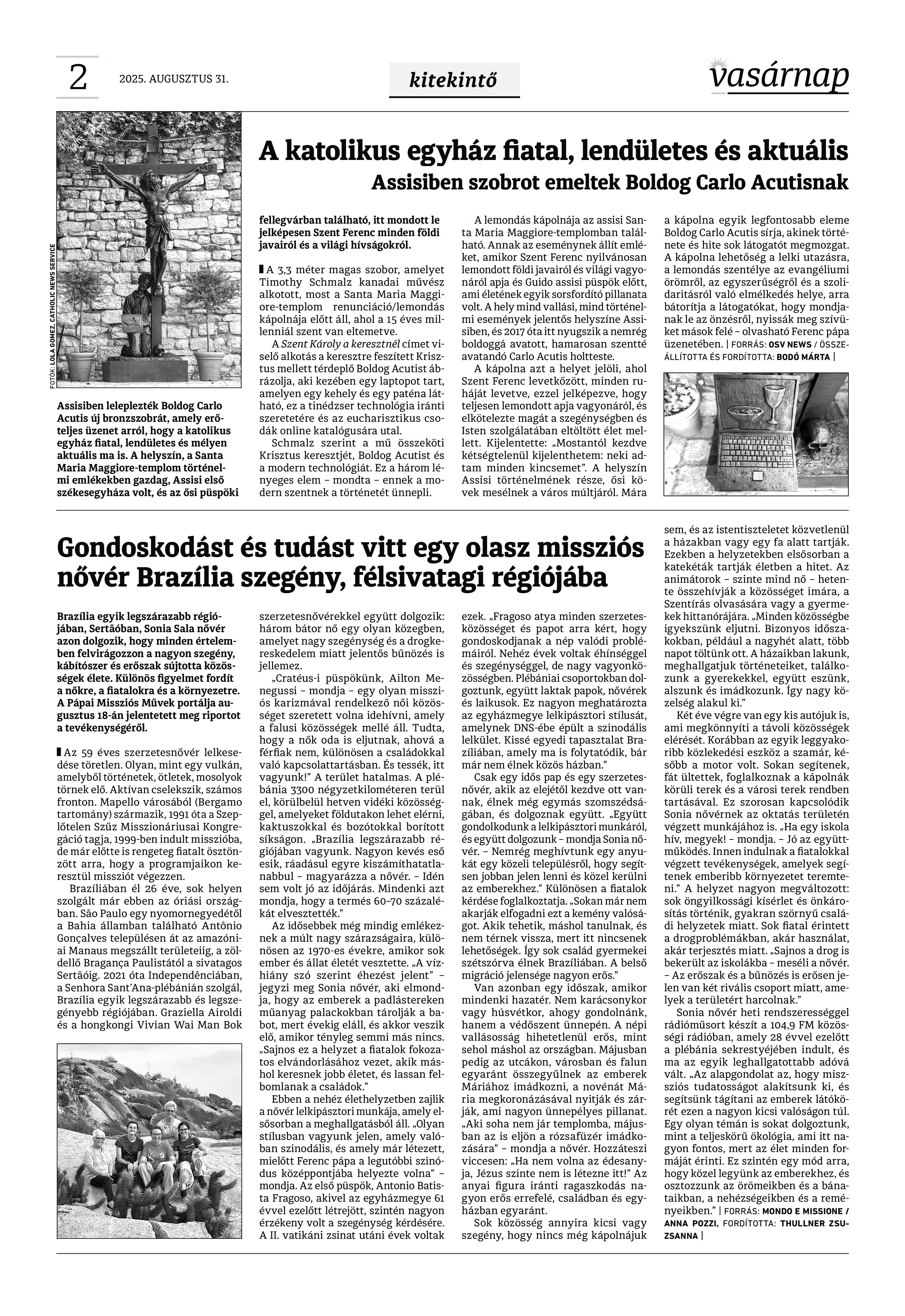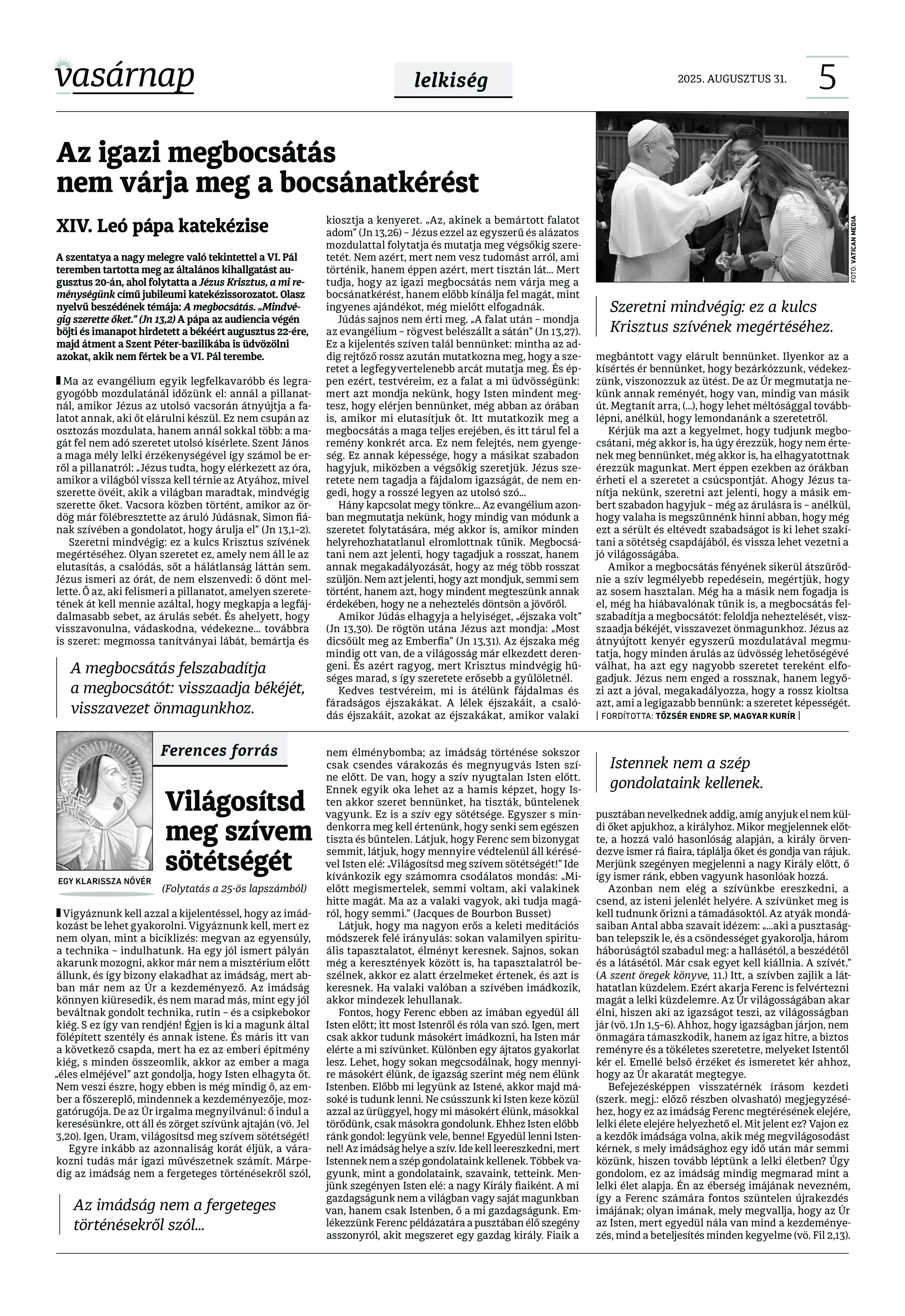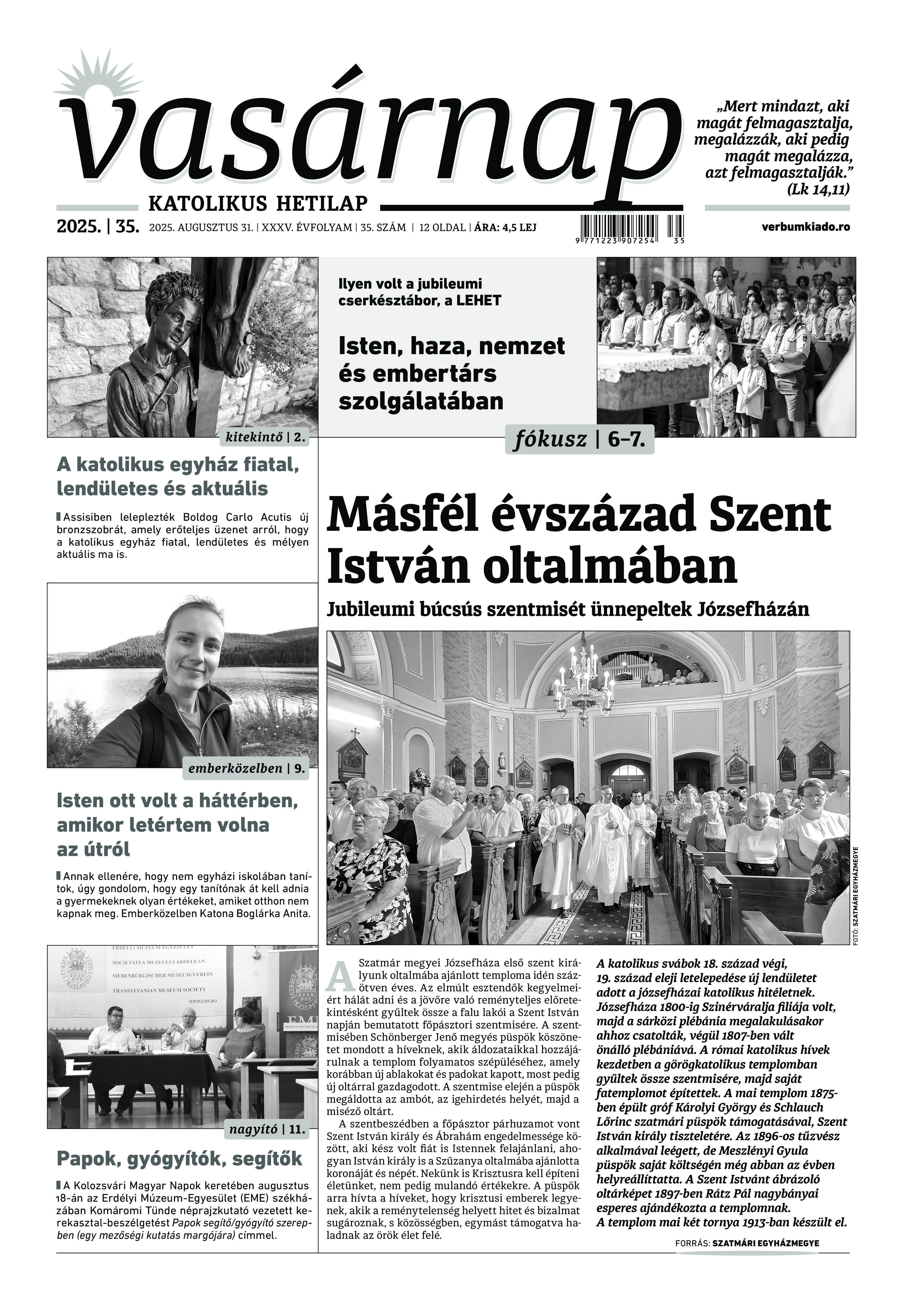 A Vasárnap Katolikus Hetilap 2025. augusztus 31. / XXXV évf. / 35. számának digitális változata.